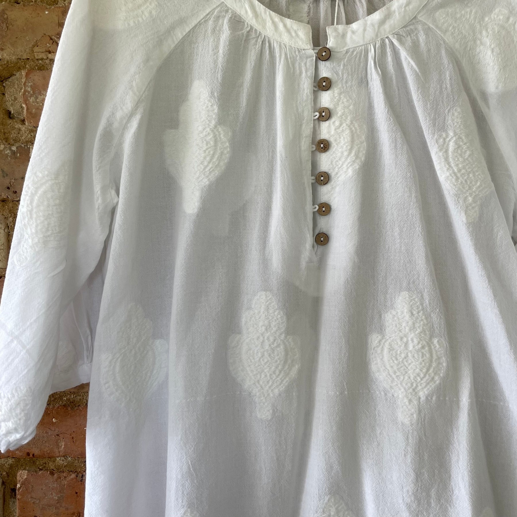 ❥ Mål på størrelse: S/M - Mål over bryst: 60 cm - Mål i bund: 63 cm - Længde front: 67 cm - Længde Bag: 69 cm - Ærme udvendig: 54 cm - Ærme indvendig: 28 cm