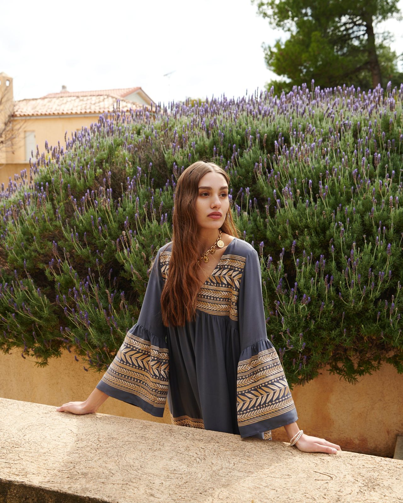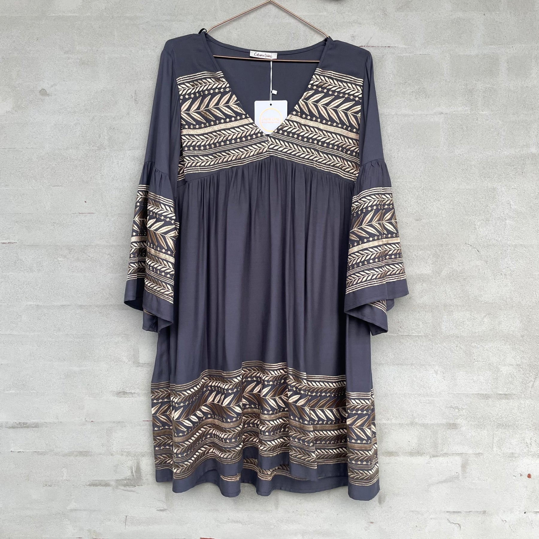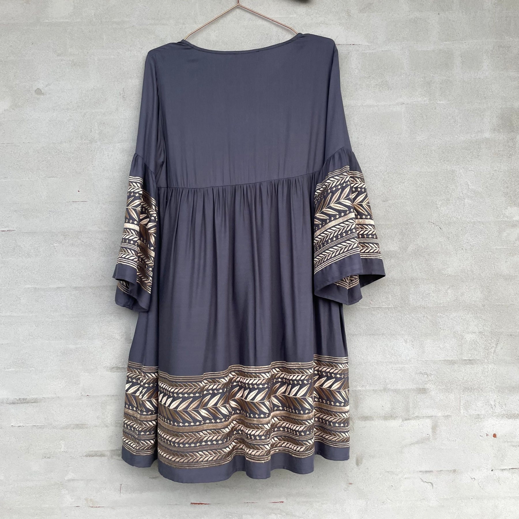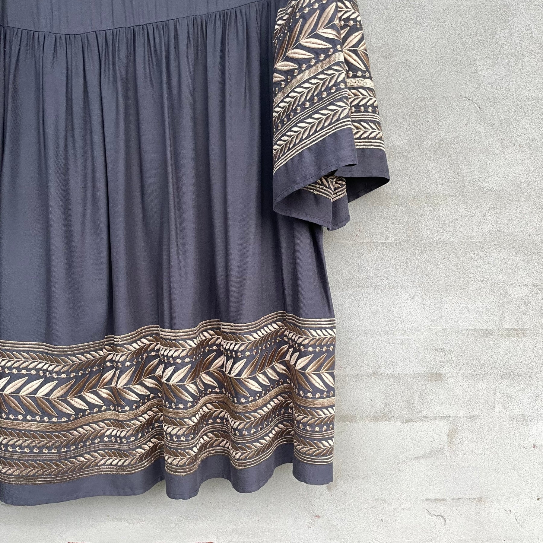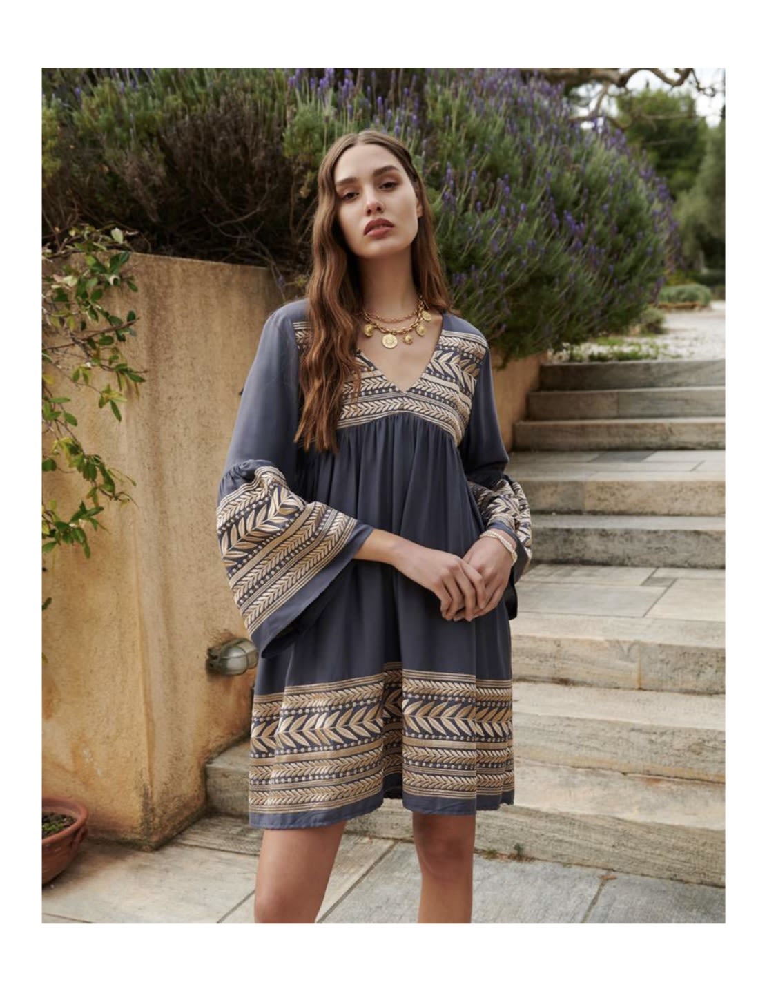 Short dress with embroidery effect in fabric.