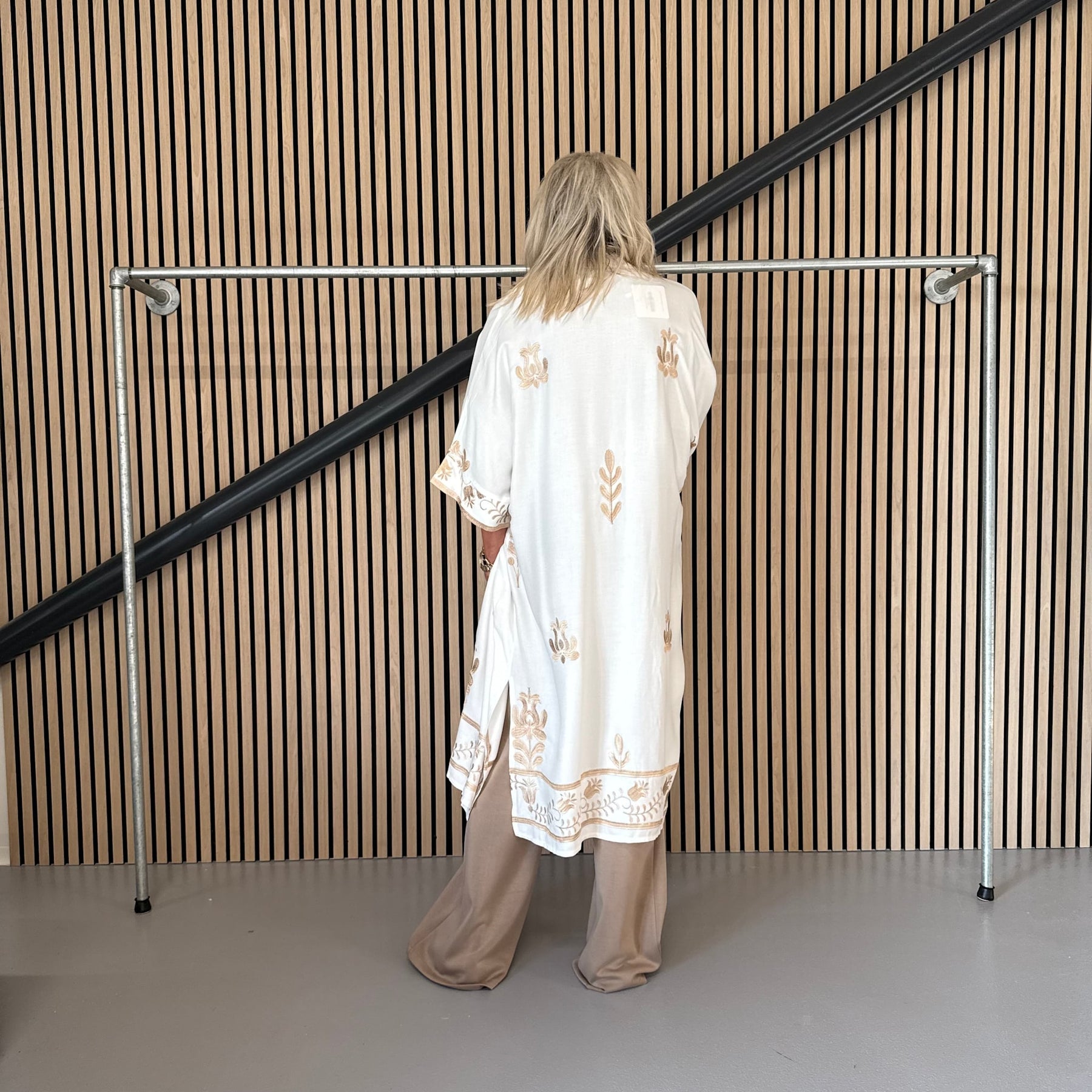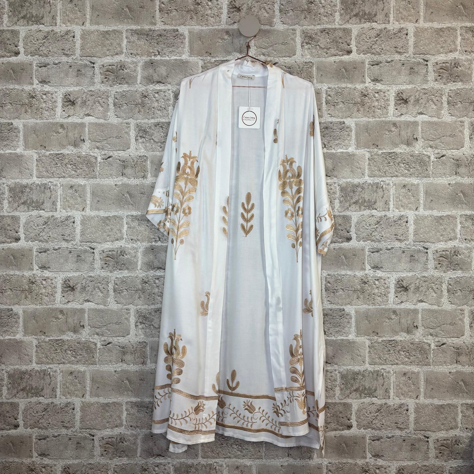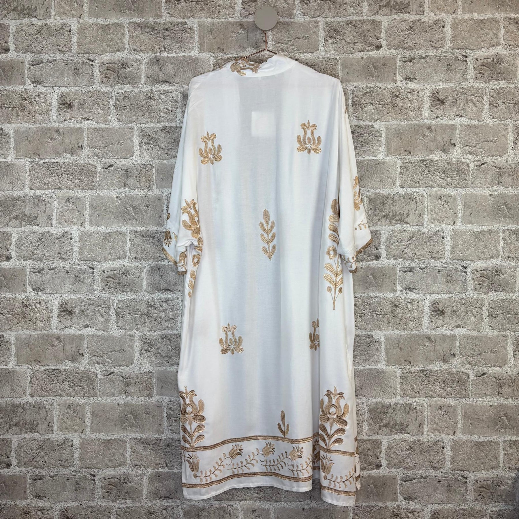 ❥ Mål på størrelse: Onesize - Mål over bryst: 72 cm - Mål i bund: 110 cm - Længde front: 120 cm - Længde Bag: 125 cm - Ærme udvendig: 55 cm - Ærme indvendig: 7 cm