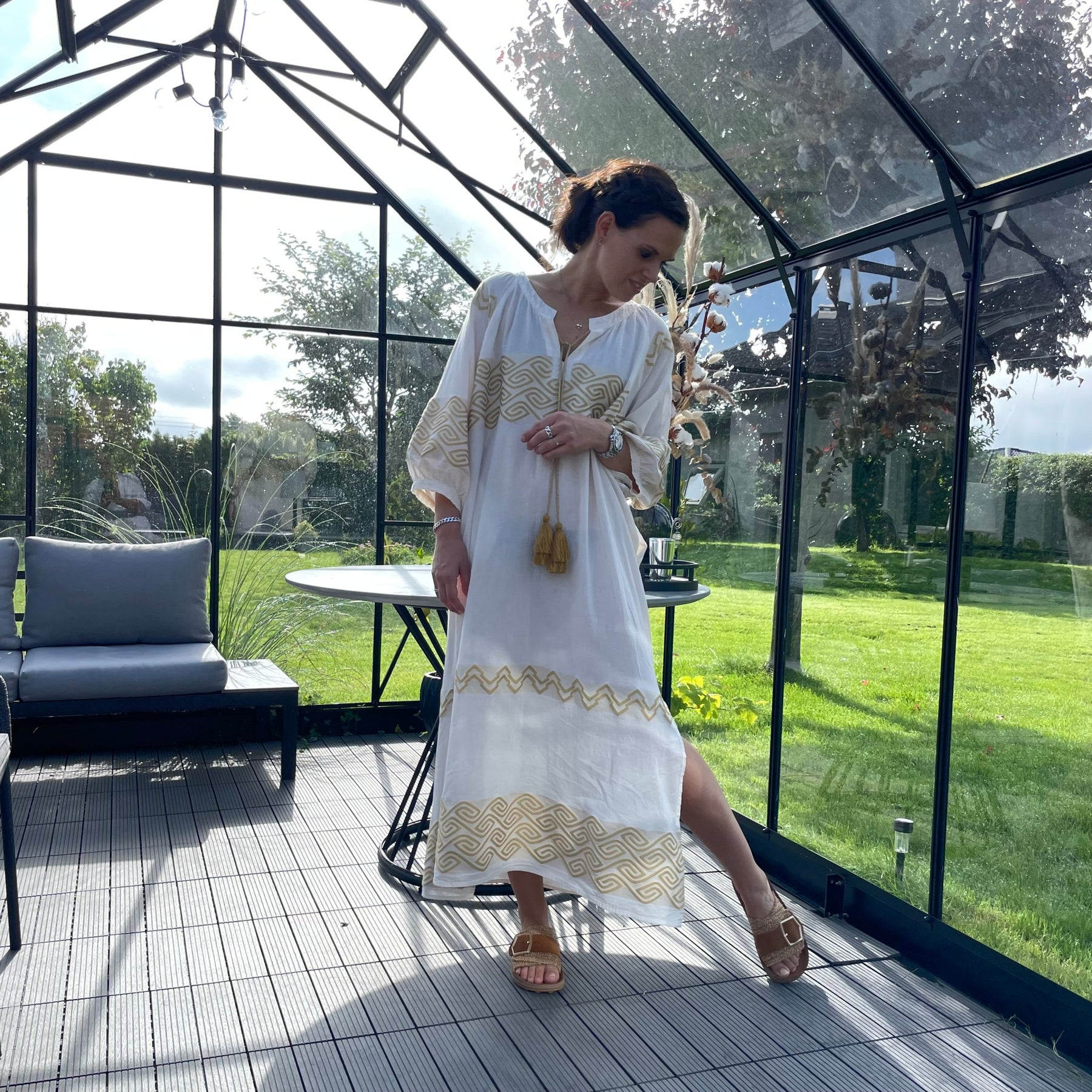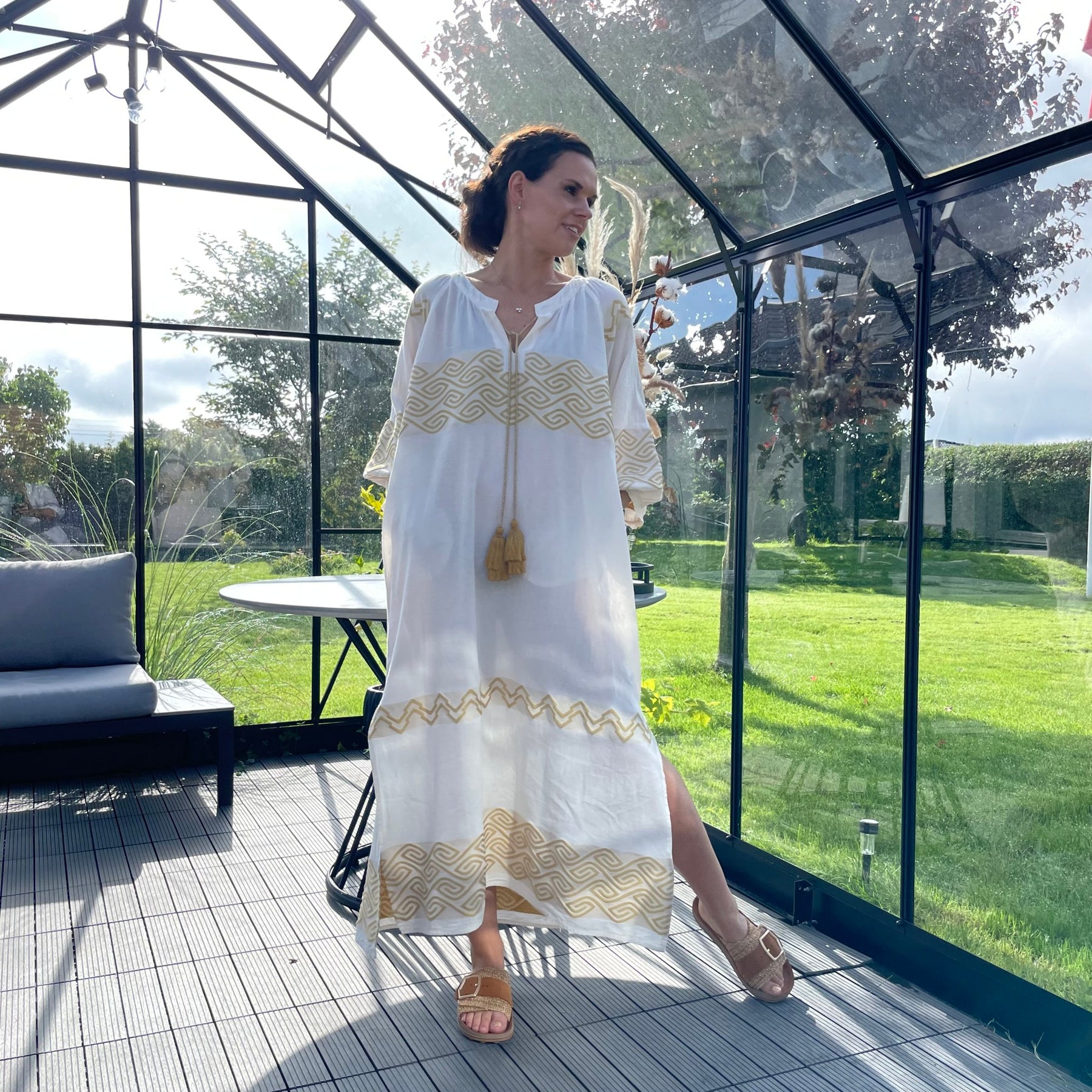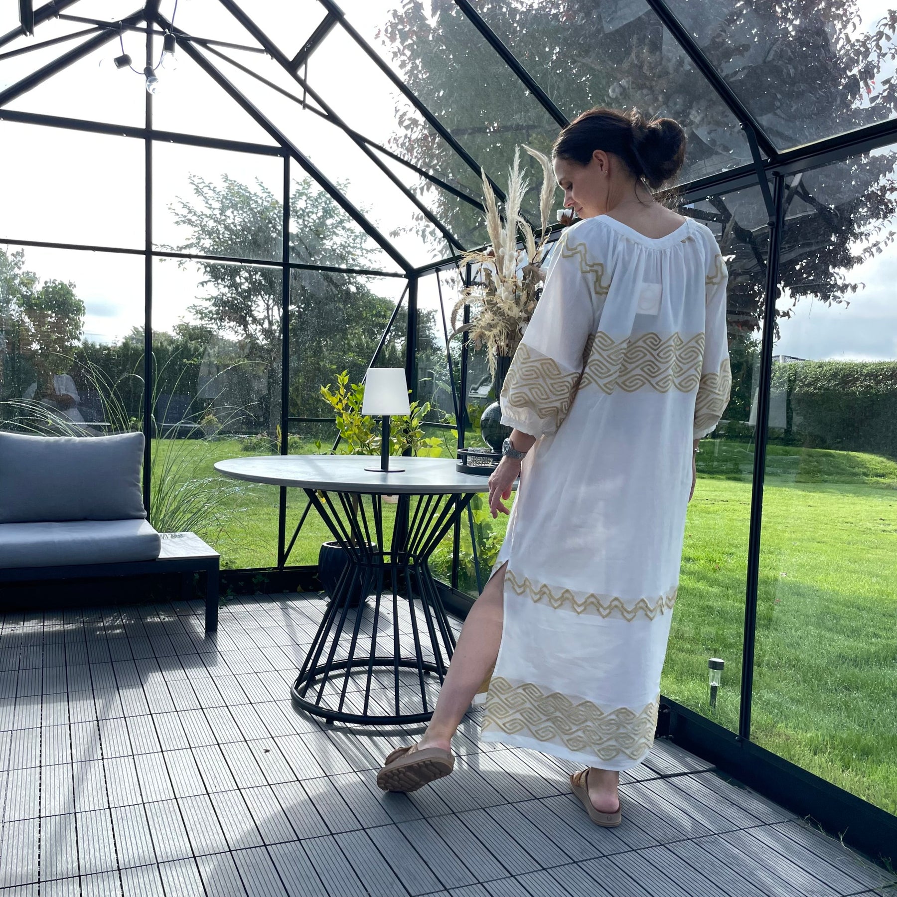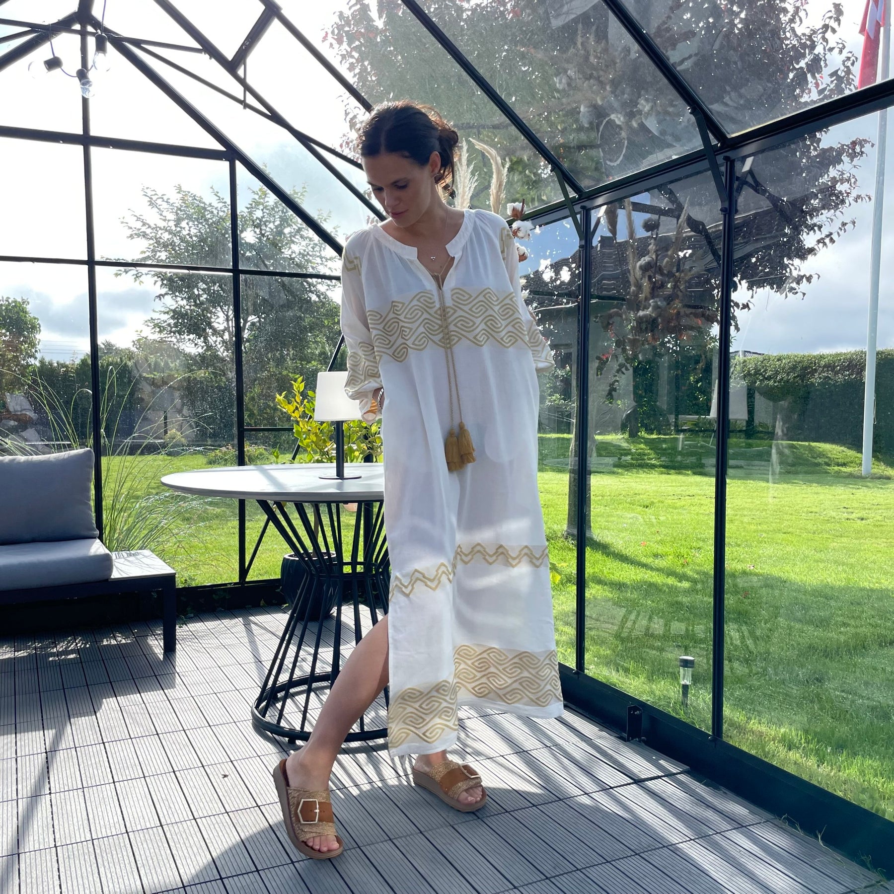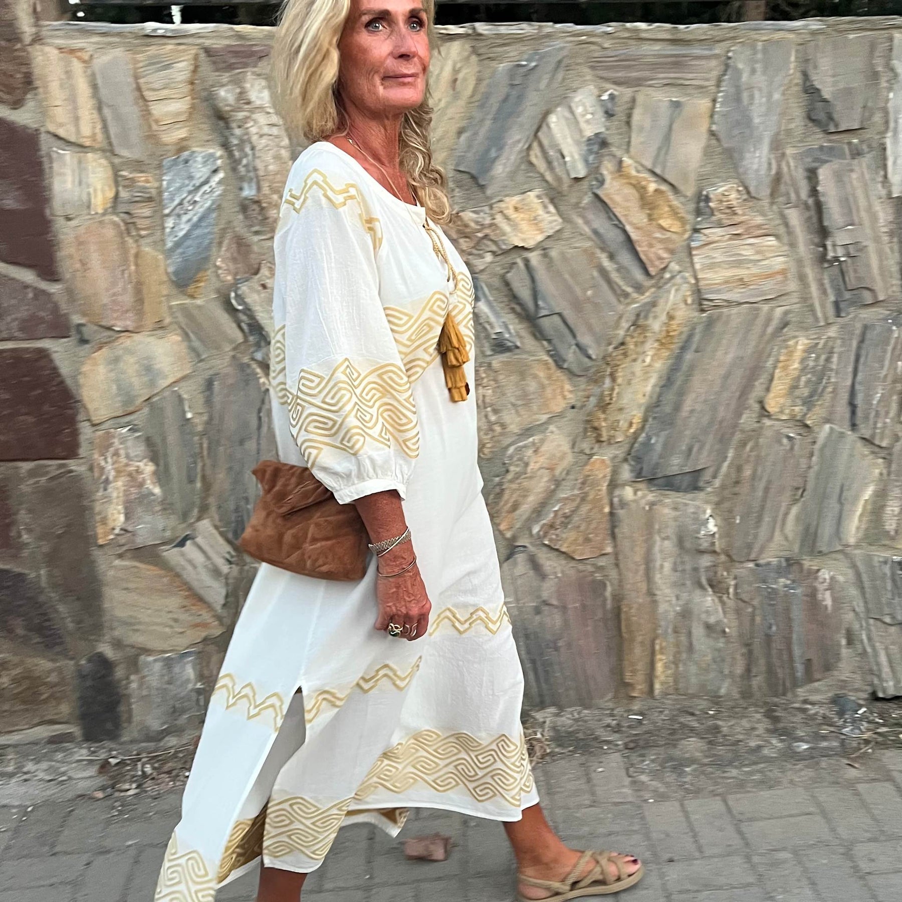 ❥ Mål på størrelse: S/M - Mål over bryst: 64 cm - Mål i bund: 78 cm - Længde front: 133 cm - Længde Bag: 133 cm - Ærme udvendig: 56 cm - Ærme indvendig: 36 cm