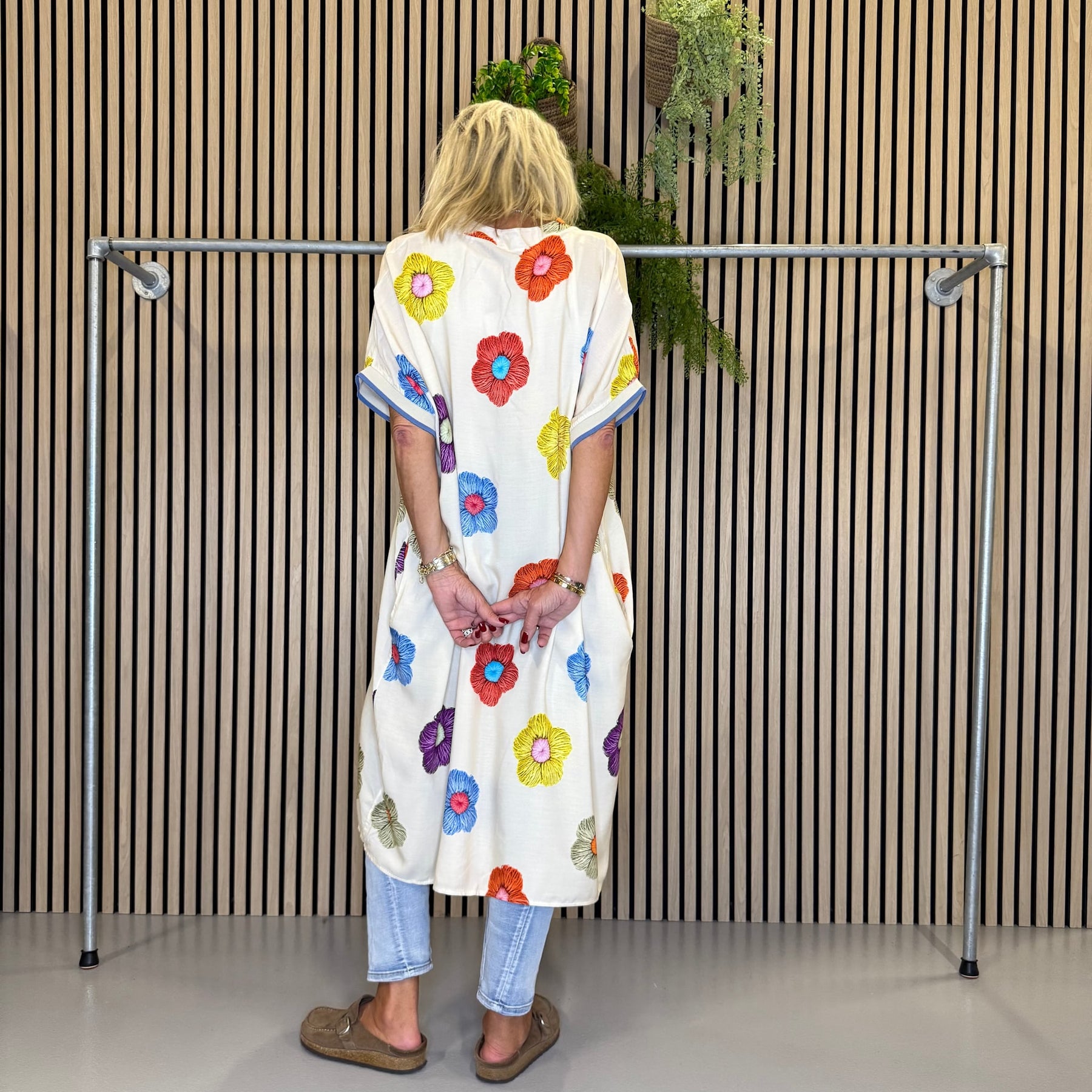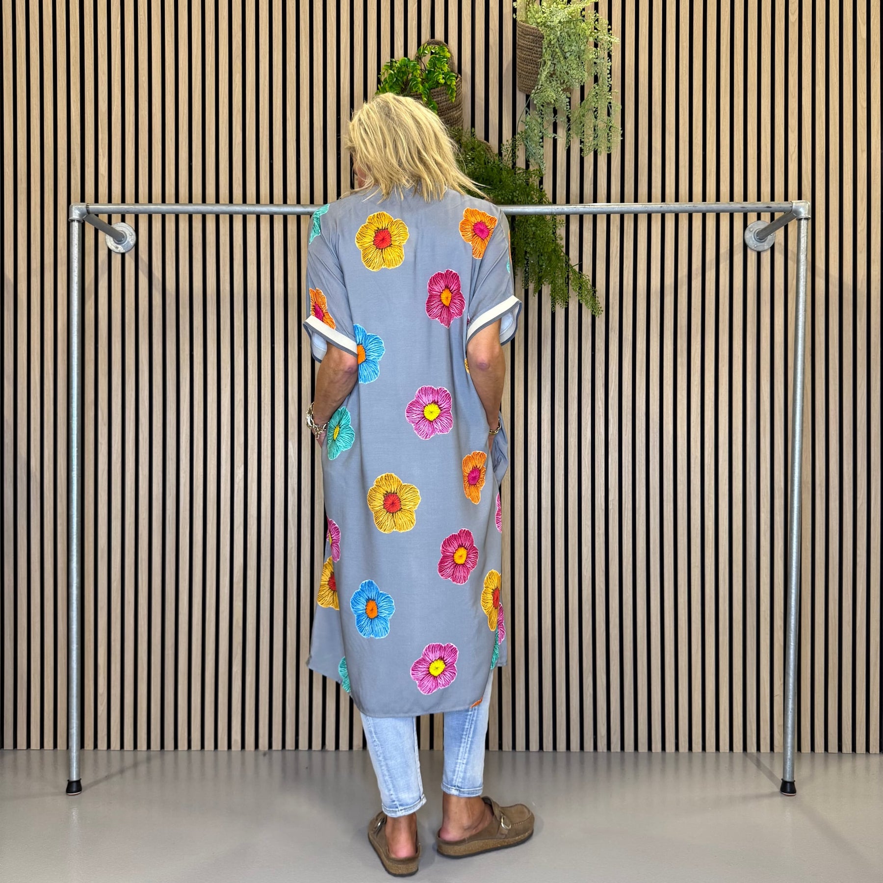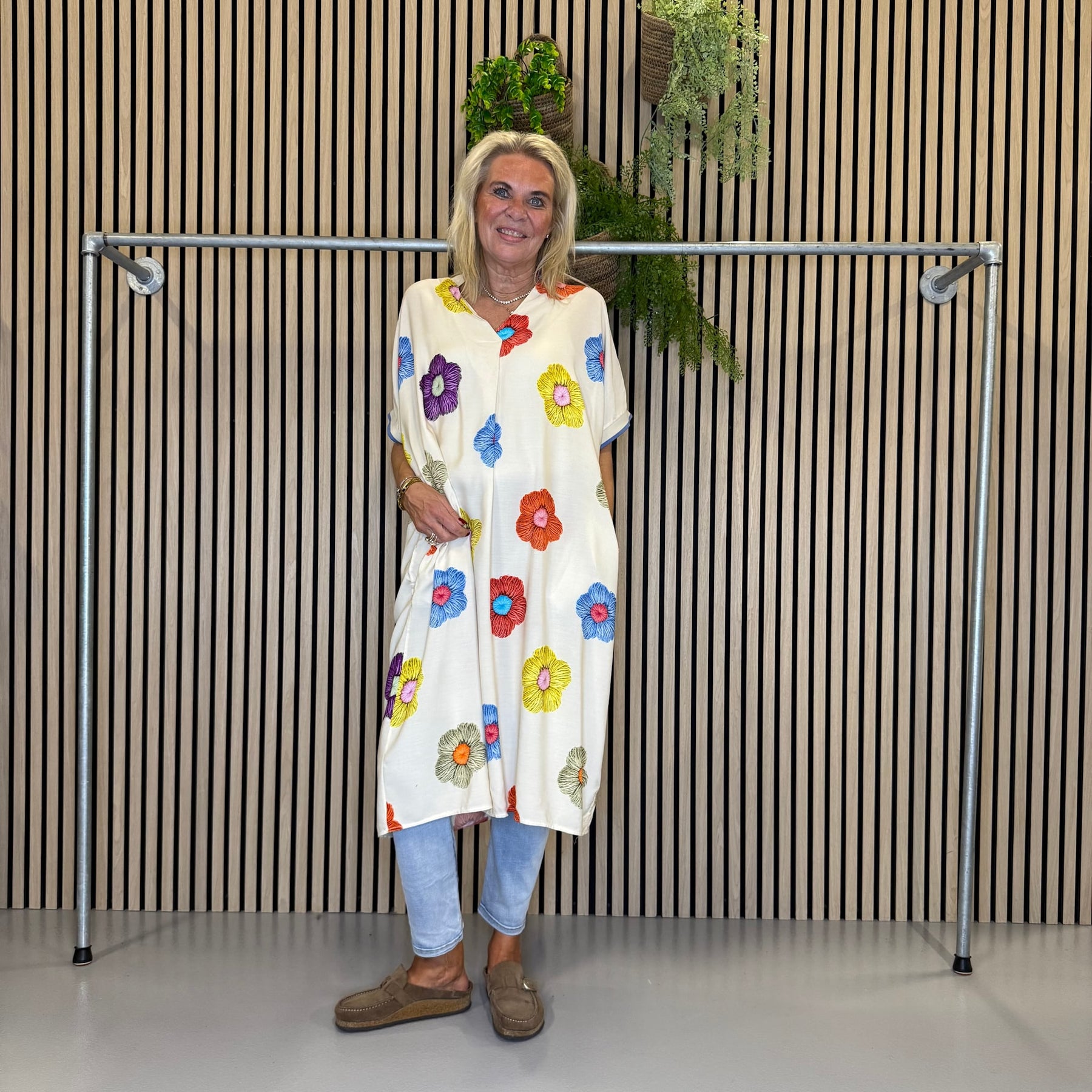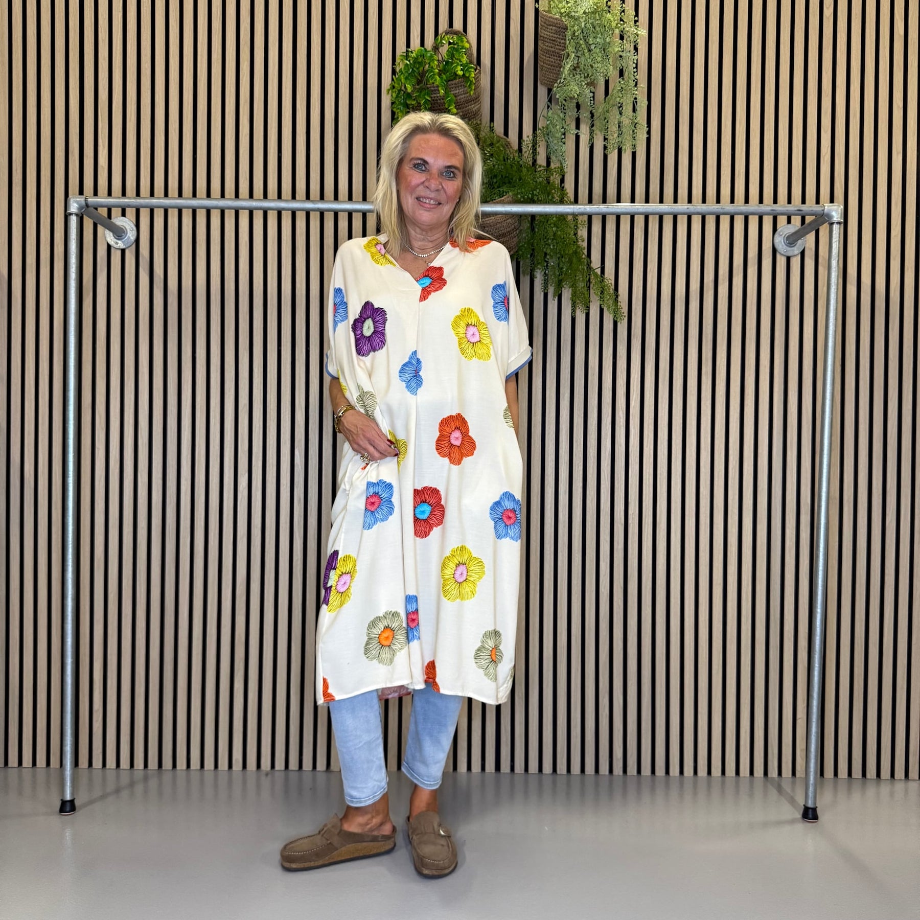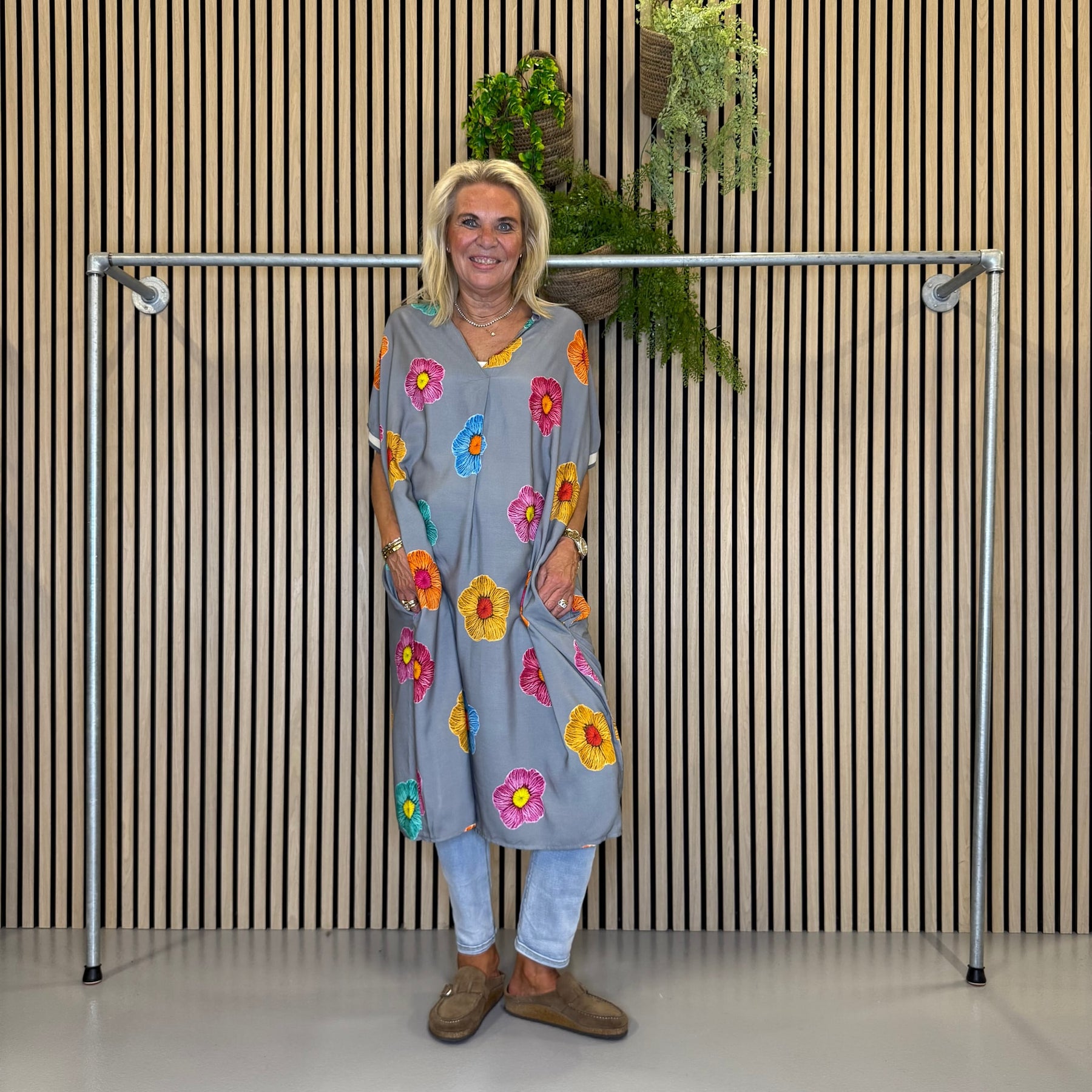 ❥ Mål på størrelse: Onesize - Mål over bryst: 77 cm - Målover bryst udstrakt: 77 cm - Mål i bund: 77 cm - Længde front: 120 cm - Længde Bag: 120 cm - Ærme udvendig: 35 cm - Ærme indvendig: 5 cm