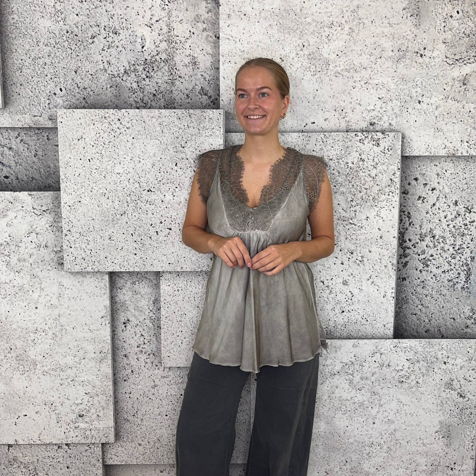 ❥ Mål på størrelse: S/M - Mål over bryst: 59 cm - Mål over bryst udstrakt: 61 cm - Mål i bund: 78 cm - Længde front: 73 cm - Længde Bag: 80 cm