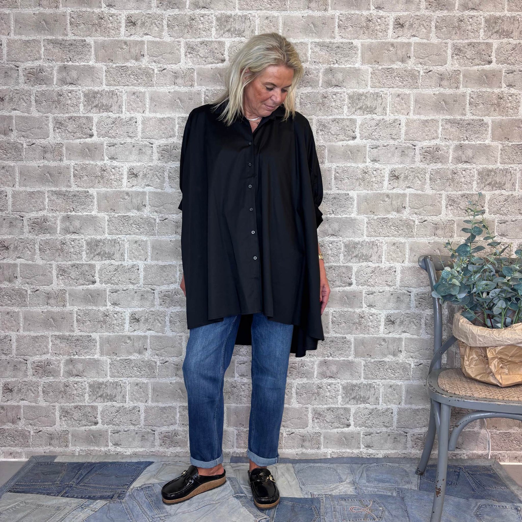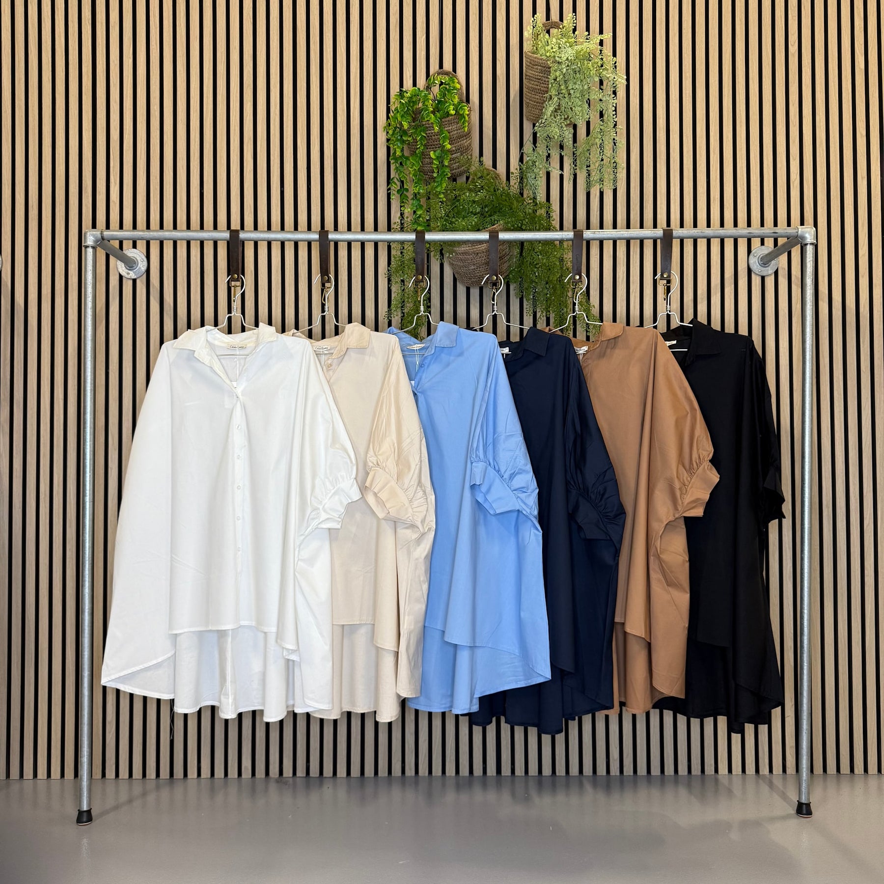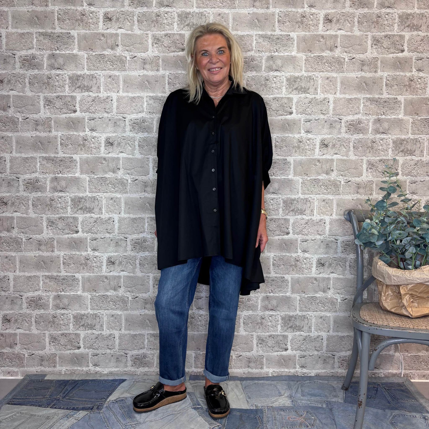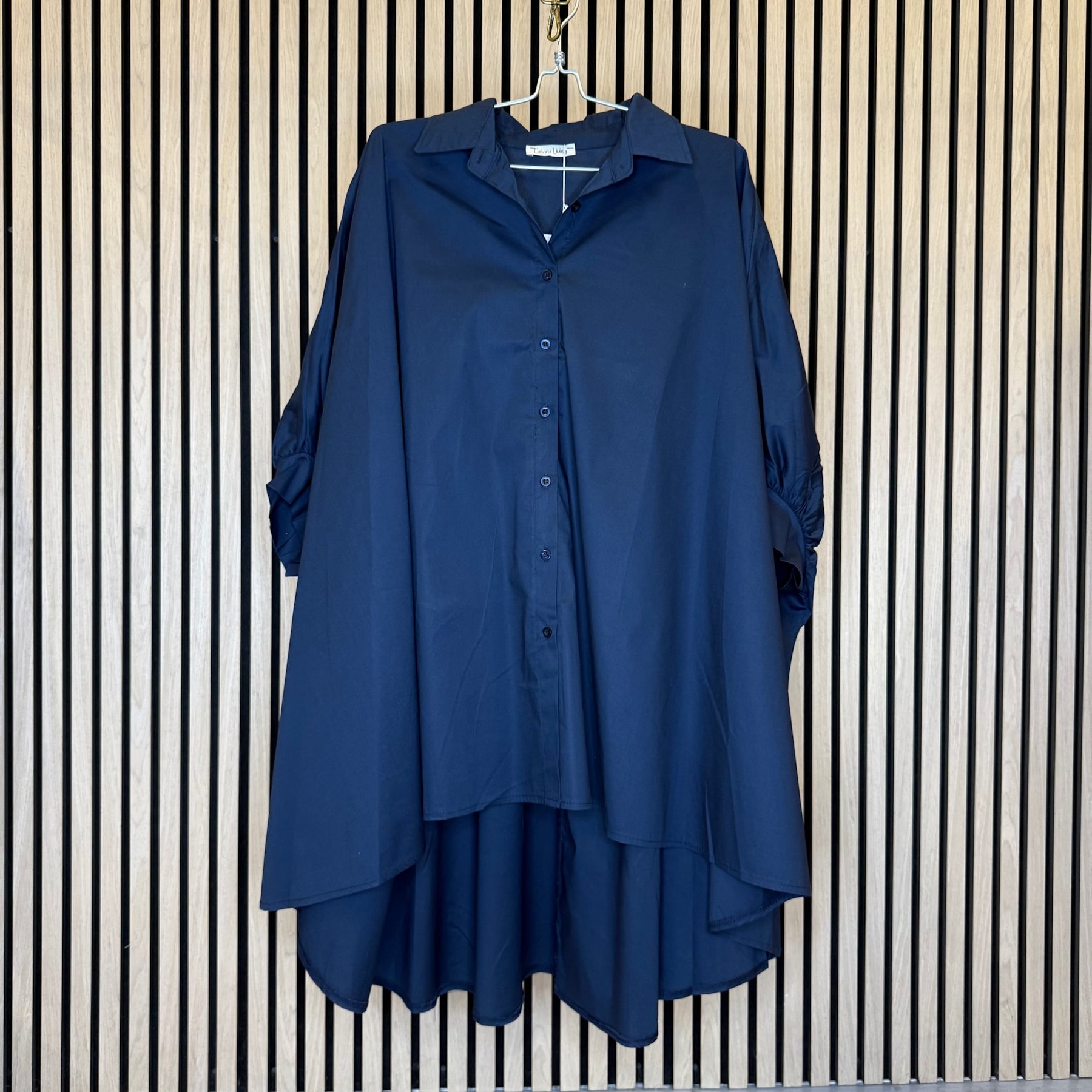 ❥ Mål på størrelse: Onesize - Mål over bryst: 115 cm - Mål i bund: 145 cm - Længde front: 80 cm - Længde Bag: 98 cm - Ærme udvendig: 54 cm - Ærme indvendig: 7 cm