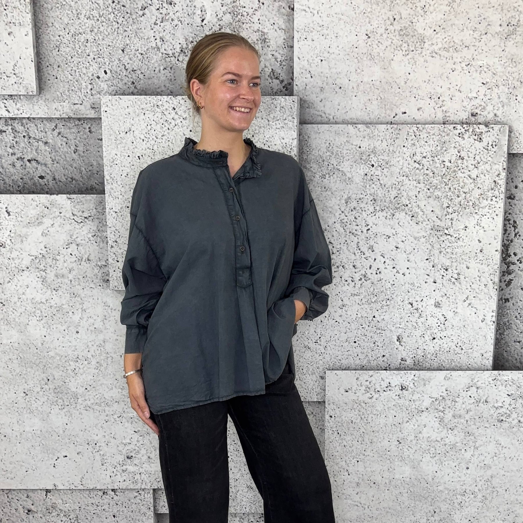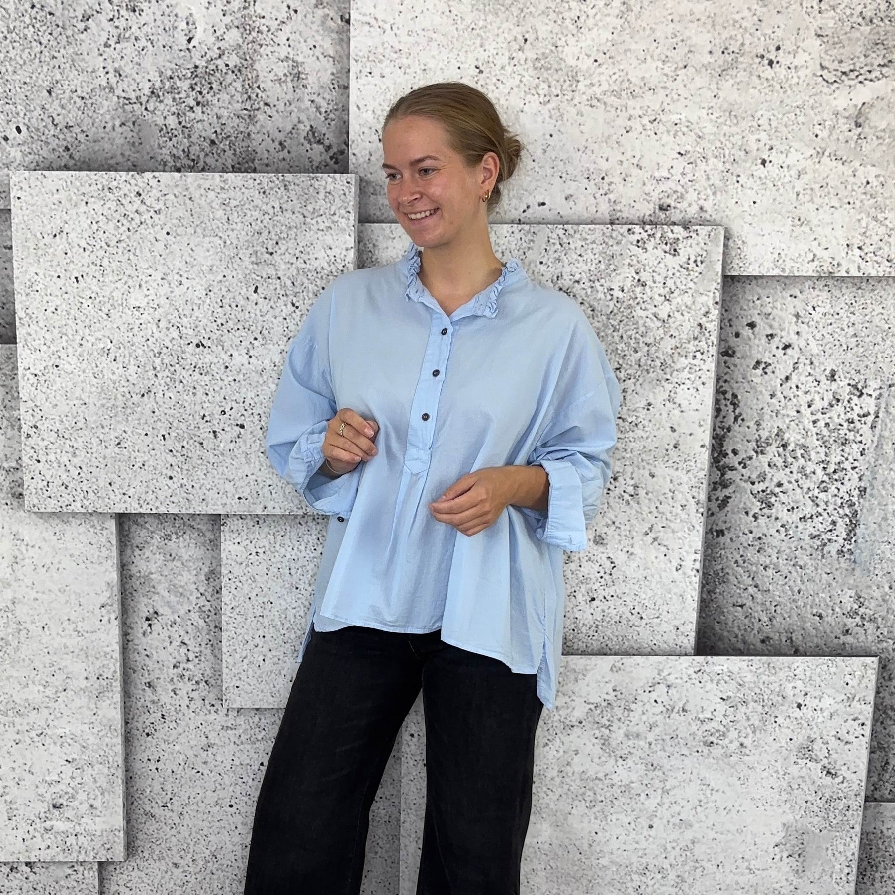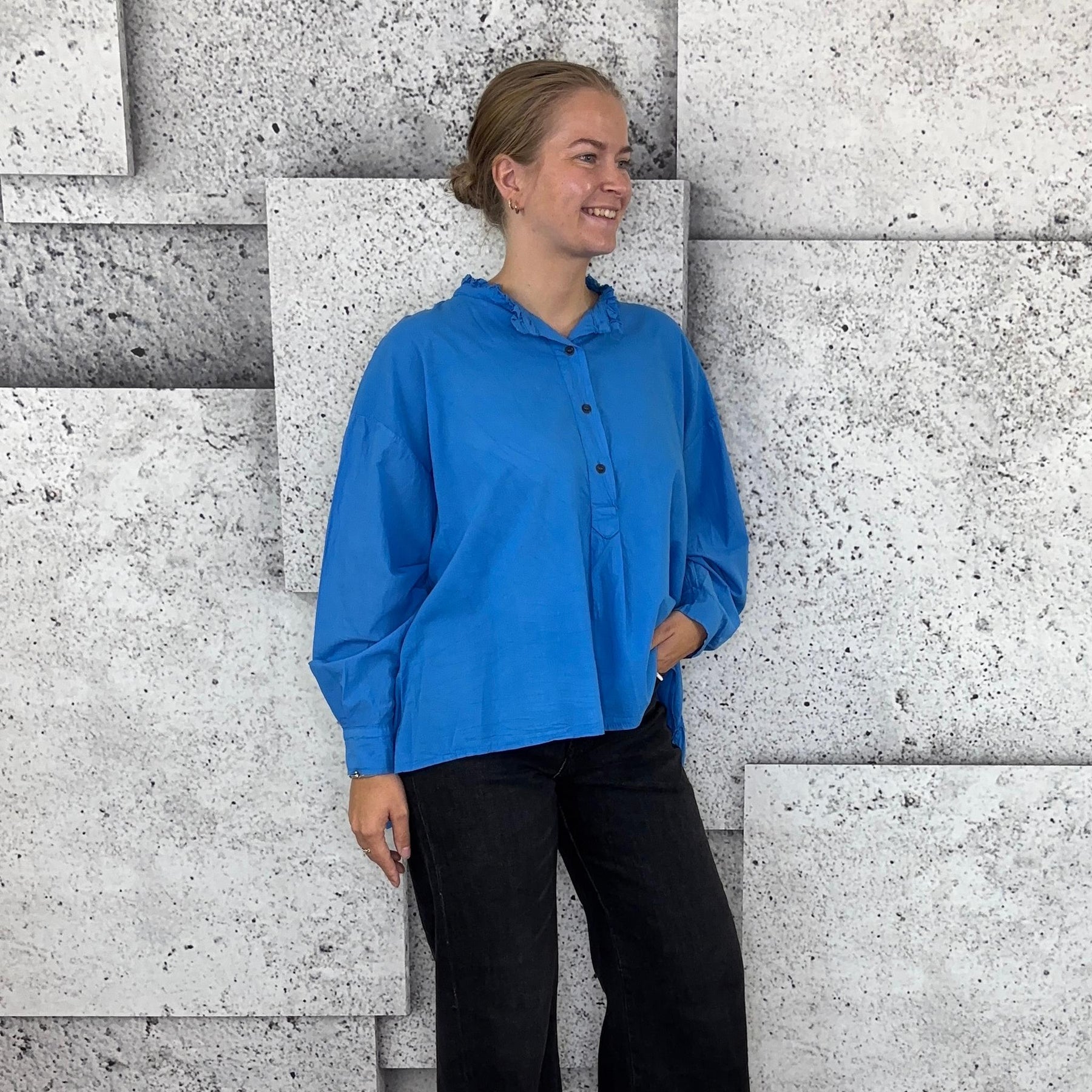❥ Mål på størrelse: Onesize - Mål over bryst: 76 cm - Mål i bund: 85 cm - Længde front: 68 cm - Længde Bag: 78 cm - Ærme udvendig: 74 cm - Ærme indvendig: 45 cm