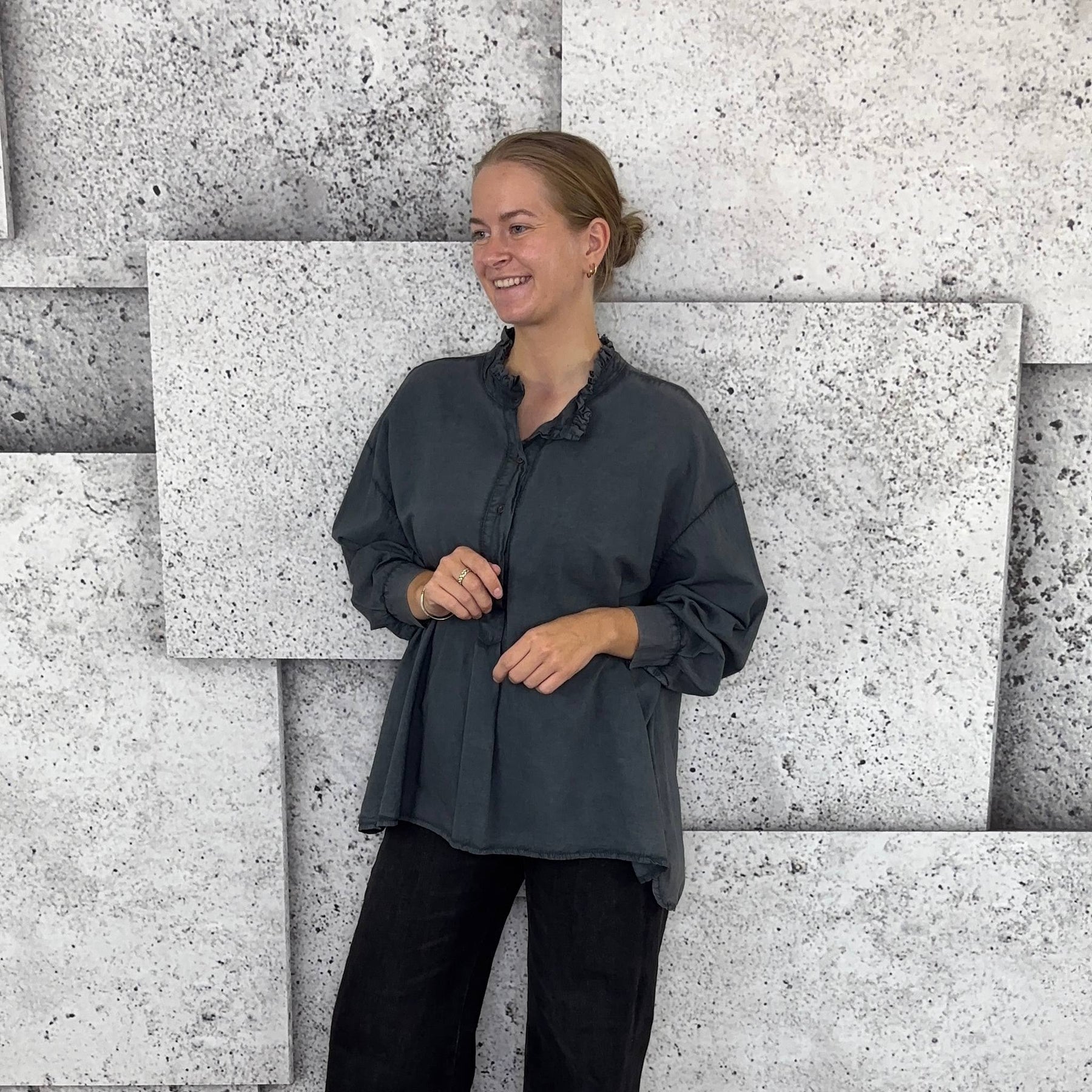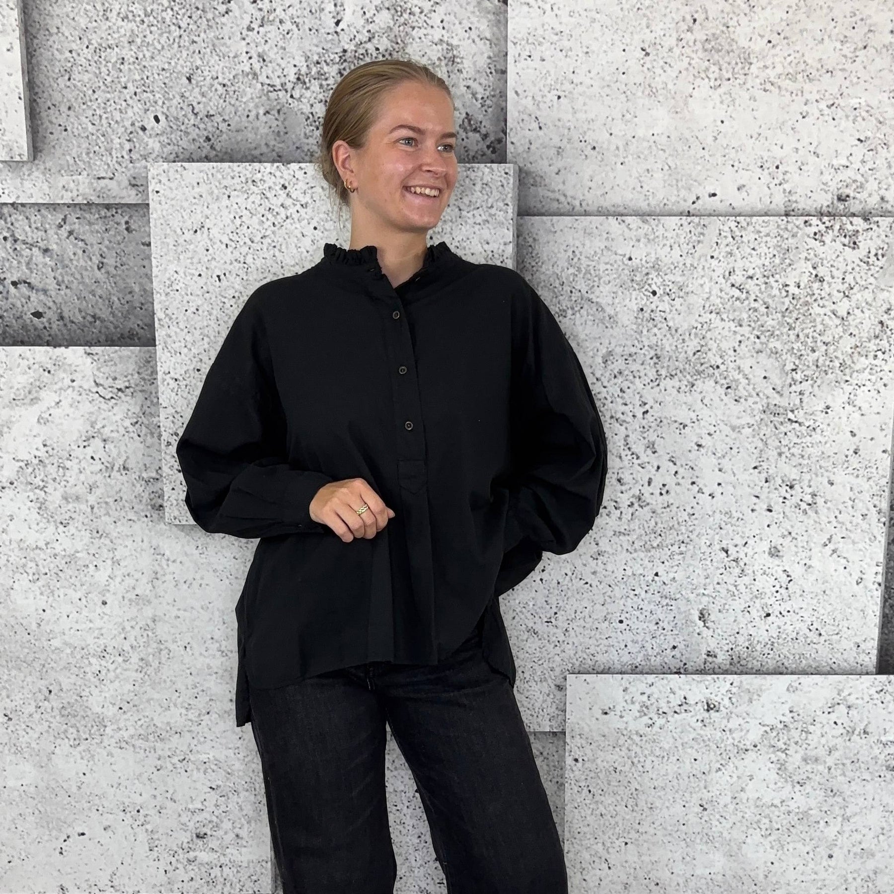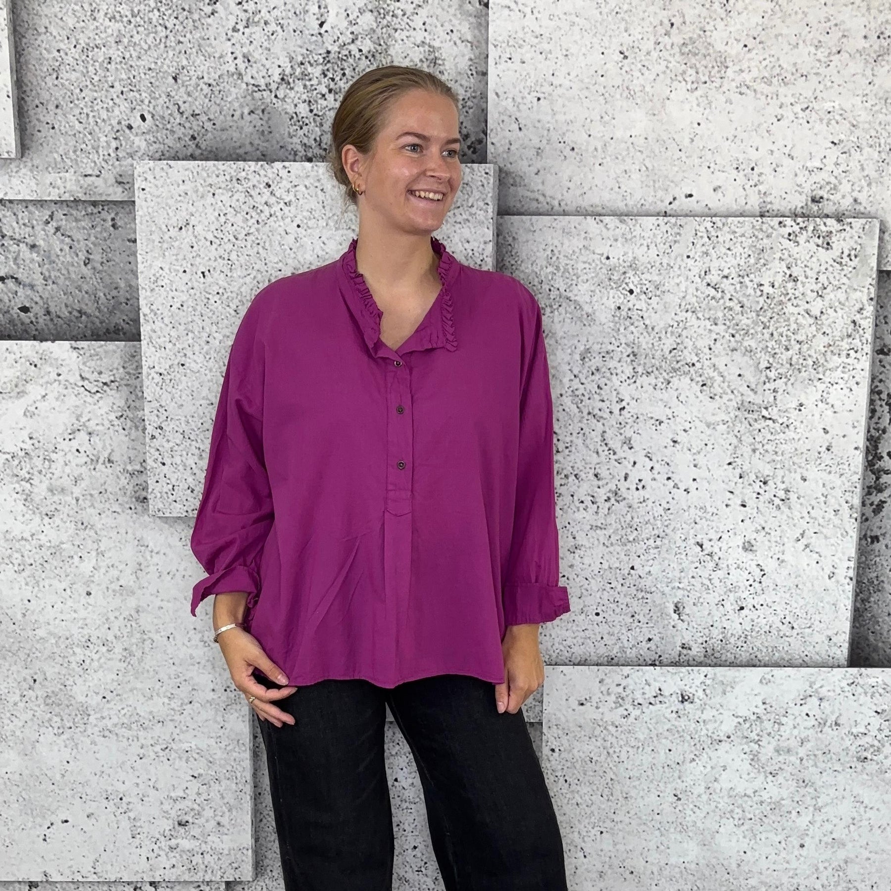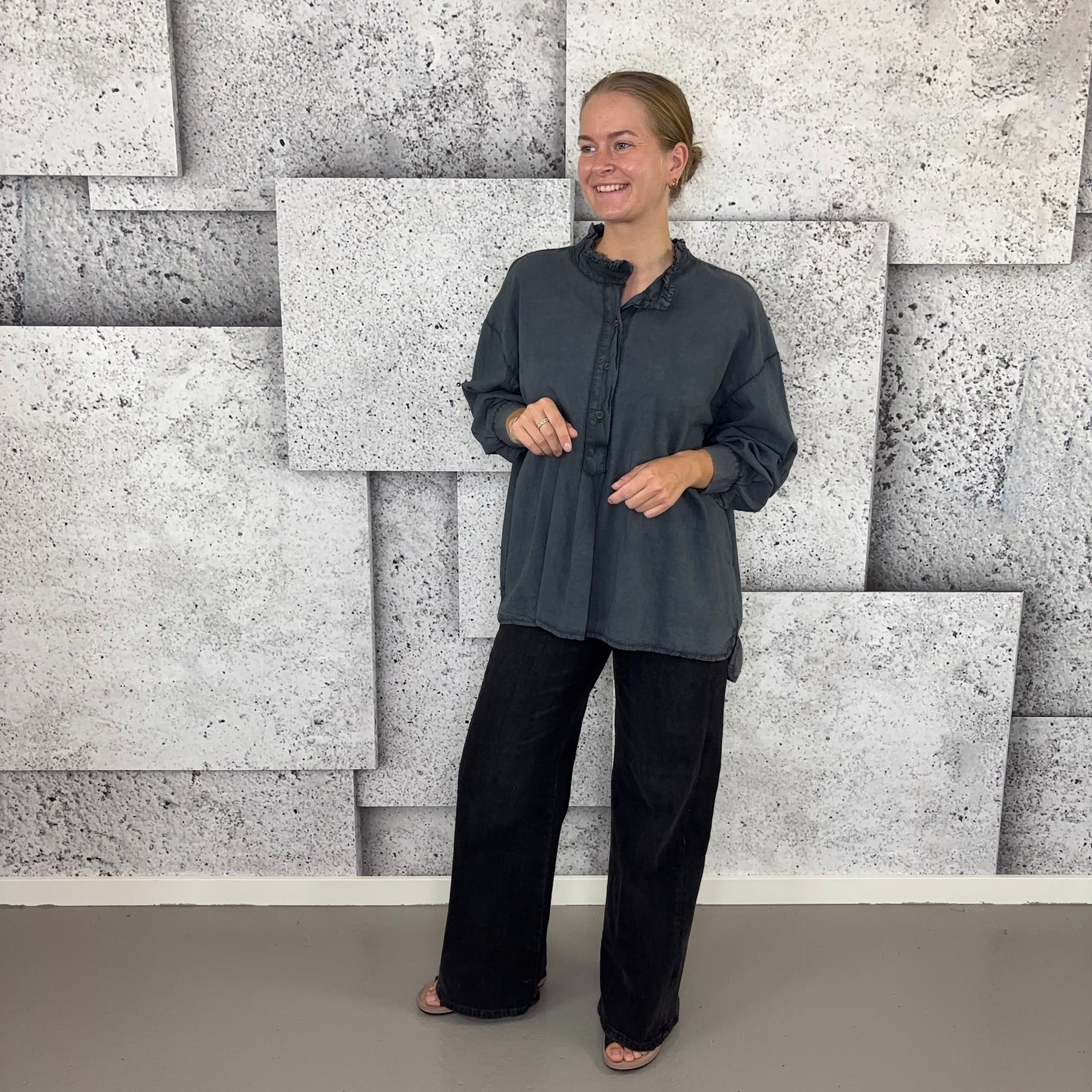 ❥ Mål på størrelse: Onesize - Mål over bryst: 76 cm - Mål i bund: 85 cm - Længde front: 68 cm - Længde Bag: 78 cm - Ærme udvendig: 74 cm - Ærme indvendig: 45 cm