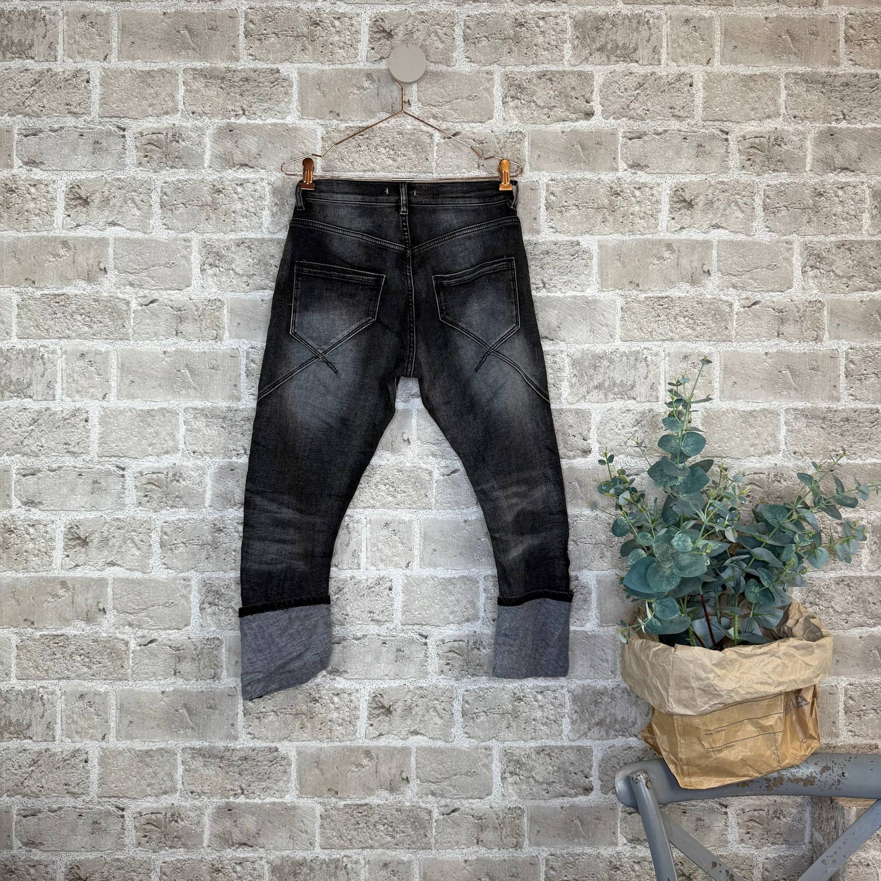 ❥ Mål på størrelse: M - Linning: 40 cm - Linning udstrakt: 45 cm - Hofte: 54 cm - Benlængde udvendig m/opsmøg: 89 cm. u/opsmøg: 103 cm - Benlængde indvendig m/opsmøg: 60 cm. u/opsmøg: 74 cm