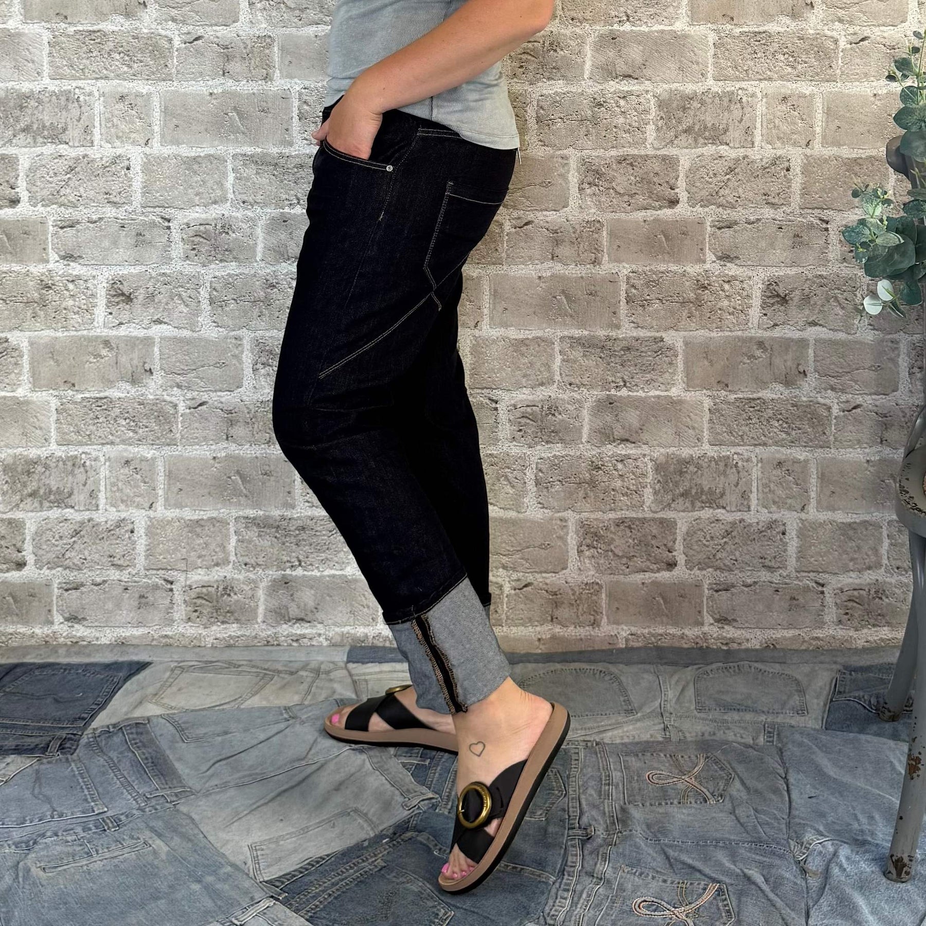 ❥ Mål på størrelse: M - Linning: 41 cm - Linning udstrakt: 44 cm - Hofte: 58 cm - Benlængde udvendig m/opsmøg: 95 cm. u/opsmøg: 107 cm - Benlængde indvendig m/opsmøg: 67 cm. u/opsmøg: 77 cm