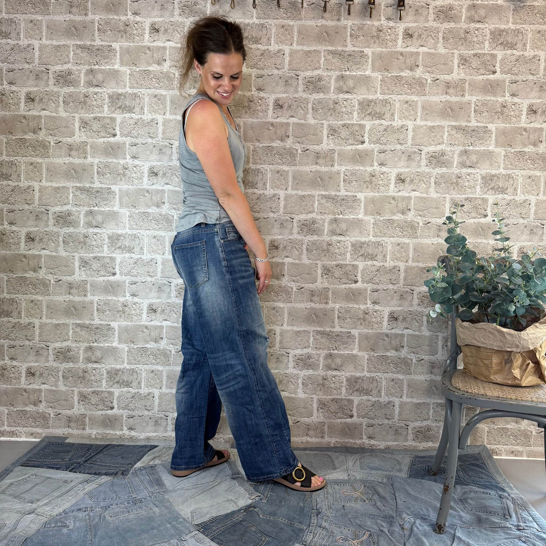 ❥ Mål på størrelse: M - Linning: 41 cm - Linning udstrakt: 43 cm - Hofte: 57 cm - Benlængde udvendig: 103 cm - Benlængde indvendig: 73 cm