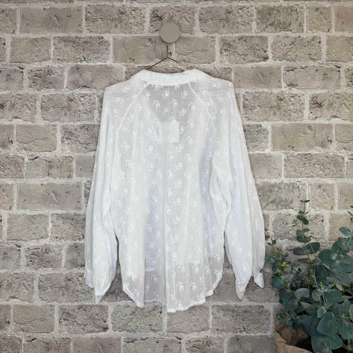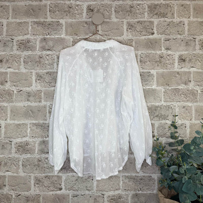 ❥ Mål på størrelse: Onesize - Mål over bryst: 65 cm - Mål i bund: 65 cm - Længde front: 63 cm - Længde Bag: 80 cm - Ærme udvendig: 65 cm - Ærme indvendig: 50 cm