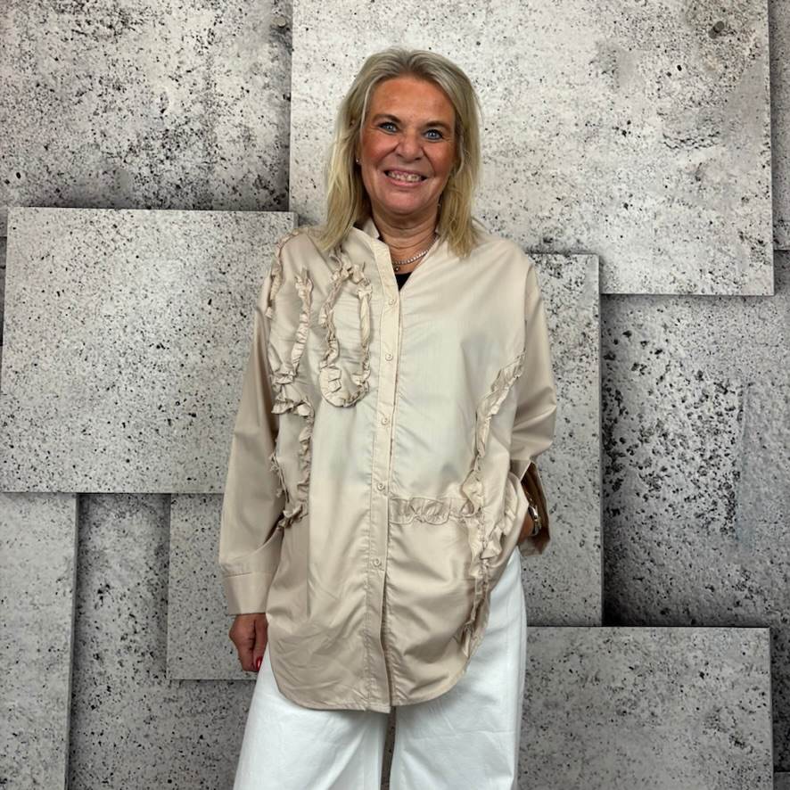 ❥ Mål på størrelse: Onesize - Mål over bryst: 68 cm - Mål i bund: 70 cm - Længde front: 82 cm - Længde Bag: 82 cm - Ærme udvendig: 74 cm - Ærme indvendig: 46 cm