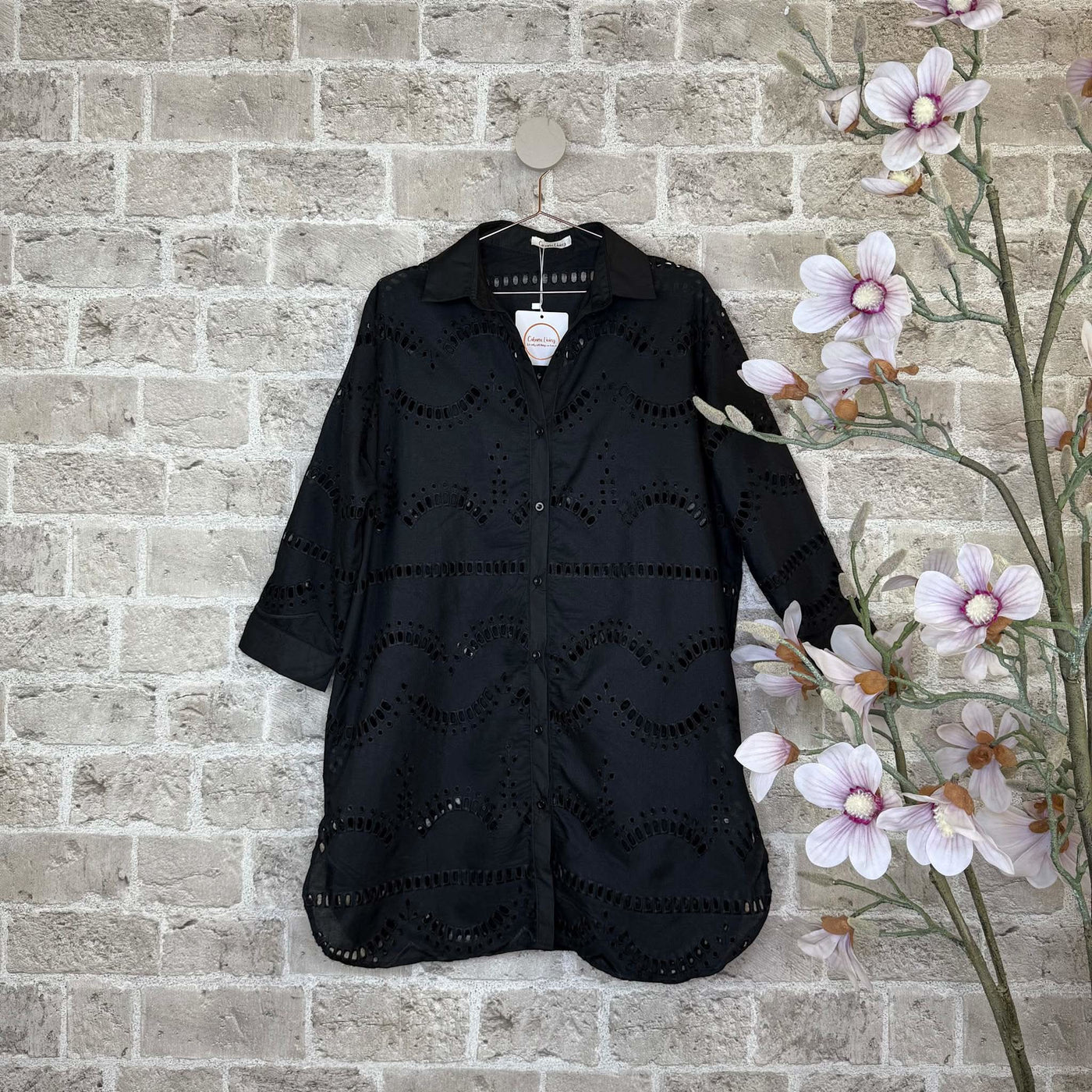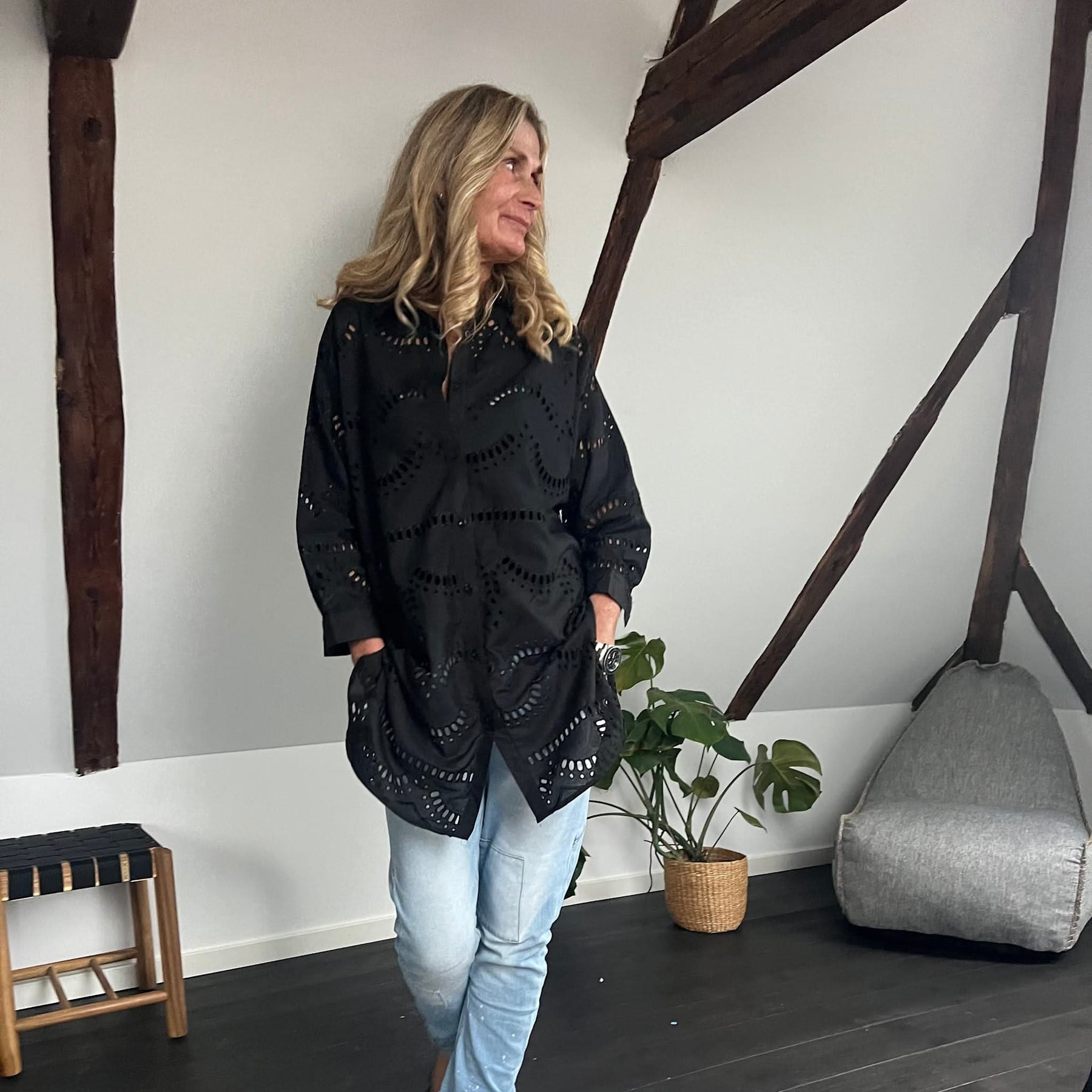 ❥ Mål på størrelse: Onesize - Mål over bryst: 64 cm - Mål i bund: 68 cm - Længde front: 93 cm - Længde Bag: 93 cm - Ærme udvendig: 64 cm - Ærme indvendig: 32 cm