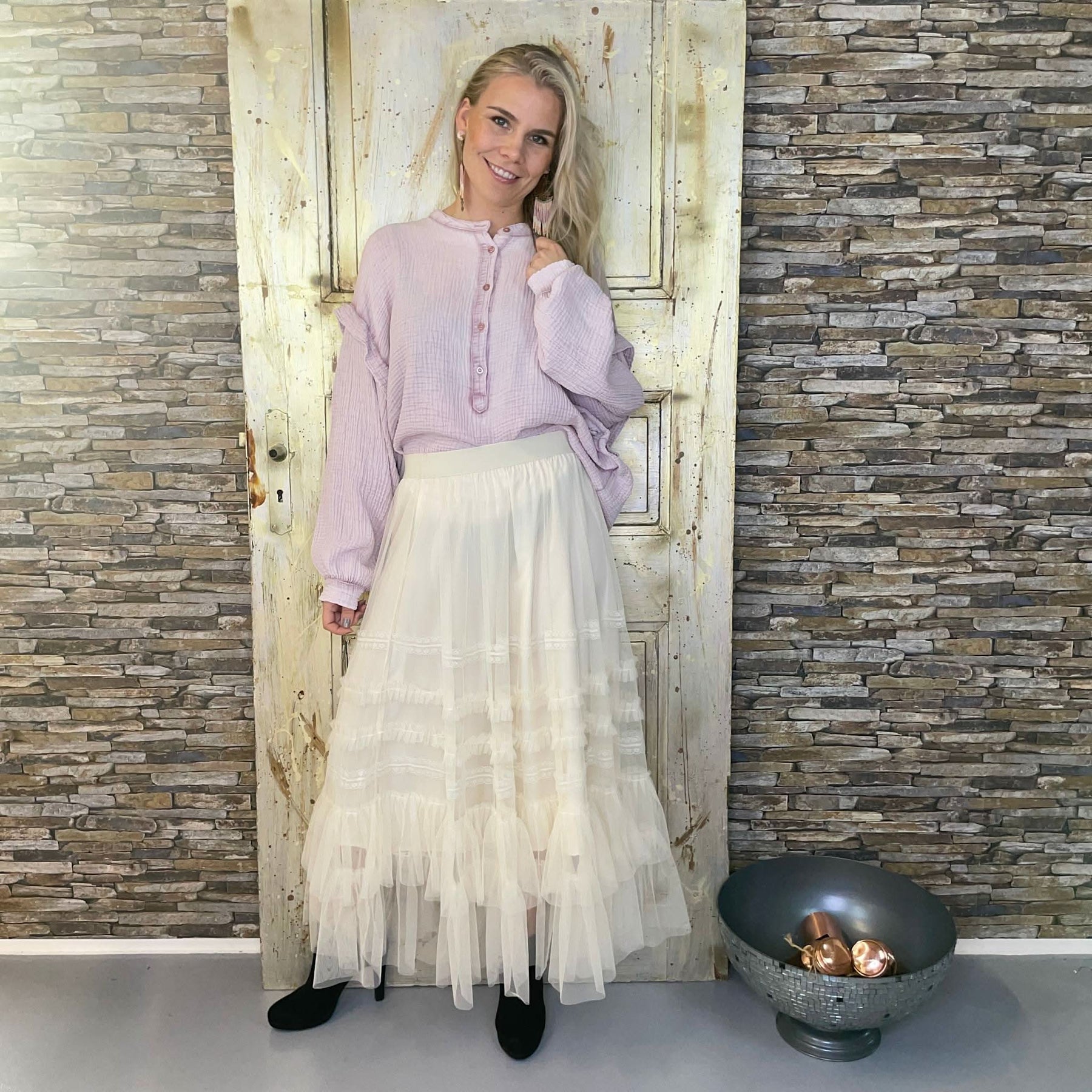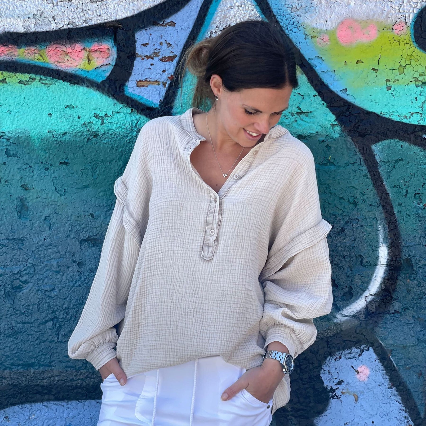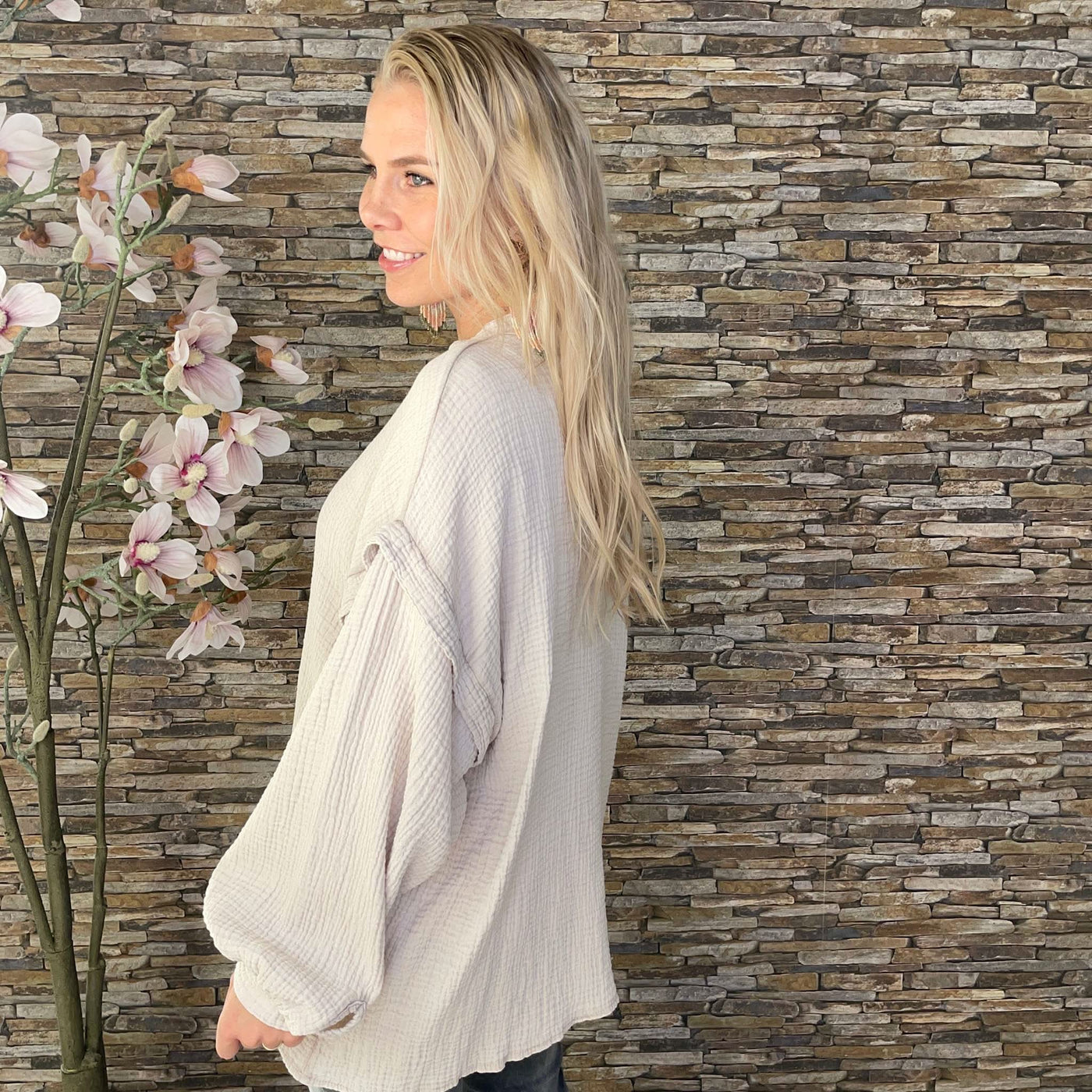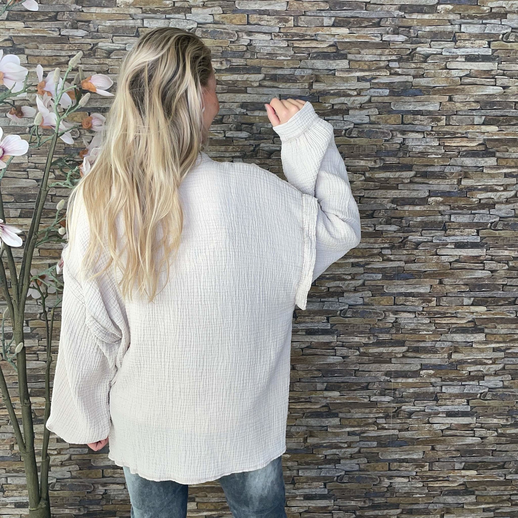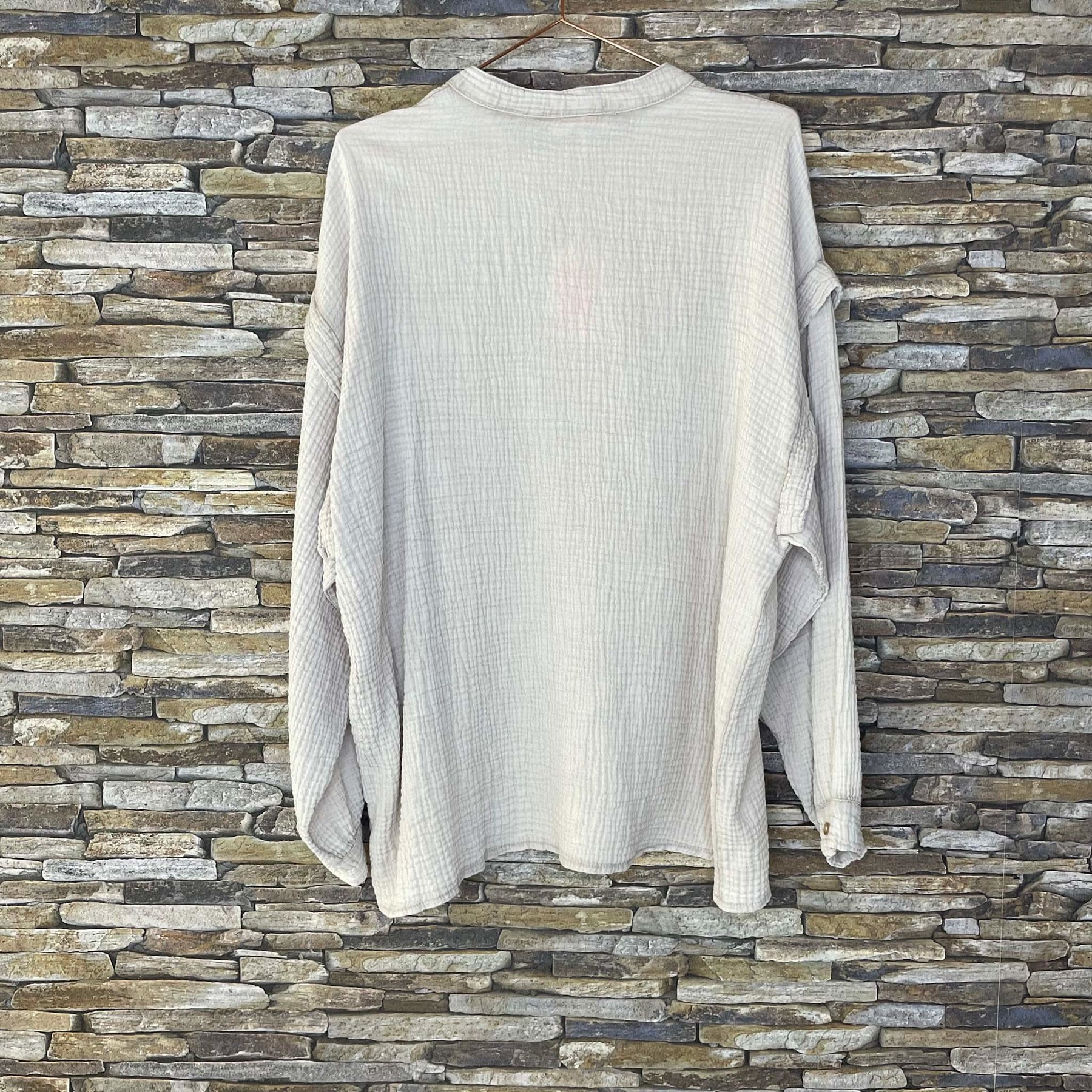 ❥ Mål på størrelse: Onesize - Mål over bryst: 64 cm - Målover bryst udstrakt: 69 cm - Mål i bund: 63 cm - Længde front: 73 cm - Længde Bag: 74 cm - Ærme udvendig: 75 cm - Ærme indvendig: 45 cm