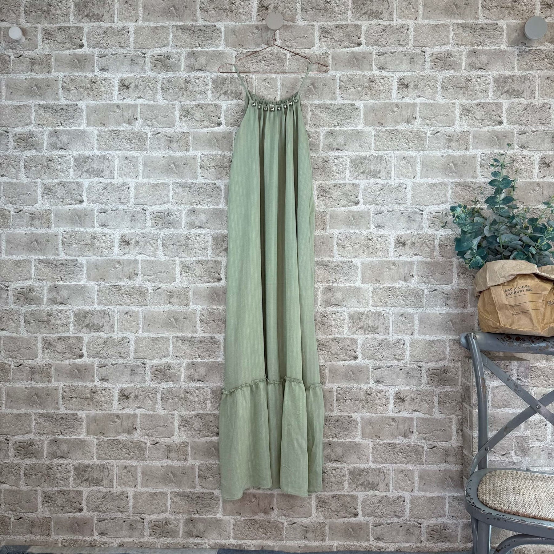 ❥ Mål på størrelse: Onesize - Mål over bryst: 63 cm - Målover bryst udstrakt: 63 cm - Mål i bund: 133 cm - Længde front: 160 cm - Længde Bag: 160 cm