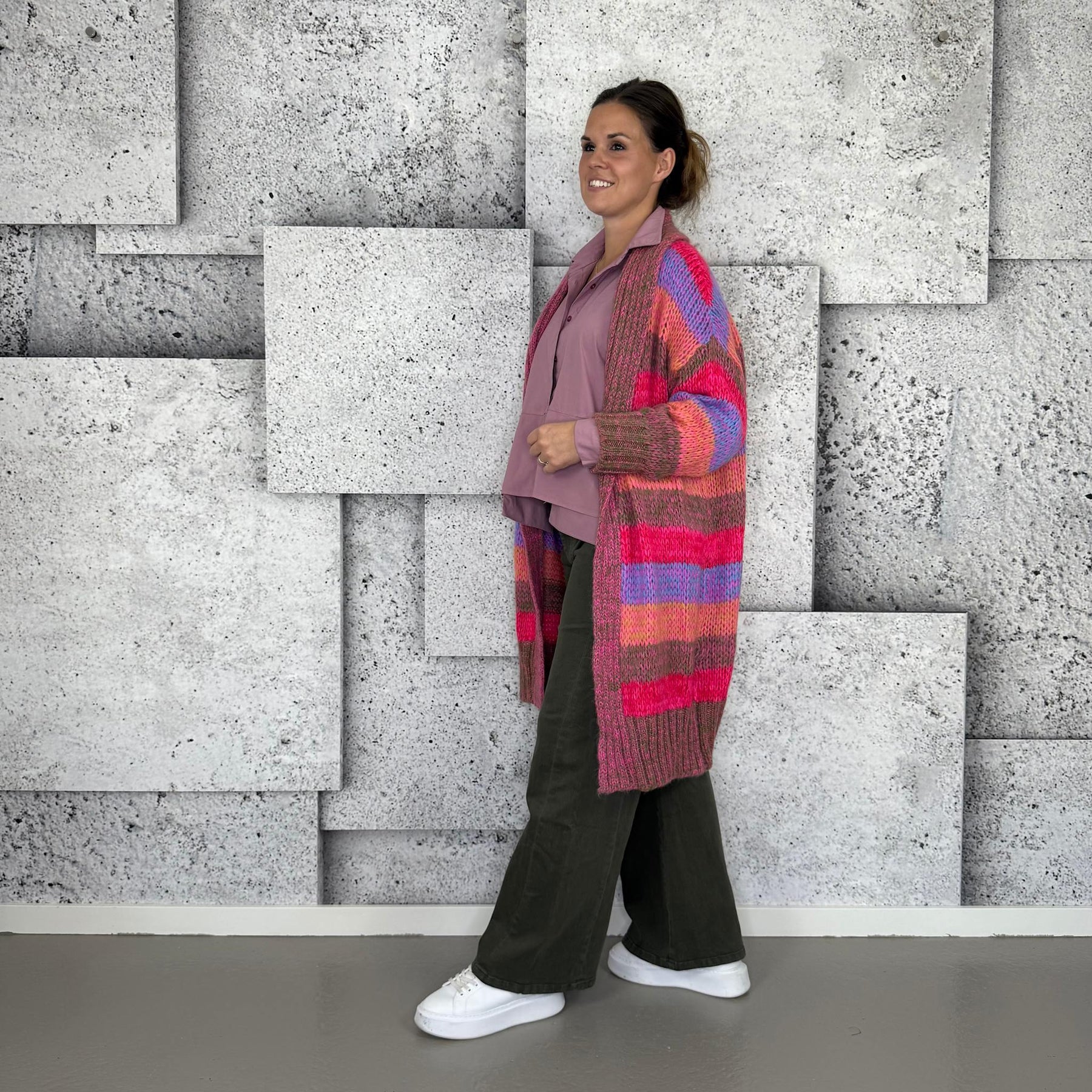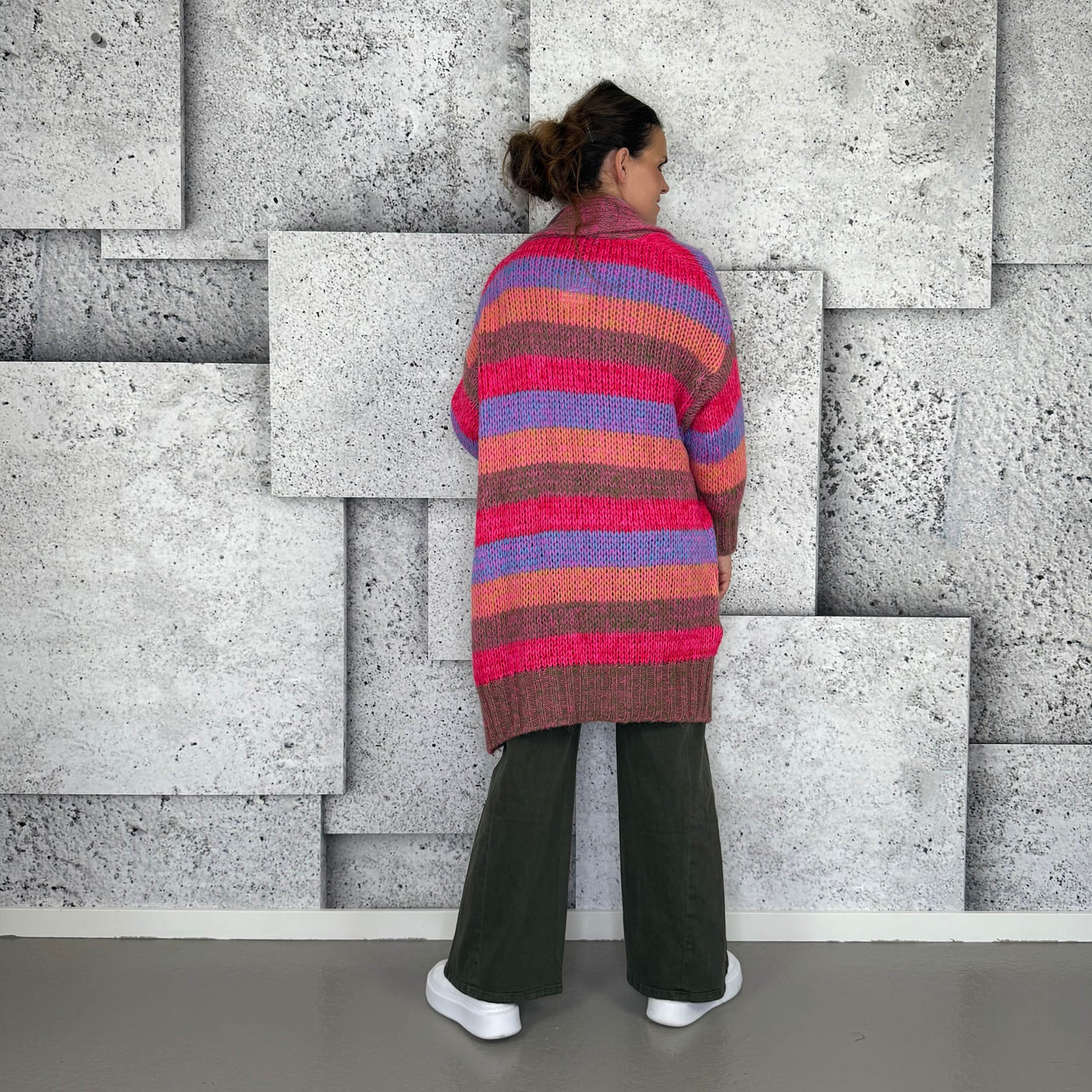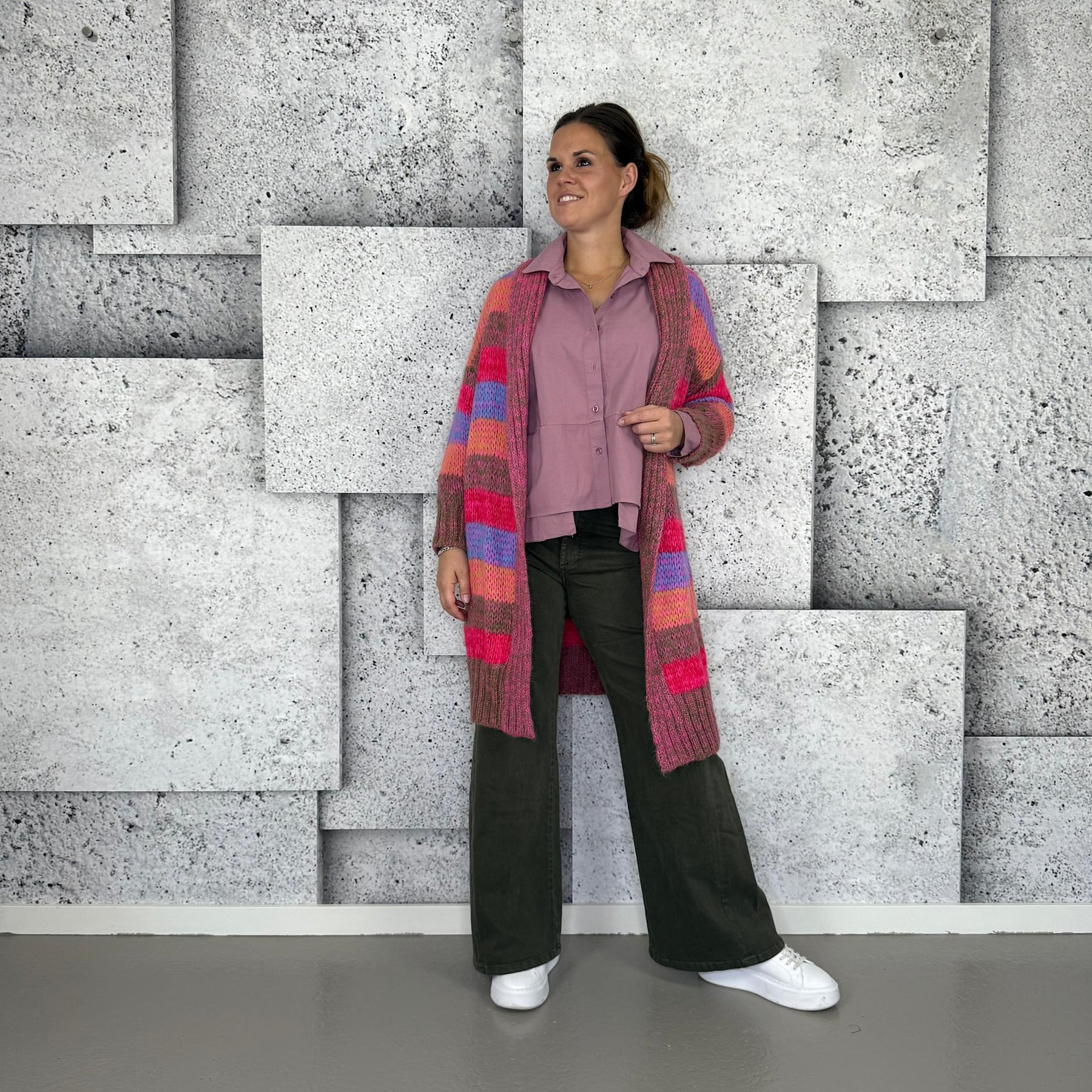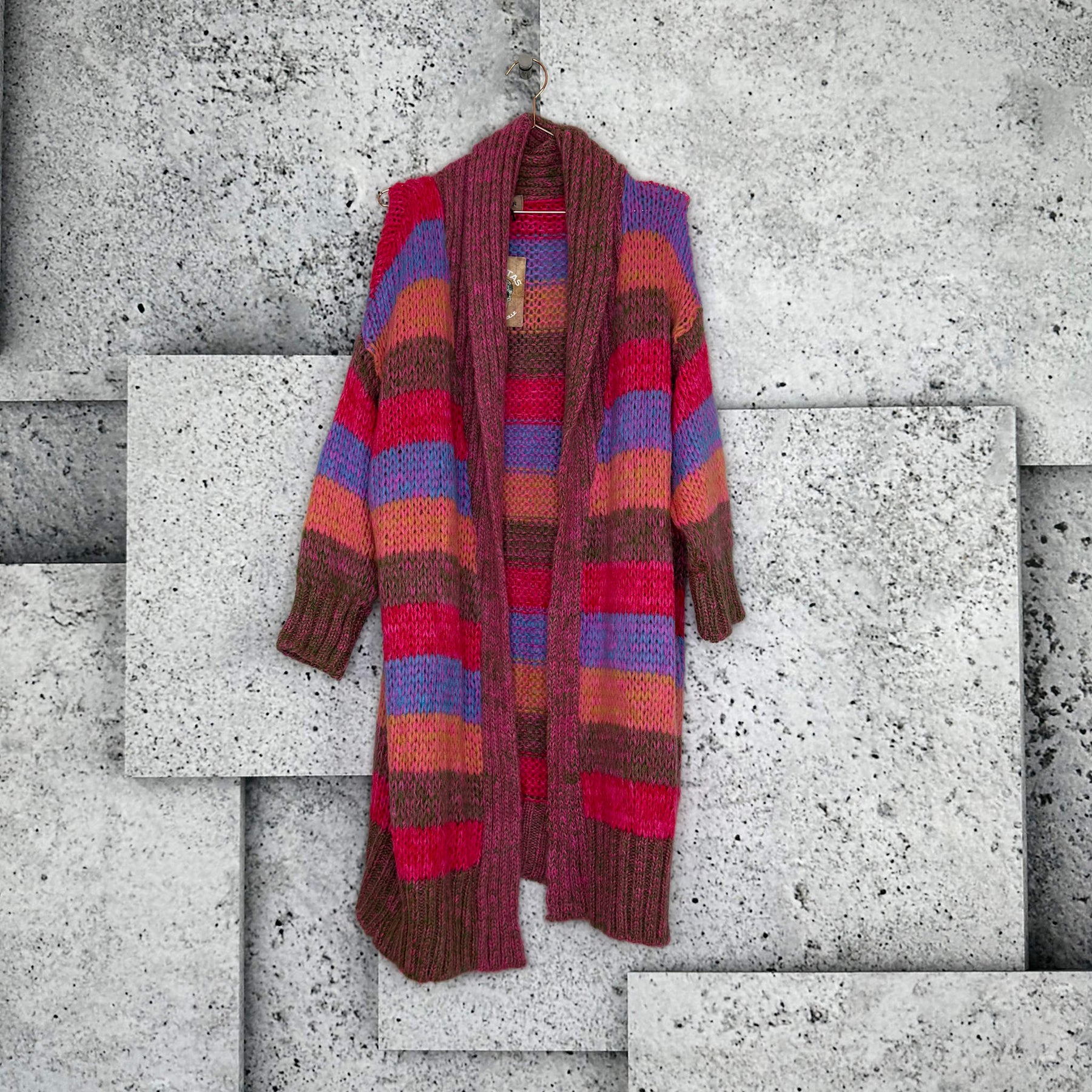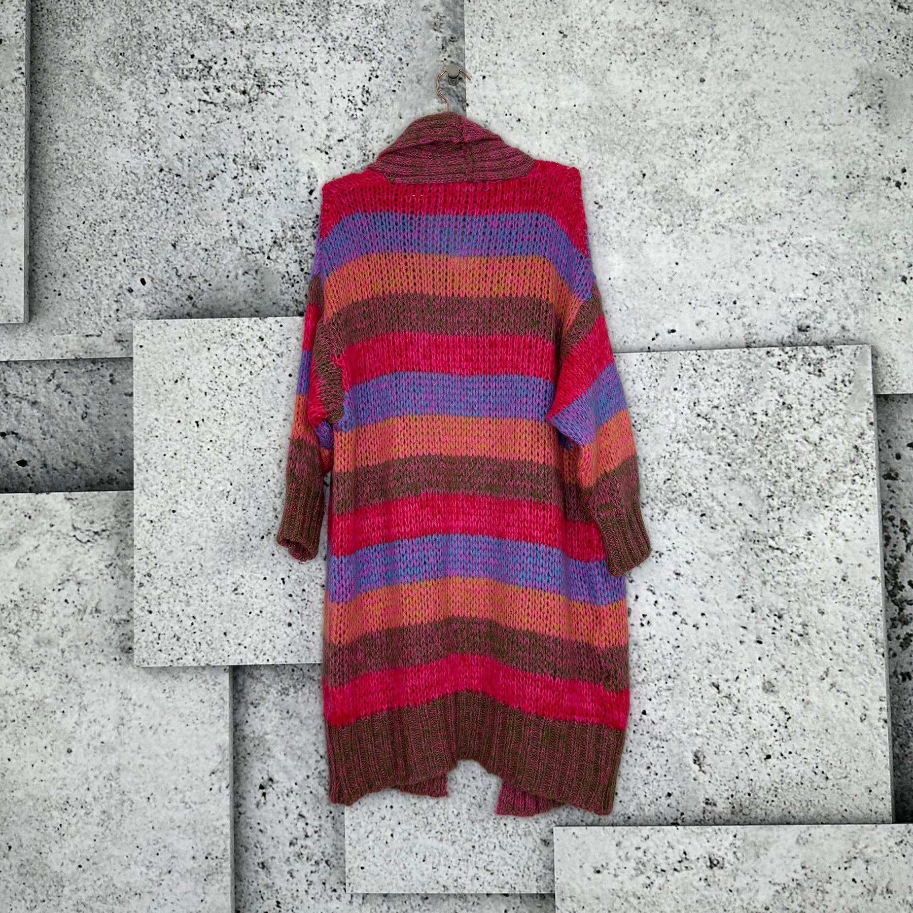 ❥ Mål på størrelse: Onesize - Mål over bryst: 70 cm - Mål i bund: 59 cm - Længde front: 100 cm - Længde Bag: 91 cm - Ærme udvendig: 63 cm - Ærme indvendig: 40 cm