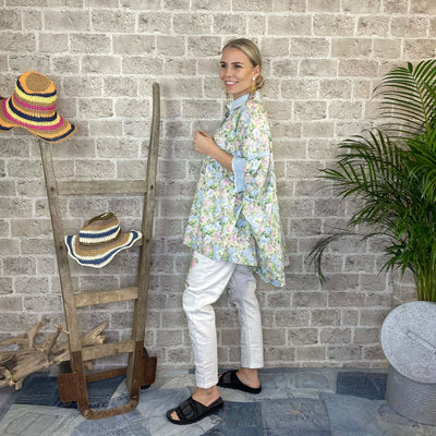 ❥ Mål på størrelse: S/M - Mål over bryst: 95 cm - Mål i bund: 115 cm - Længde front: 73 cm - Længde Bag: 82 cm - Ærme udvendig: 42 cm - Ærme indvendig: 4 cm
