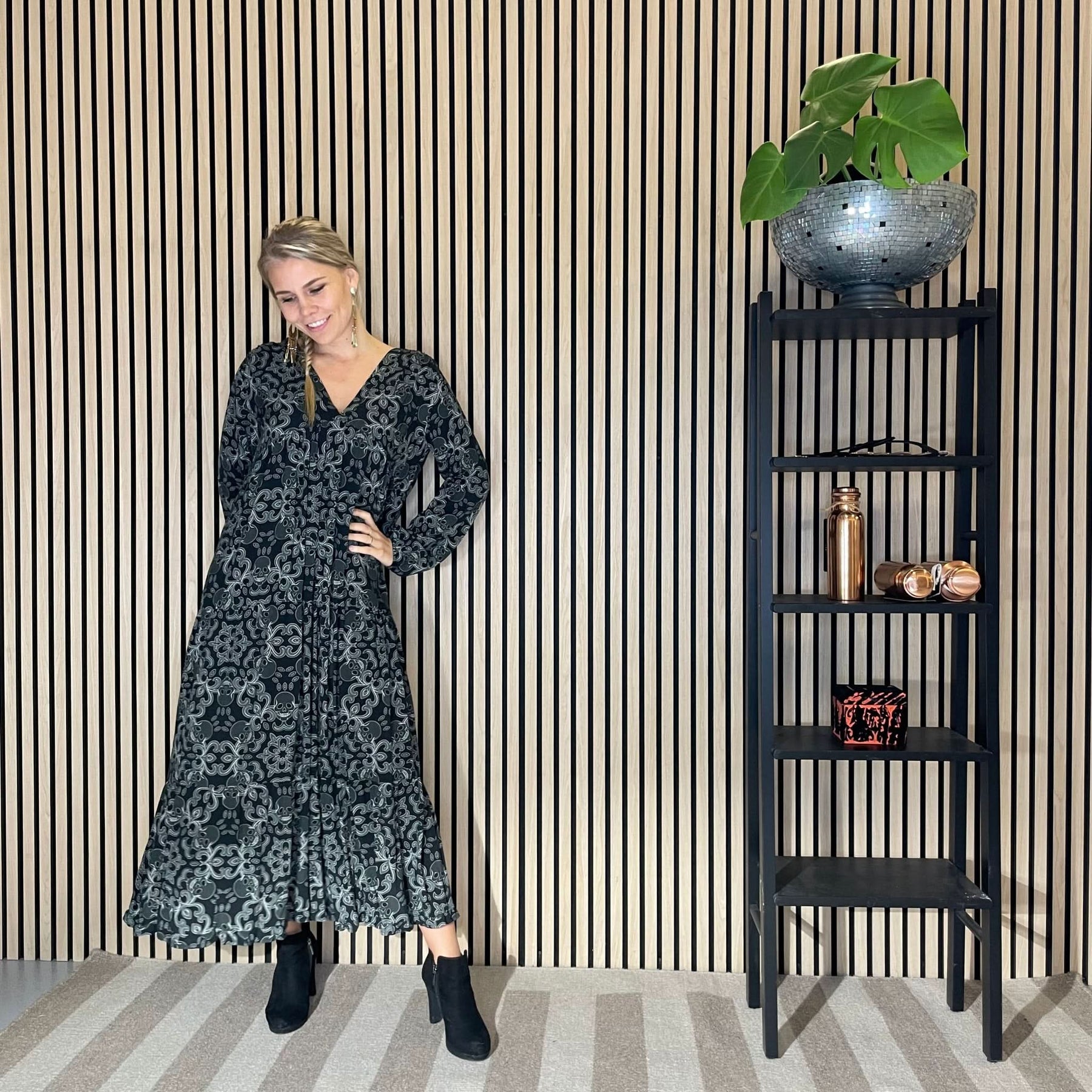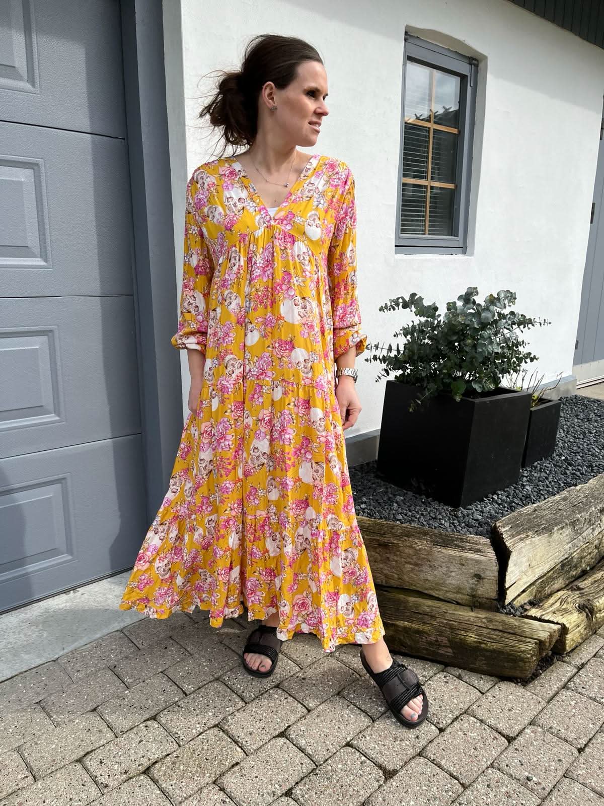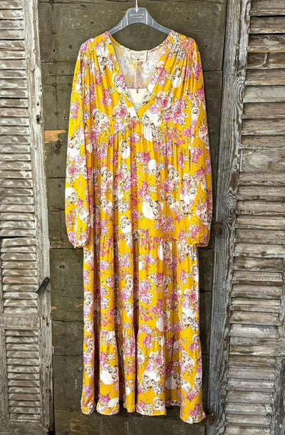 ❥ Mål på størrelse: S/M - Mål over bryst: 53 cm - Mål i bund: 146 cm - Længde front: 137 cm - Længde Bag: 145 cm - Ærme udvendig: 71 cm - Ærme indvendig: 49 cm