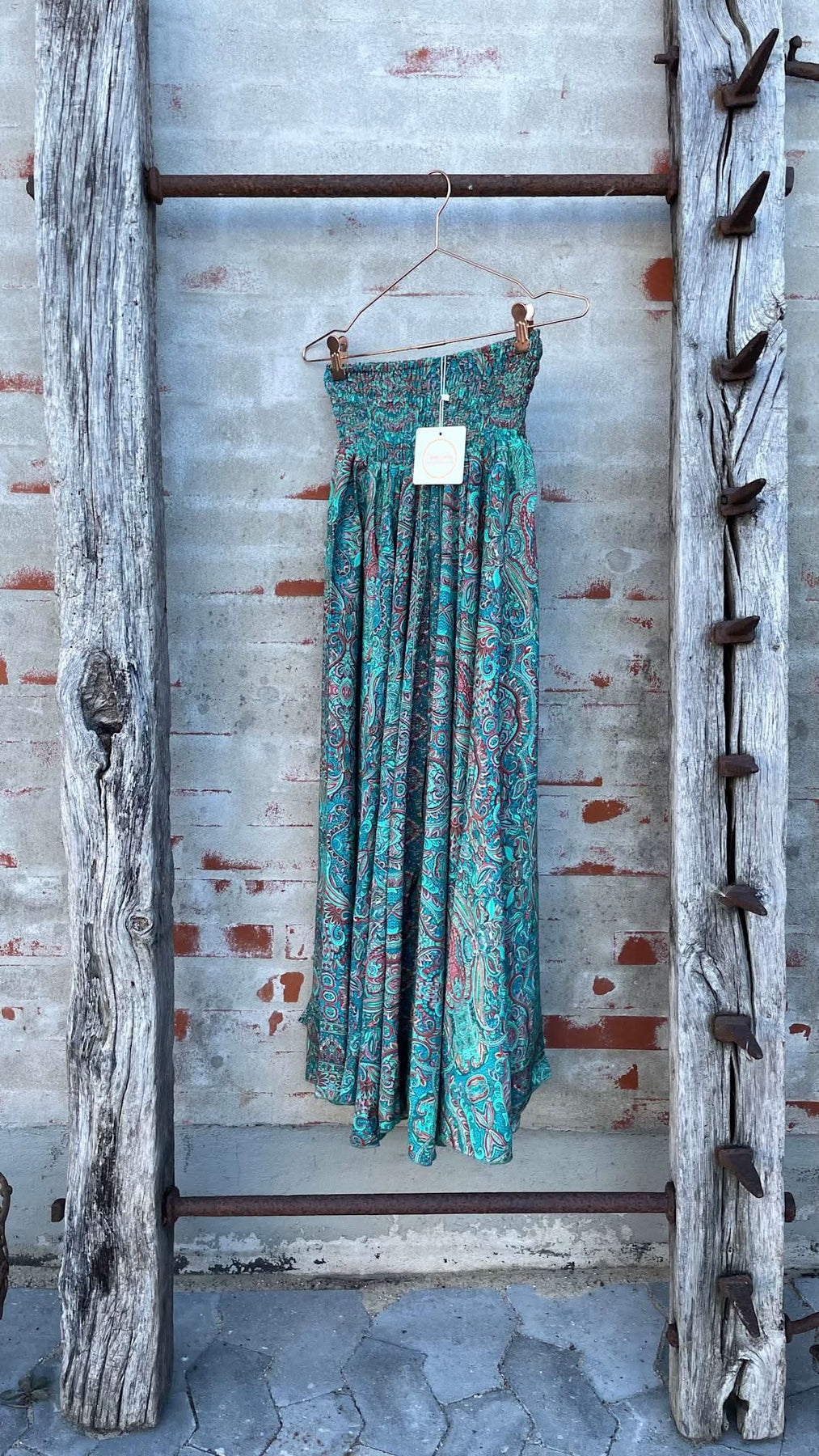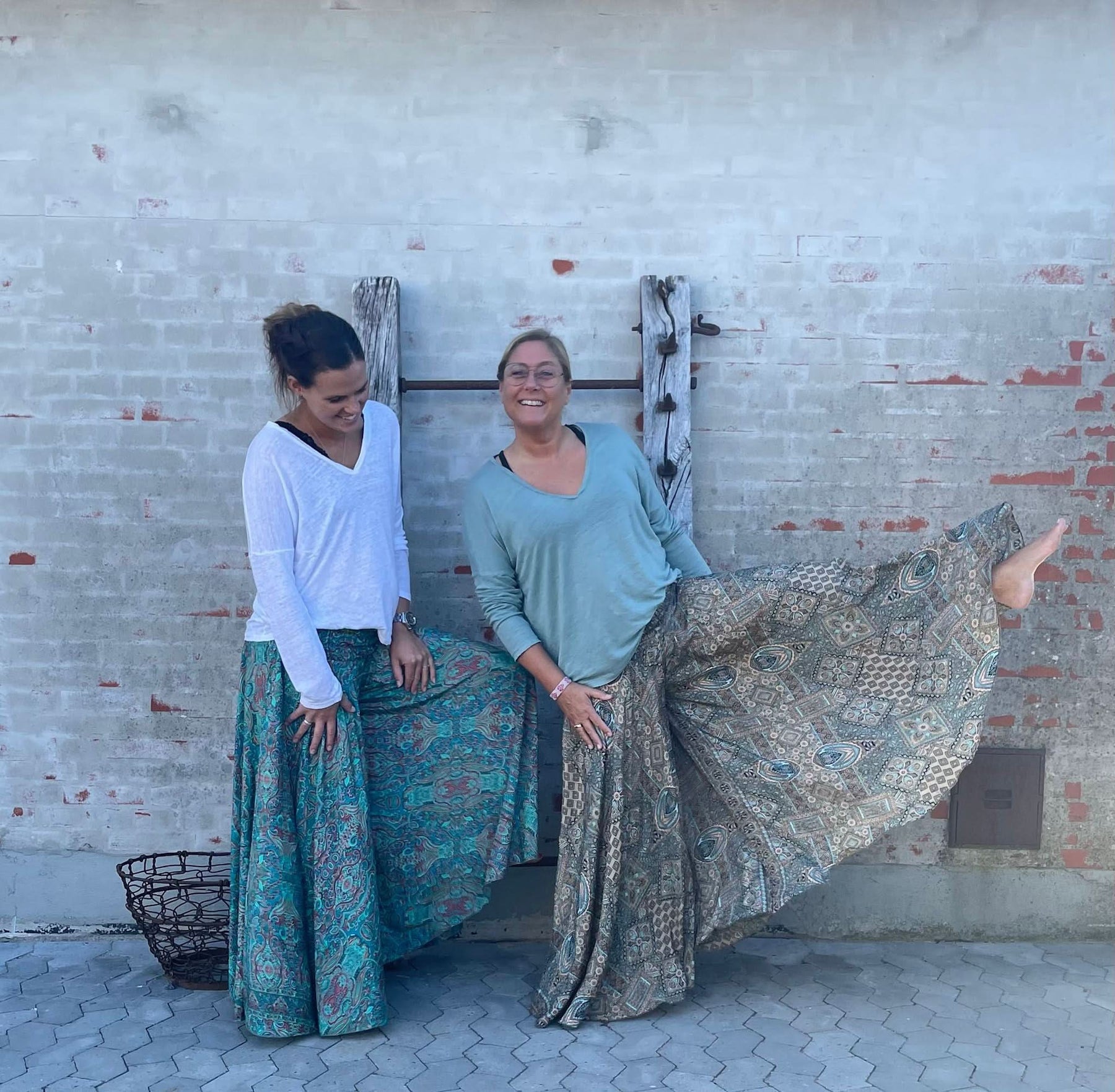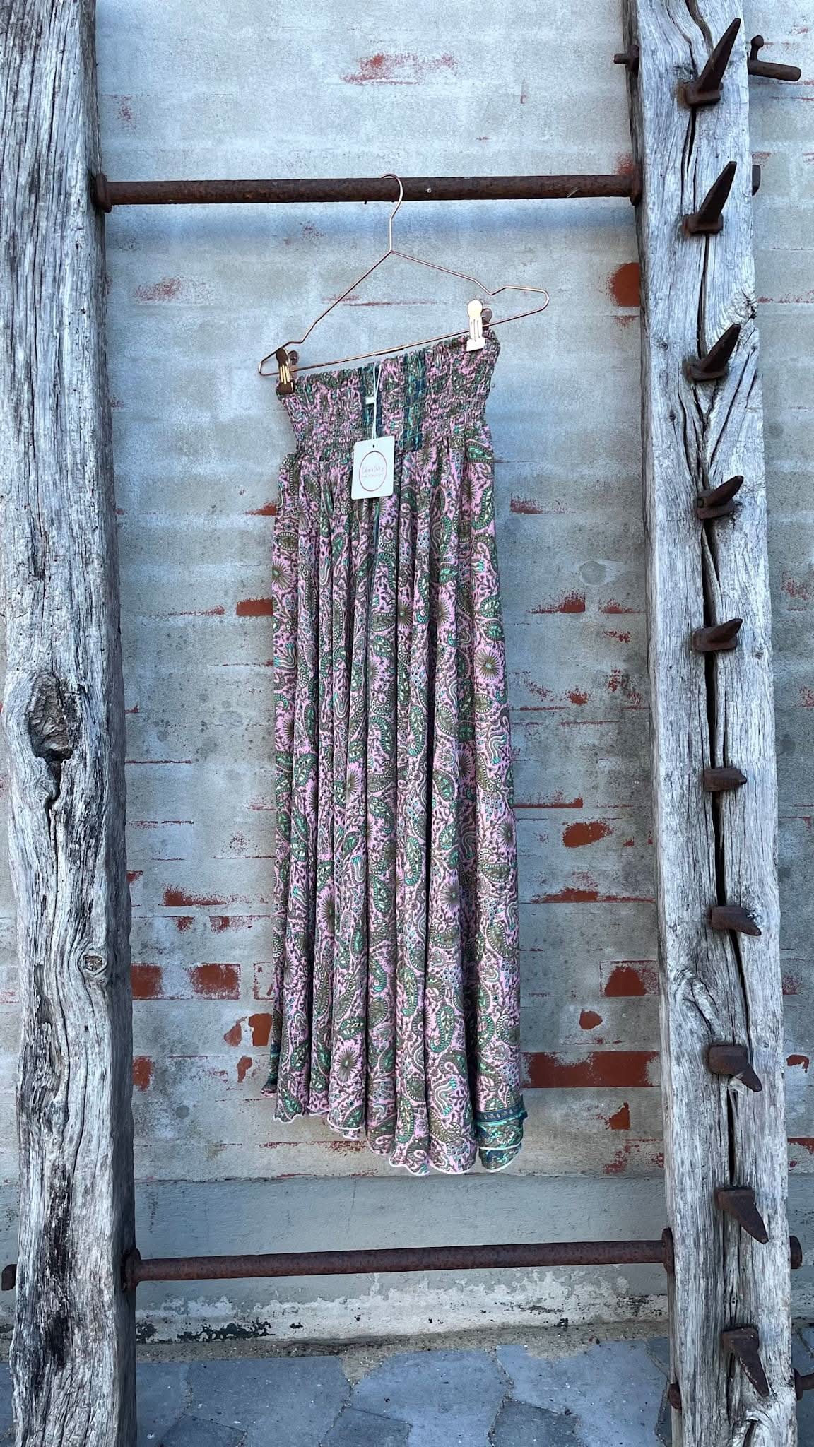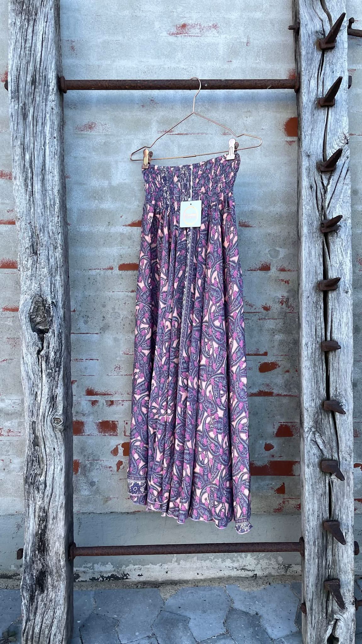 Long pants skirt in printed silk and viscose.