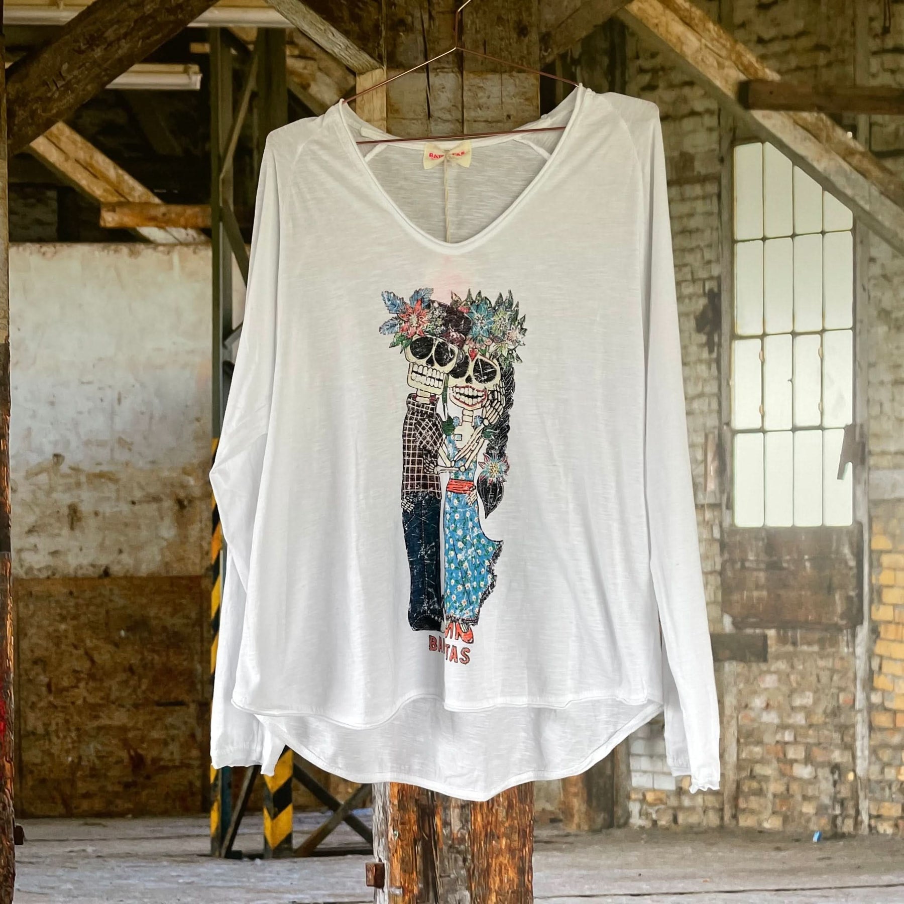 ❥ Mål på størrelse: Onesize - Mål over bryst: 55 cm - Målover bryst udstrakt: 64 cm - Mål i bund: 63 cm - Længde front: 65 cm - Længde Bag: 77 cm - Ærme udvendig: 73 cm - Ærme indvendig: 51 cm