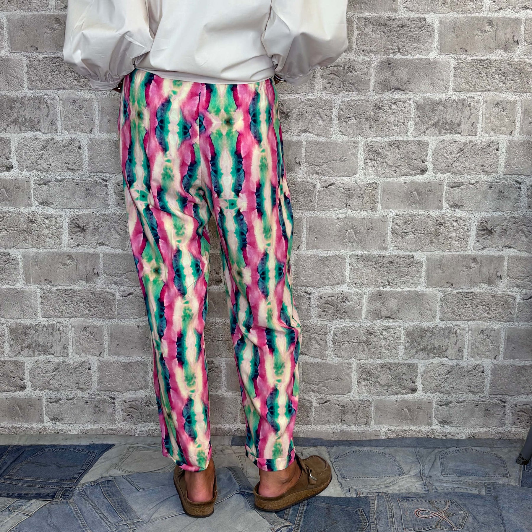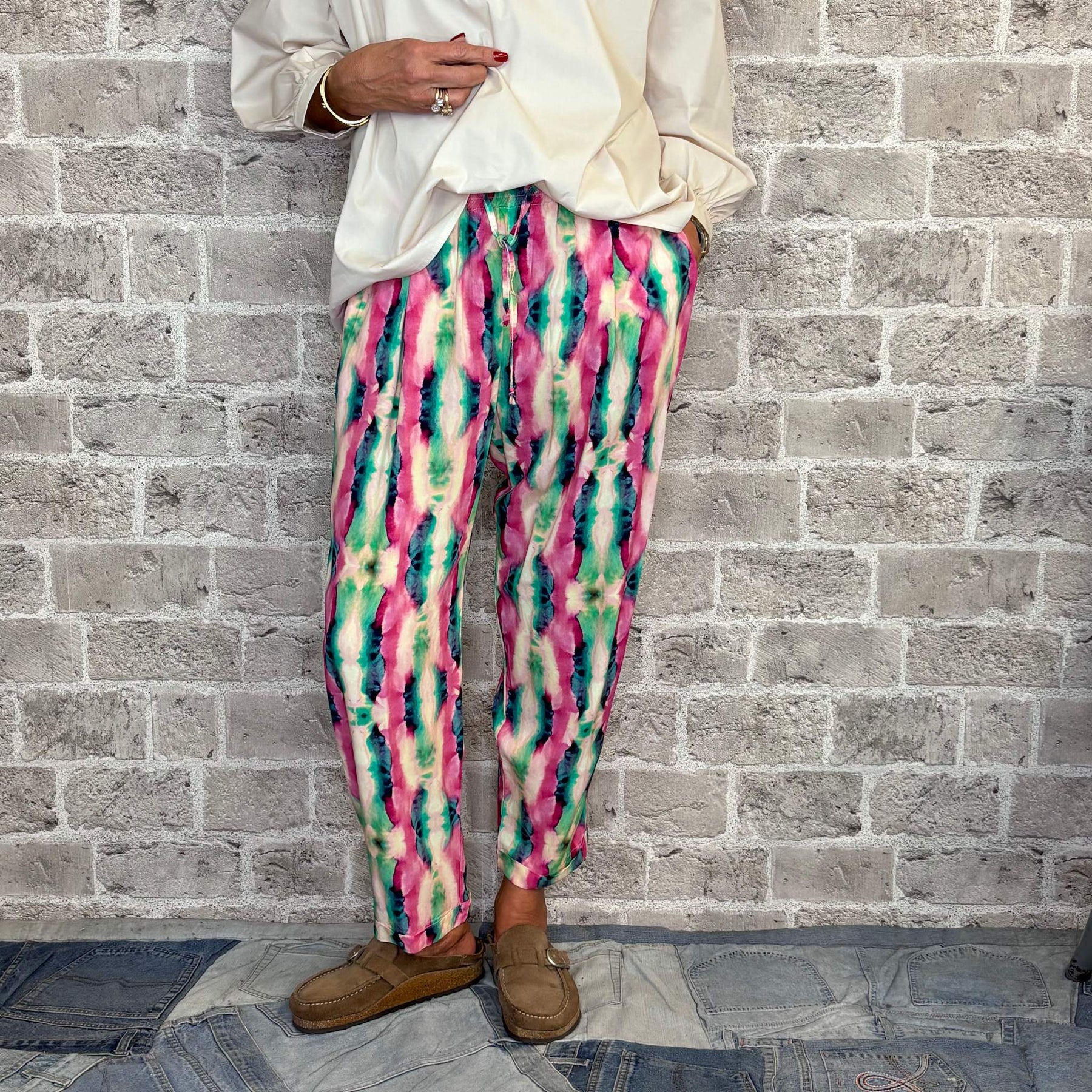Viskose bukser med batik print.