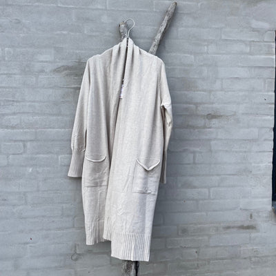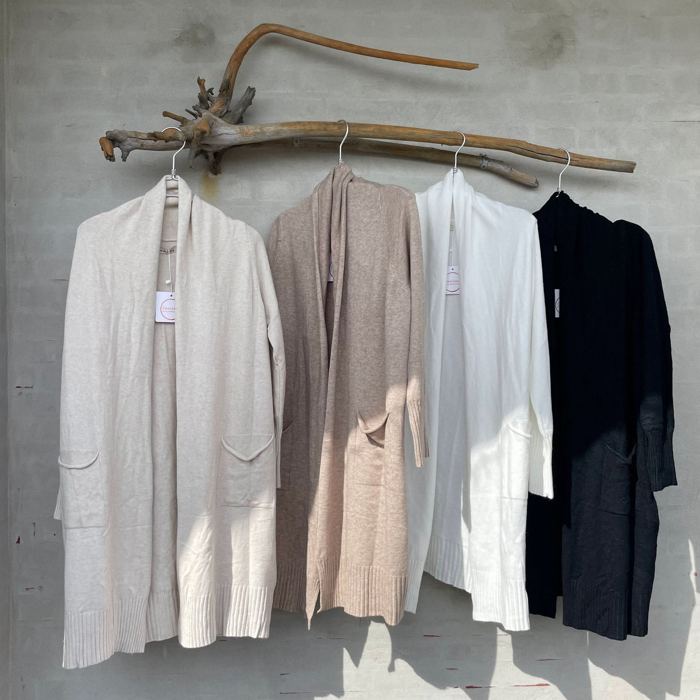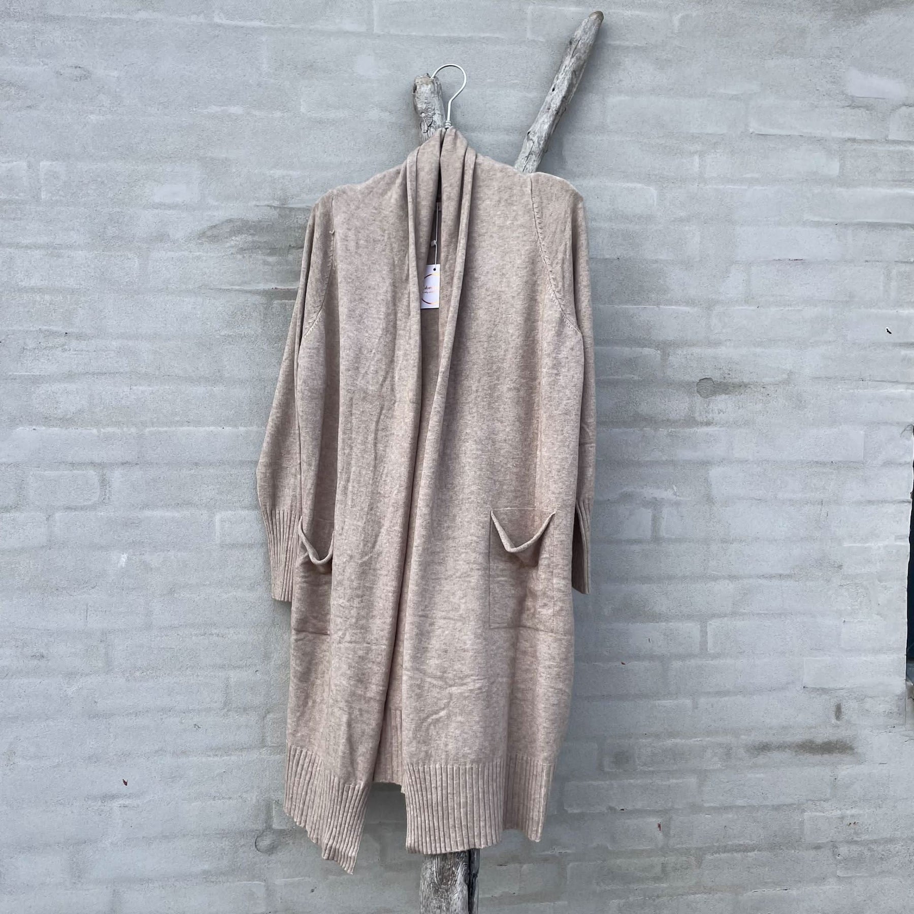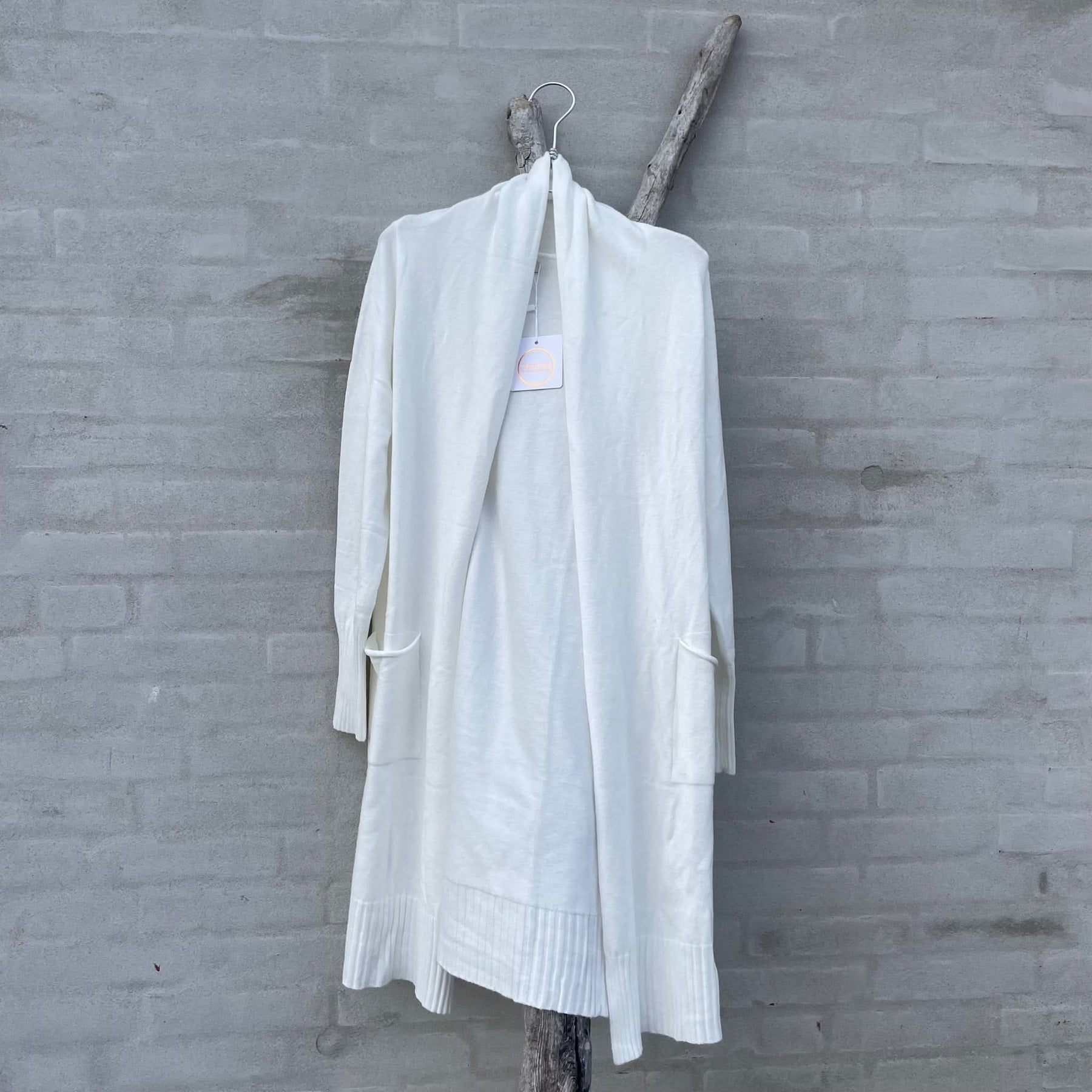 ❥ Mål på størrelse: Onesize - Mål over bryst: 55 cm - Mål i bund: 57 cm - Længde front: 91 cm - Længde Bag: 91 cm - Ærme udvendig: 69 cm - Ærme indvendig: 46 cm
