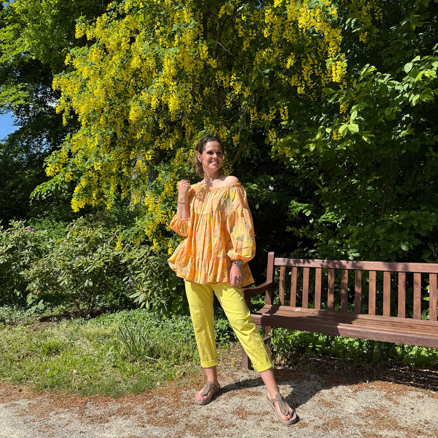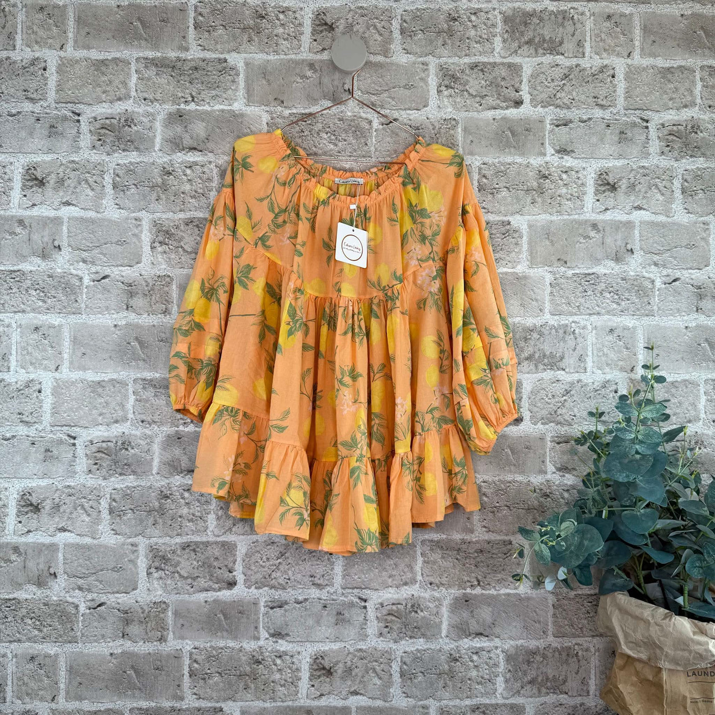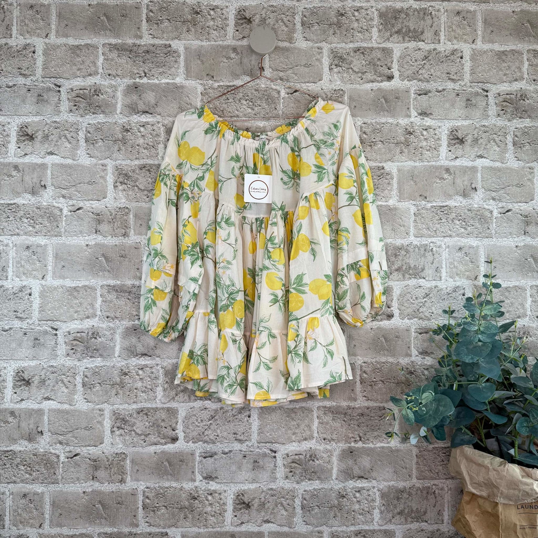 ❥ Mål på størrelse: Onesize - Mål over bryst: 87 cm - Målover bryst udstrakt: 93 cm - Mål i bund: 145 cm - Længde front: 73 cm - Længde Bag: 78 cm - Ærme udvendig: 55 cm - Ærme indvendig: 26 cm