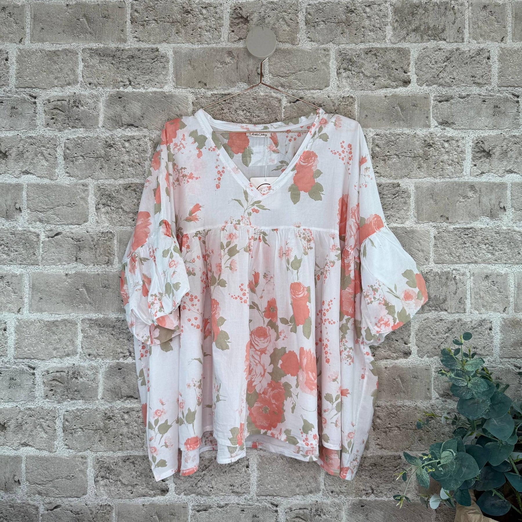 ❥ Mål på størrelse: Onesize - Mål over bryst: 76 cm - Målover bryst udstrakt: 79 cm - Mål i bund: 127 cm - Længde front: 72 cm - Længde Bag: 76 cm - Ærme udvendig: 45 cm - Ærme indvendig: 17 cm