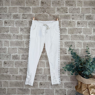❥ Mål på størrelse: S/M - Linning: 36 cm - Linning udstrakt: 48 cm - Hofte: 53 cm - Benlængde udvendig: 92 cm - Benlængde indvendig: 65 cm