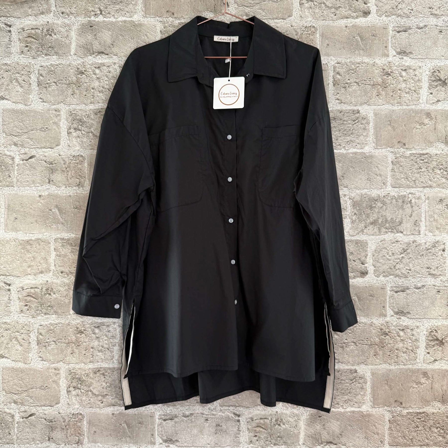 ❥ Mål på størrelse: Onesize - Mål over bryst: 79 cm - Mål i bund: 78 cm - Længde front: 74 cm - Længde Bag: 83 cm - Ærme udvendig: 71 cm - Ærme indvendig: 40 cm