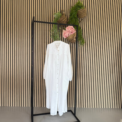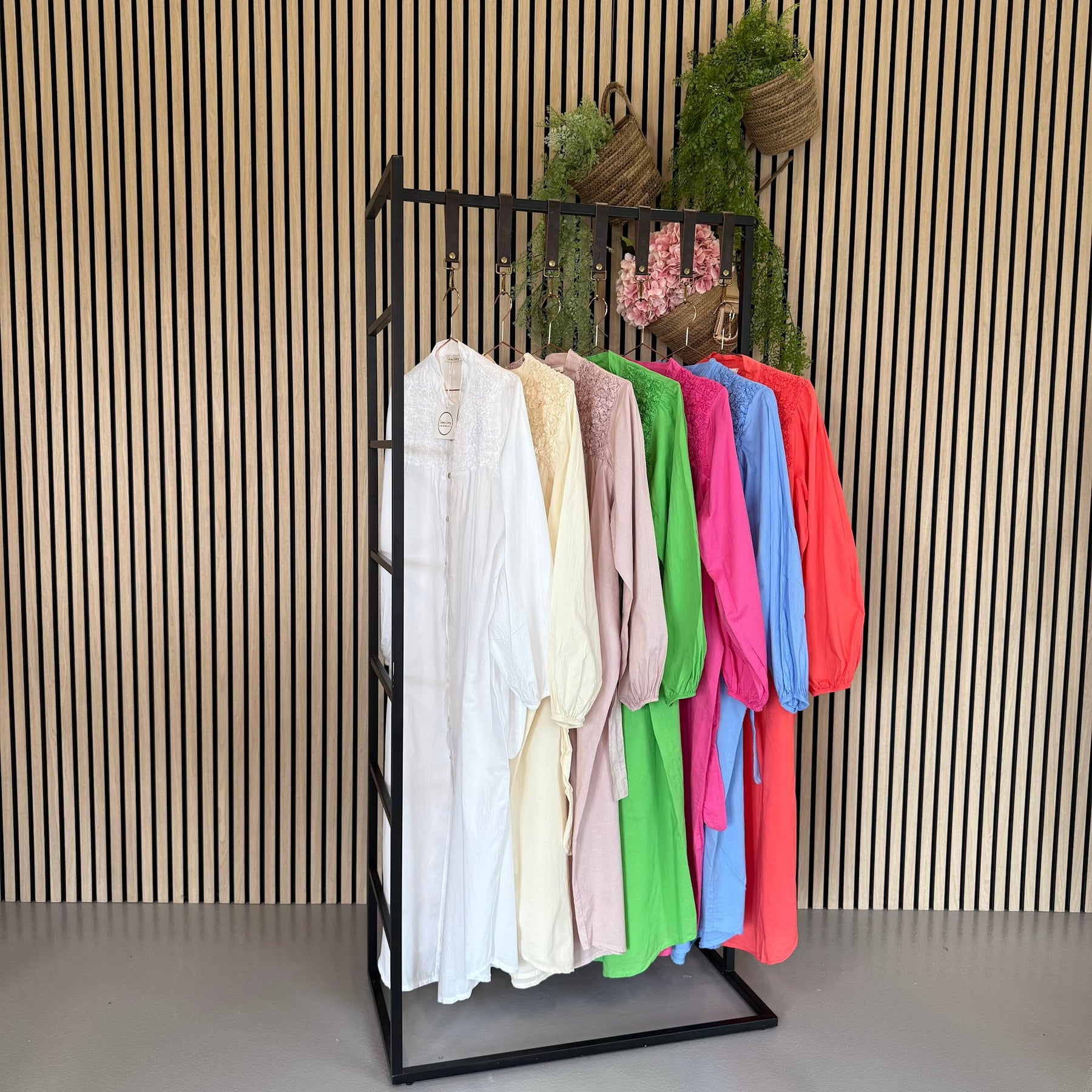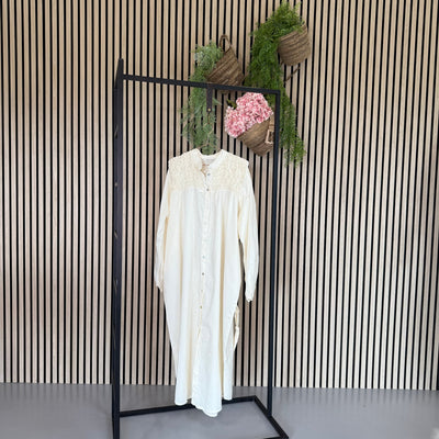 ❥ Mål på størrelse: Onesize - Mål over bryst: 70 cm - Mål i bund: 85 cm - Længde front: 130 cm - Længde Bag: 130 cm - Ærme udvendig: 65 cm - Ærme indvendig: 47 cm