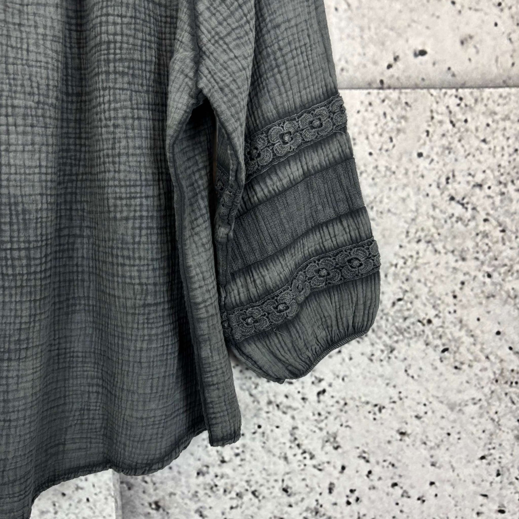 ❥ Mål på størrelse: Onesize - Mål over bryst: 60 cm - Mål over bryst udstrakt: 63 cm - Mål i bund: 62 cm - Længde front: 70 cm - Længde Bag: 70 cm - Ærme udvendig: 60 cm - Ærme indvendig: 36 cm