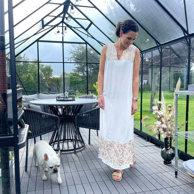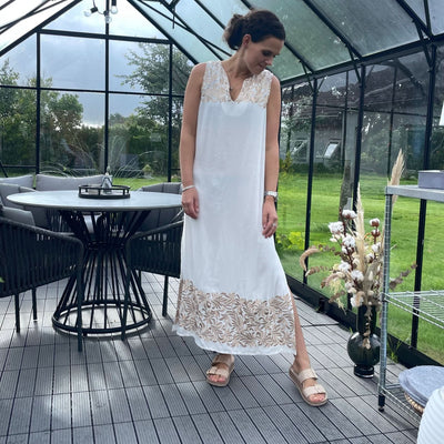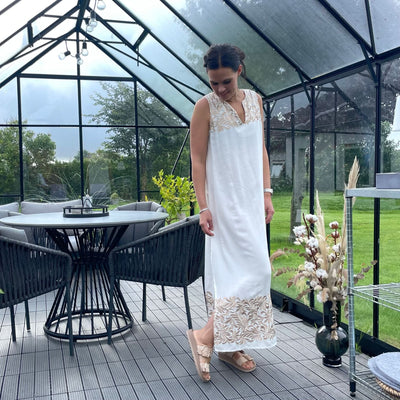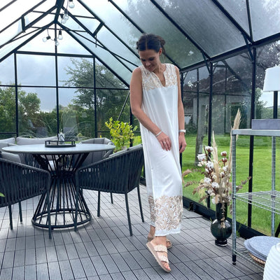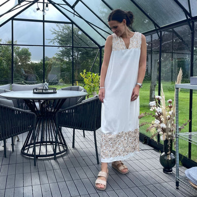 ❥ Mål på størrelse: Onesize - Mål over bryst: 75 cm - Mål i bund: 70 cm - Længde front: 136 cm - Længde Bag: 138 cm