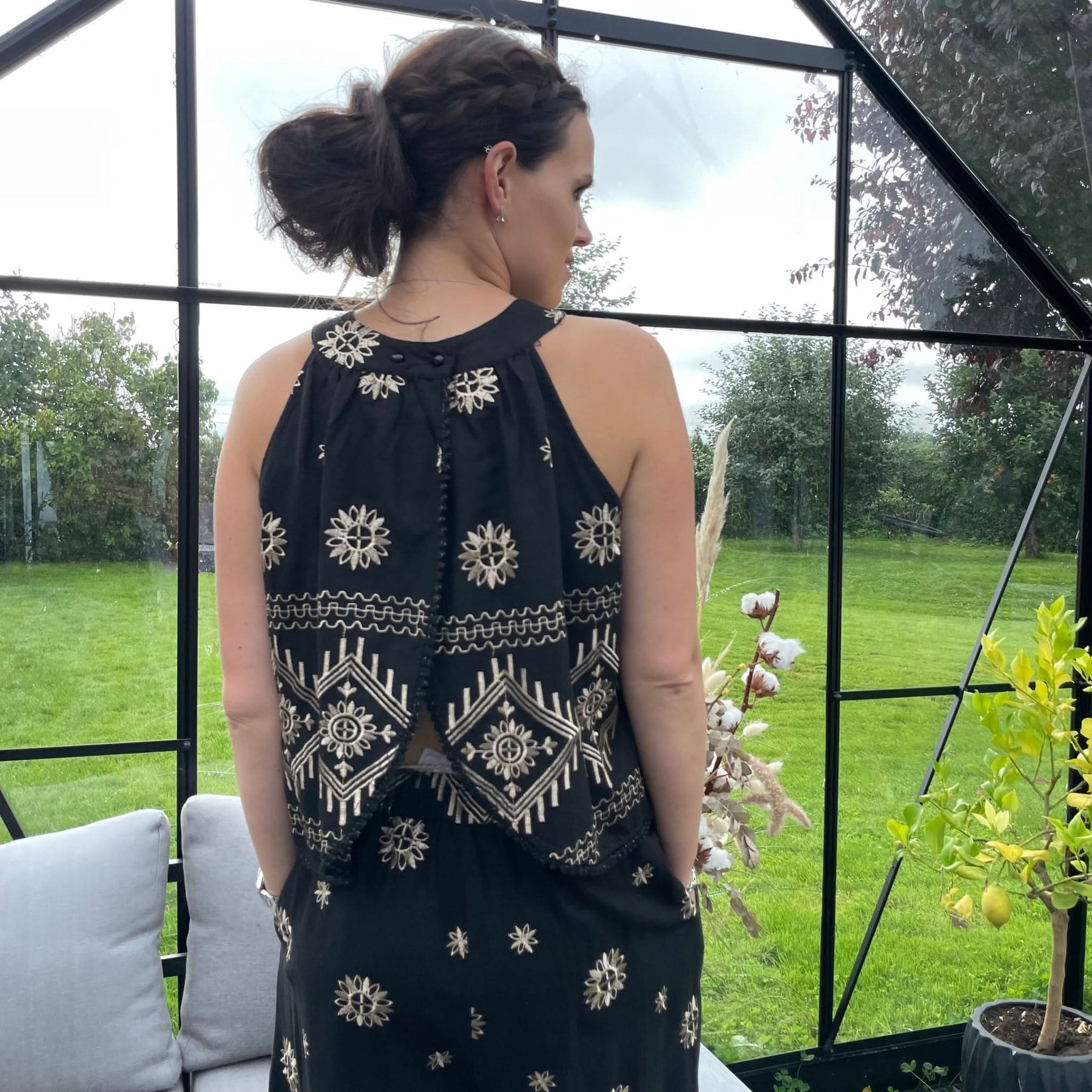 ❥ Mål på størrelse: S/M - Mål over bryst: 54 cm - Længde front: 51 cm - Længde Bag (Åben ryg): 51 cm