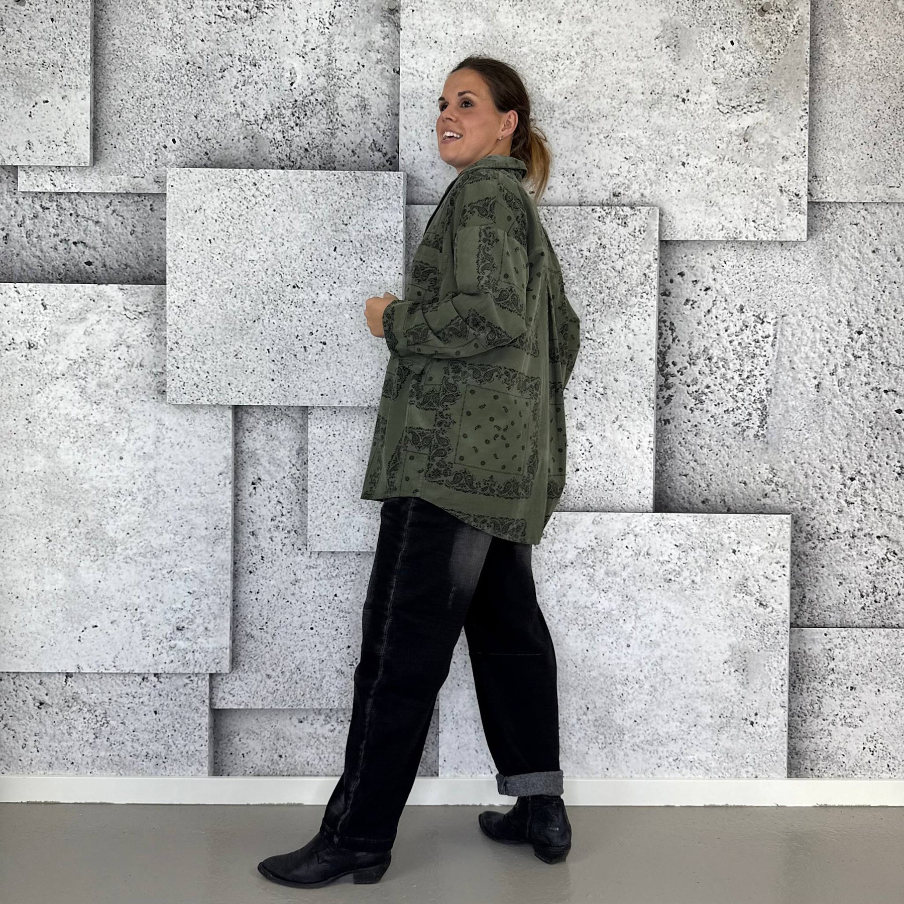 ❥ Mål på størrelse: Onesize - Mål over bryst: 66 cm - Mål i bund: 66 cm - Længde front: 71 cm - Længde Bag: 81 cm - Ærme udvendig: 46 cm - Ærme indvendig: 36 cm