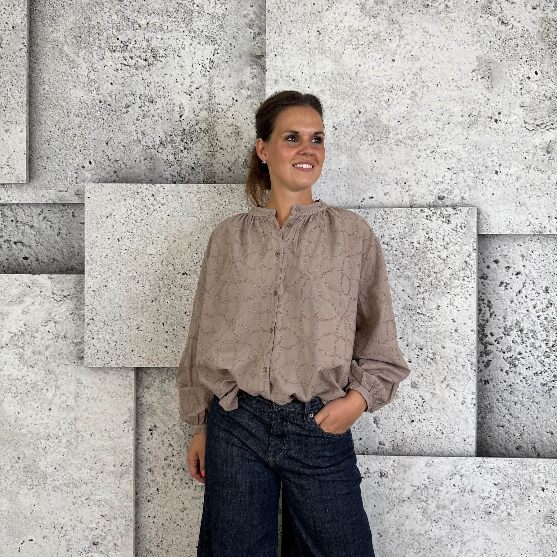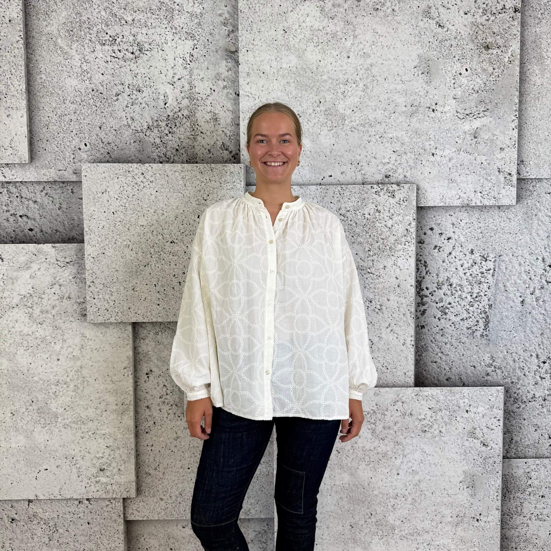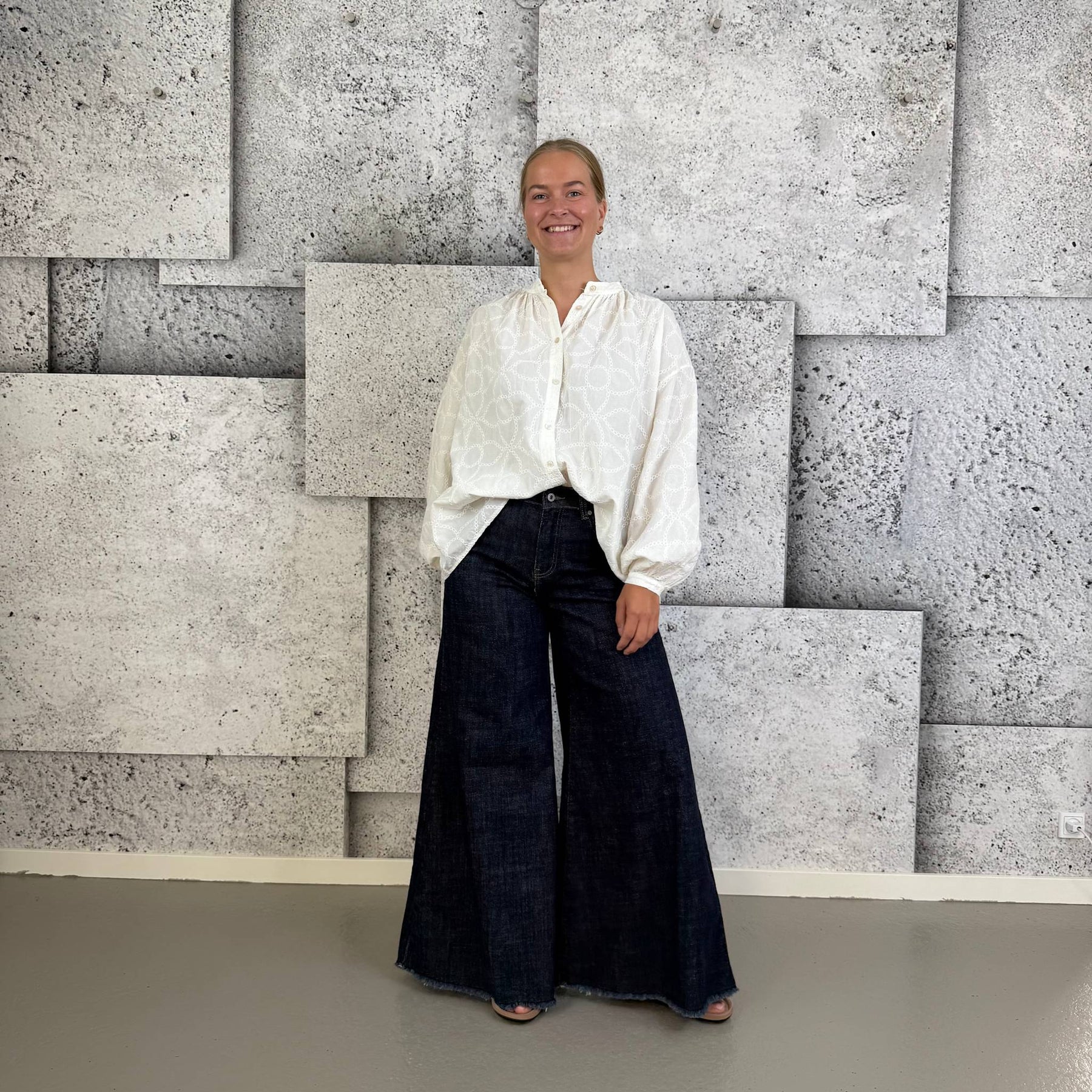 ❥ Mål på størrelse: Onesize - Mål over bryst: 64 cm - Mål i bund: 72 cm - Længde front: 62 cm - Længde Bag: 67 cm - Ærme udvendig: 47 cm - Ærme indvendig: 40 cm