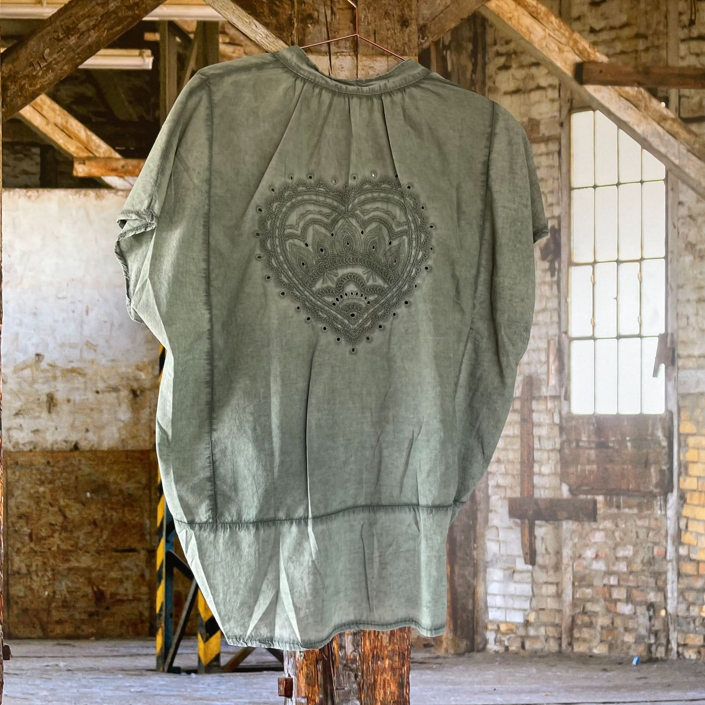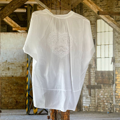 ❥ Mål på størrelse: Onesize - Mål over bryst: 64 cm - Mål i bund: 48 cm - Længde front: 60 cm - Længde Bag: 75 cm - Ærme udvendig: 30 cm - Ærme indvendig: 15 cm