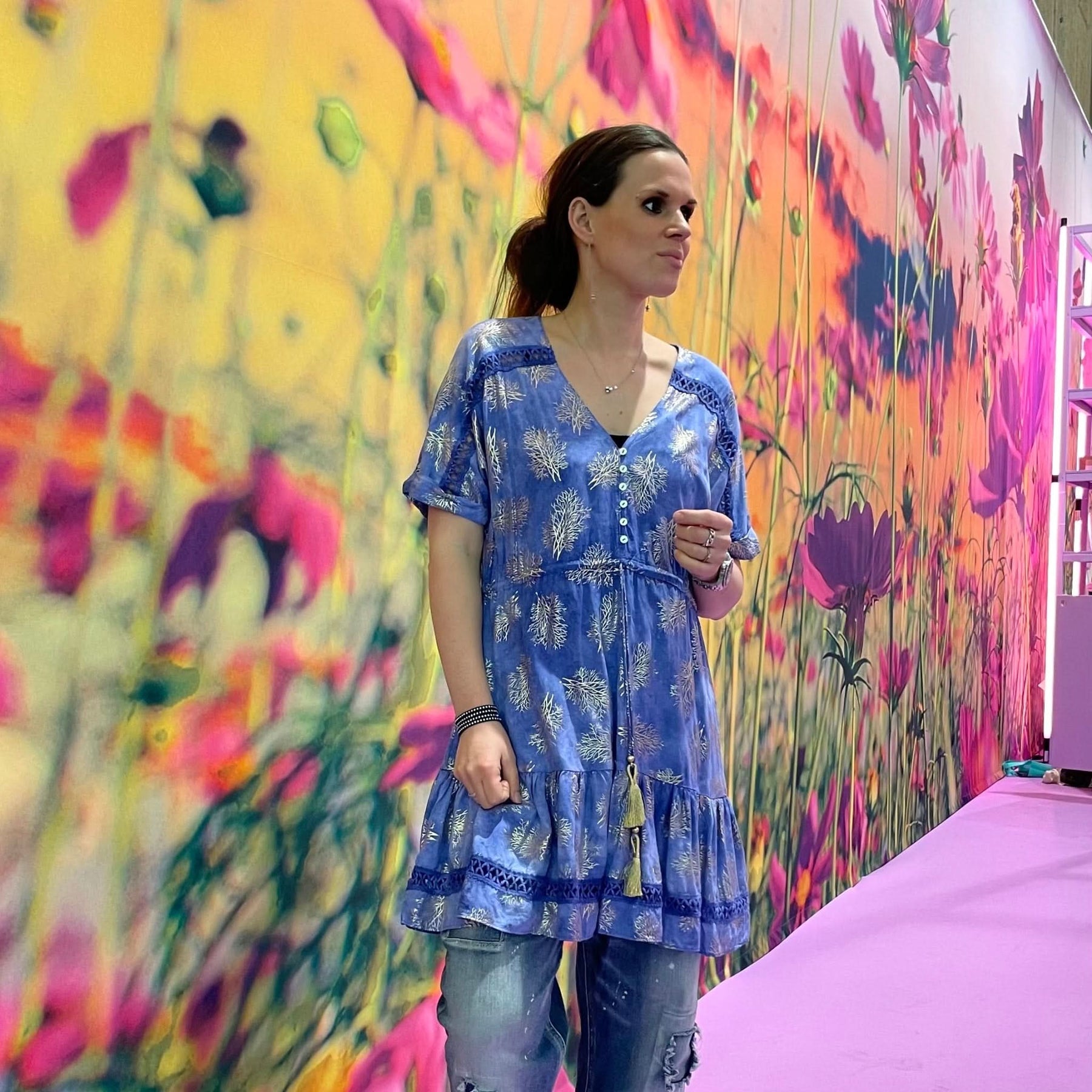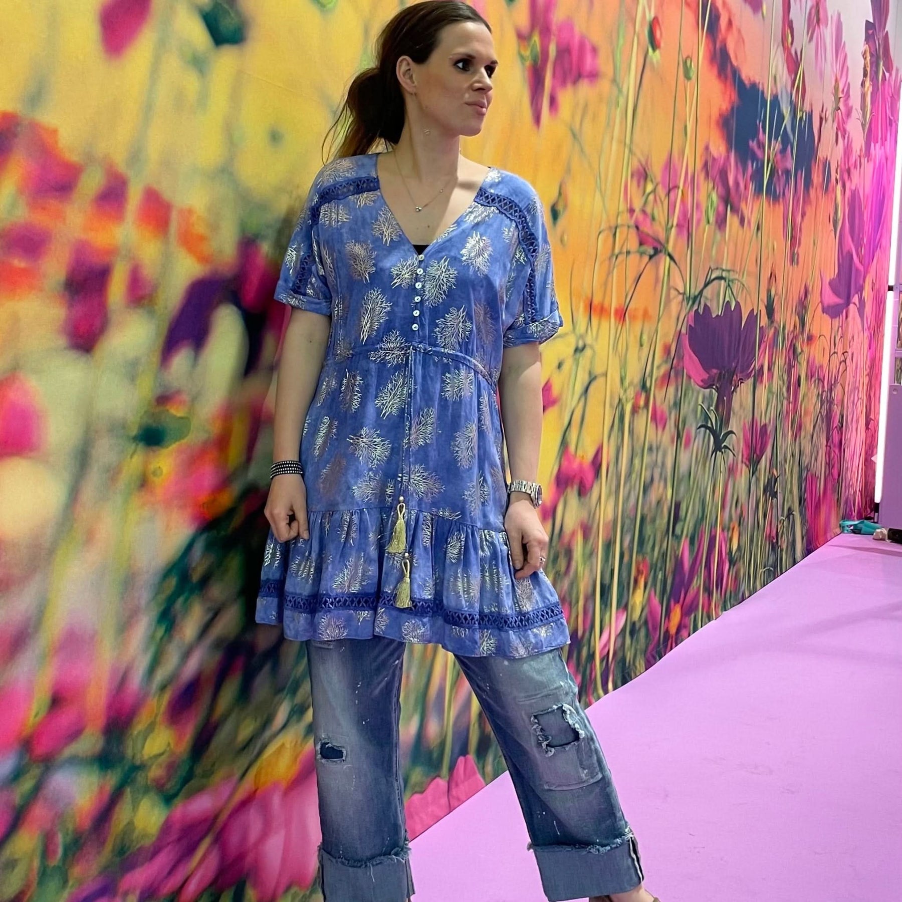 ❥ Mål på størrelse: M/L - Mål over bryst: 59 cm - Mål i bund: 121 cm - Længde front: 92 cm - Længde Bag: 96 cm - Ærme udvendig: 36 cm - Ærme indvendig: 10 cm