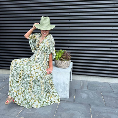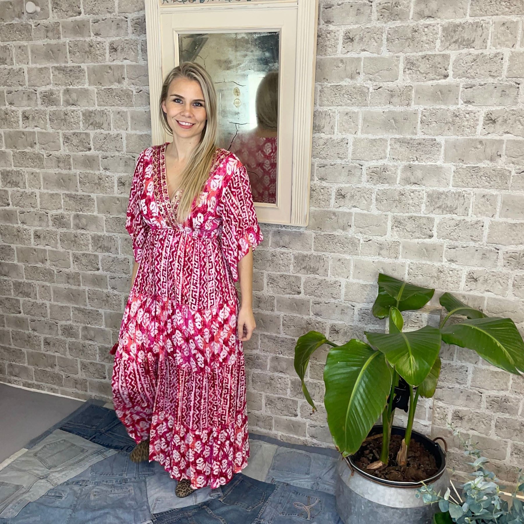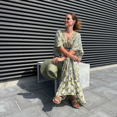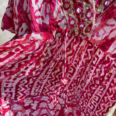 ❥ Mål på størrelse: Onesize - Mål over bryst: 48 cm - Mål i bund: 135 cm - Længde front: 130 cm - Længde Bag: 130 cm - Ærme udvendig: 36 cm - Ærme indvendig: 24 cm