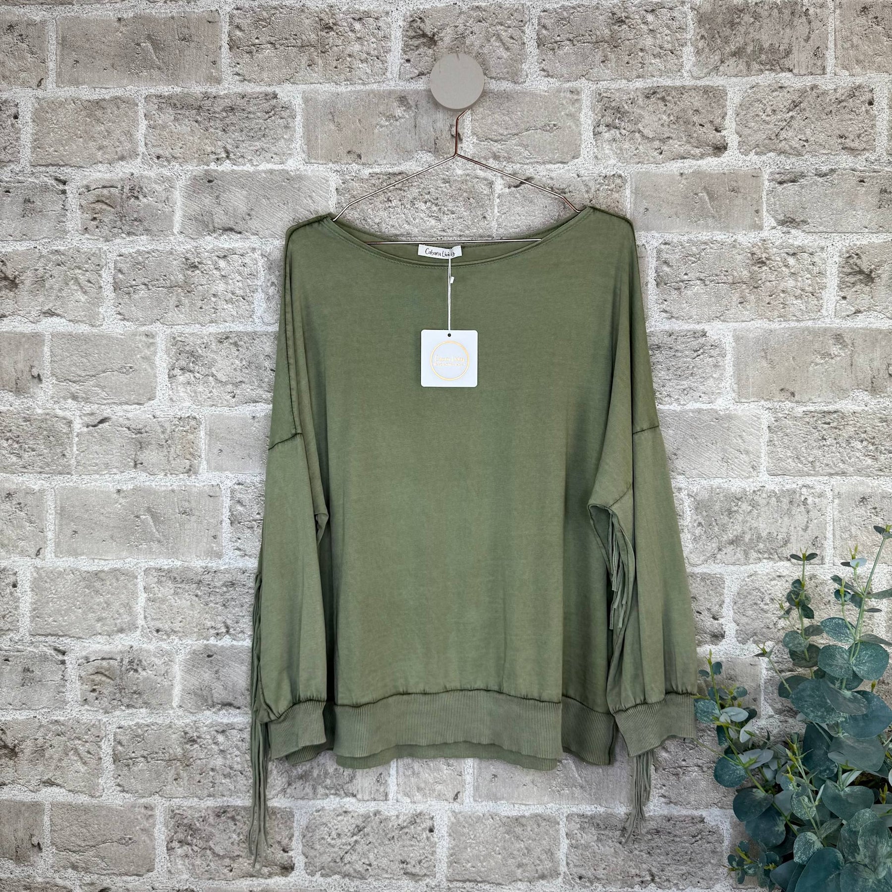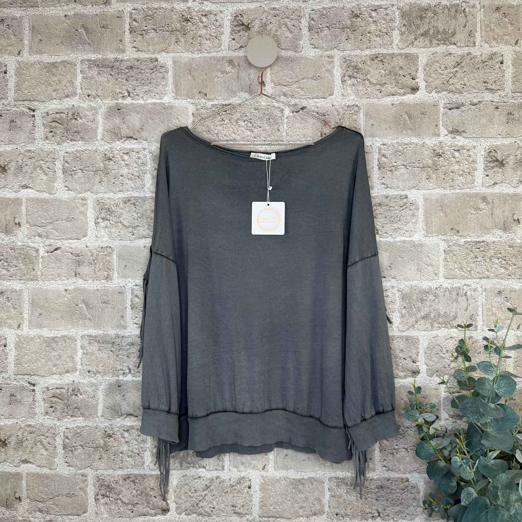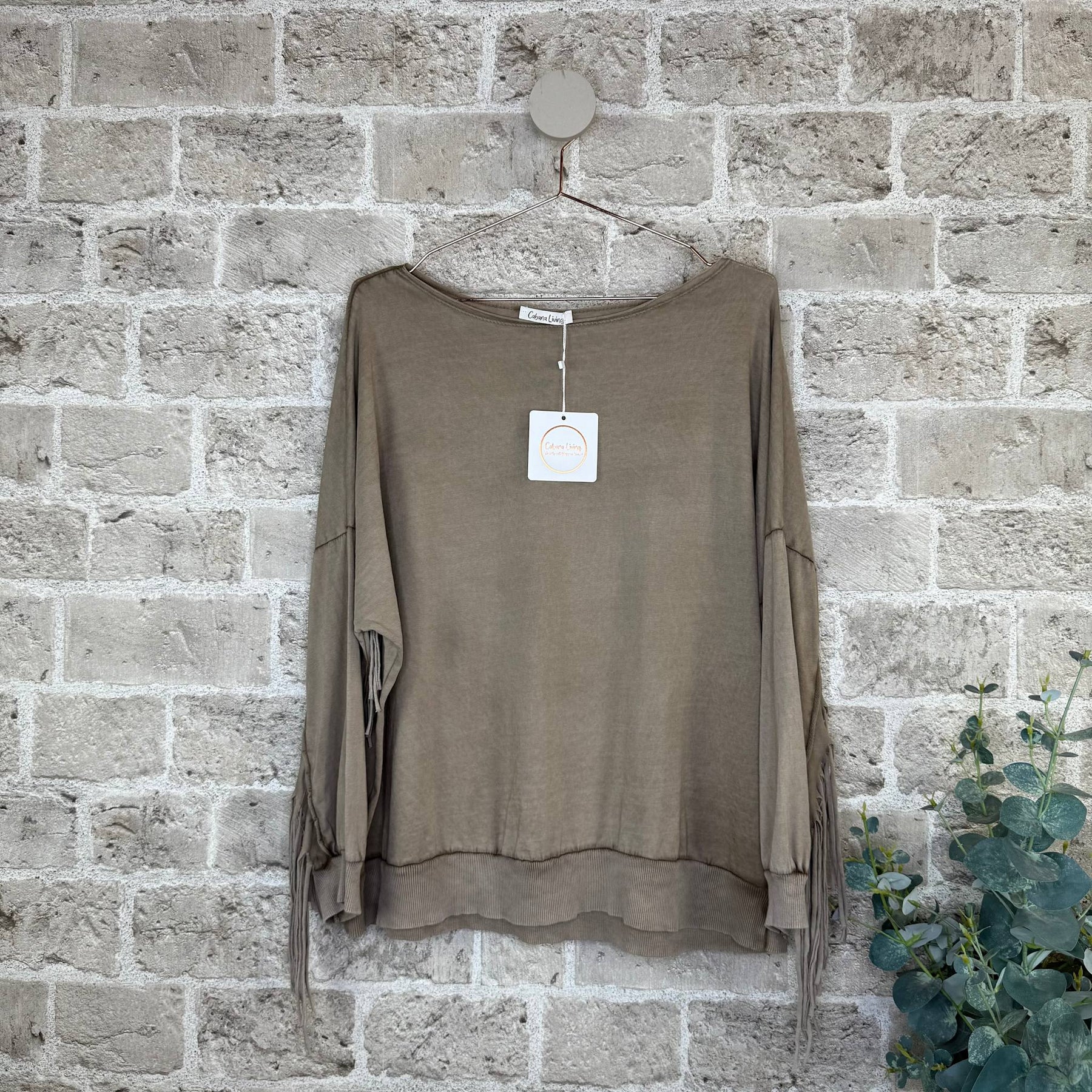 ❥ Mål på størrelse: Onesize - Mål over bryst: 72 cm - Mål over bryst udstrakt: 84 cm - Mål i bund: 60 cm - Længde front: 66 cm - Længde Bag: 66 cm - Ærme udvendig: 62 cm - Ærme indvendig: 32 cm