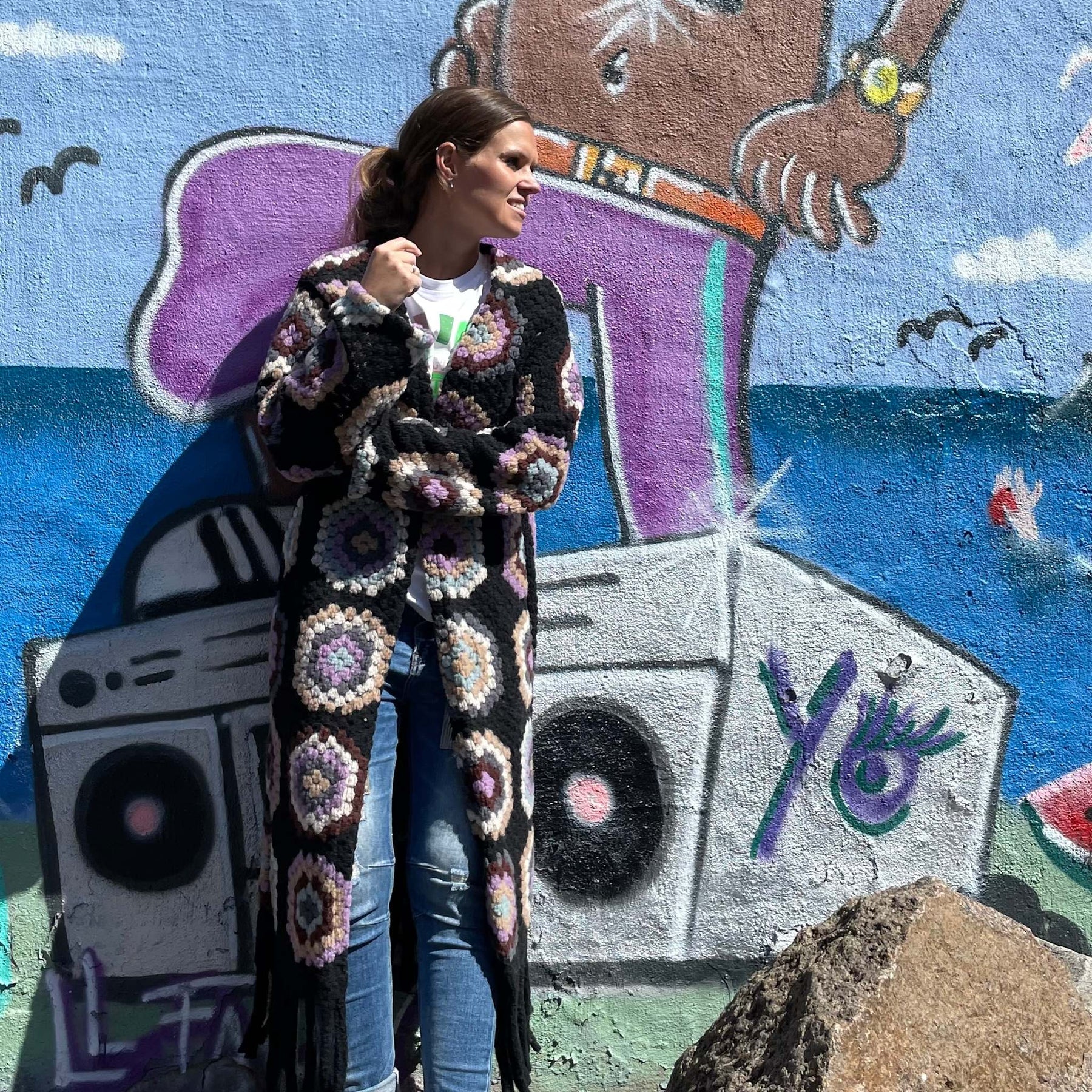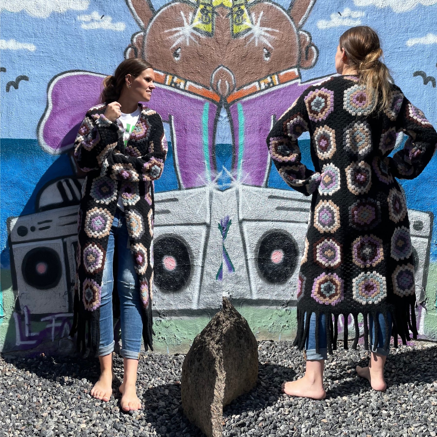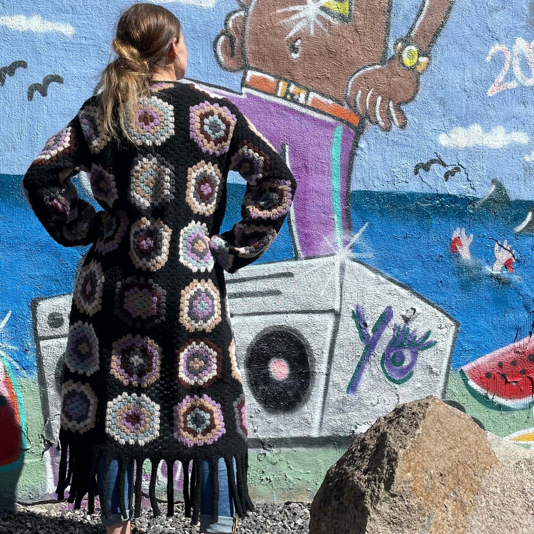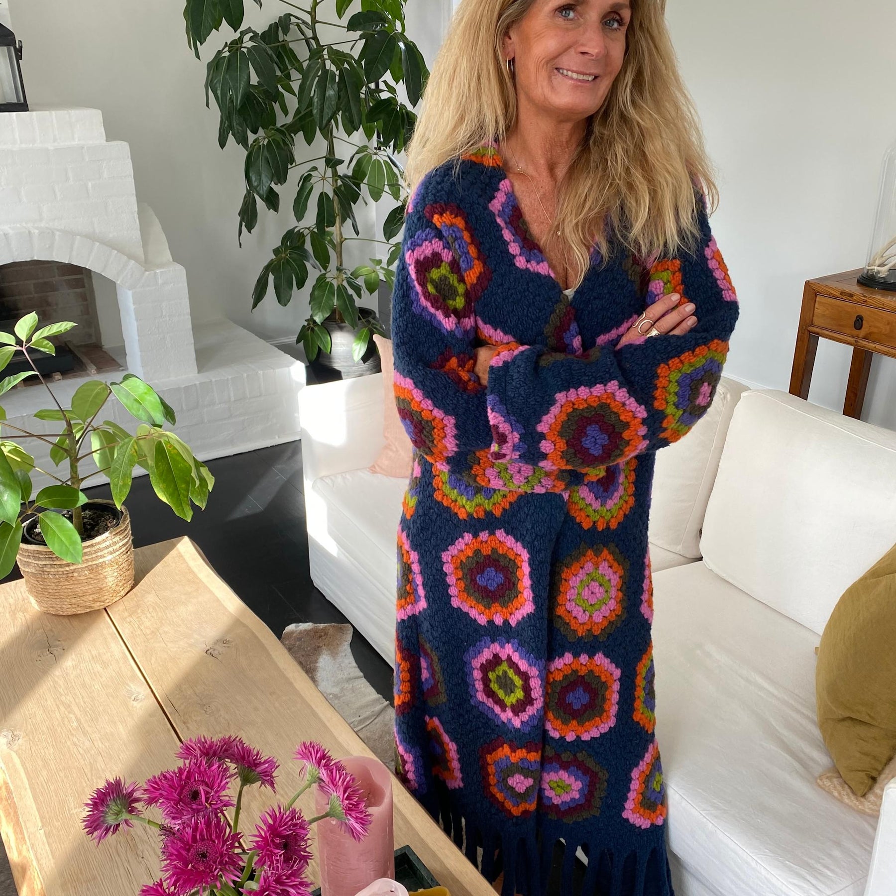 ❥ Mål på størrelse: M/L - Mål over bryst: 50 cm - Mål over bryst udstrakt: 50 cm - Mål i bund: 70 cm - Længde front: 114/131 (fryns) cm - Længde Bag: 114/131 (fryns cm - Ærme udvendig: 83 cm - Ærme indvendig: 52 cm