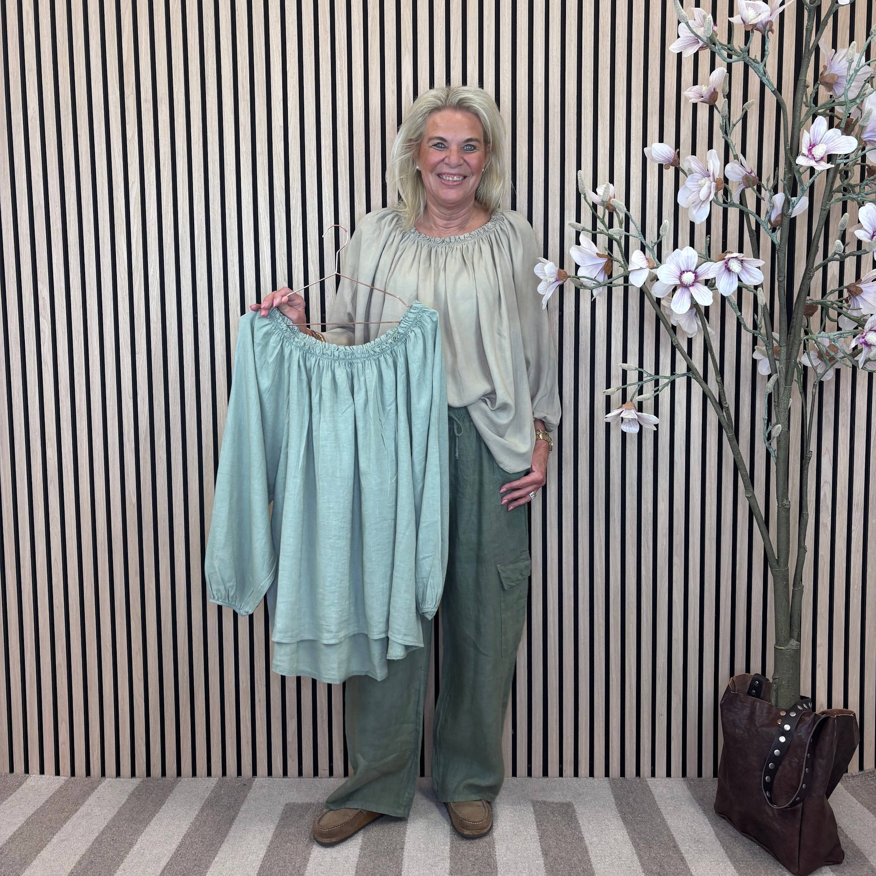 ❥ Mål på størrelse: Onesize - Mål over bryst: 84 cm - Mål i bund: 87 cm - Længde front: 70 cm - Længde Bag: 79 cm - Ærme udvendig: 62 cm - Ærme indvendig: 40 cm