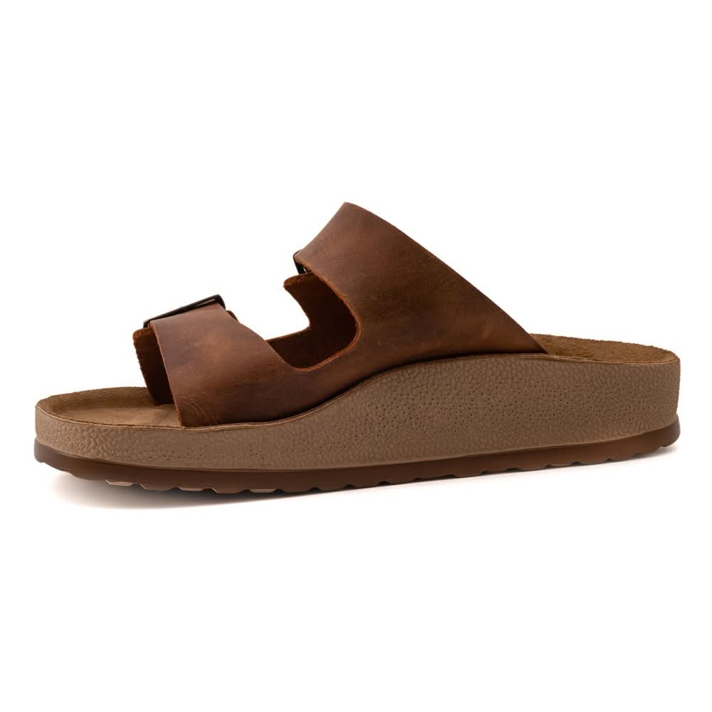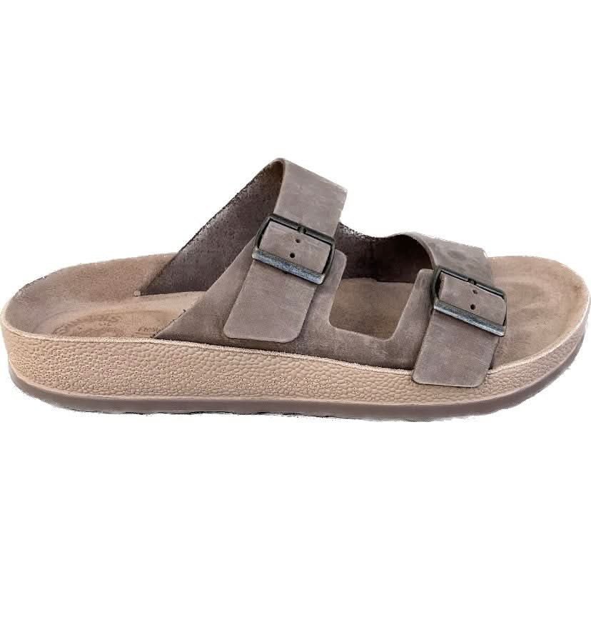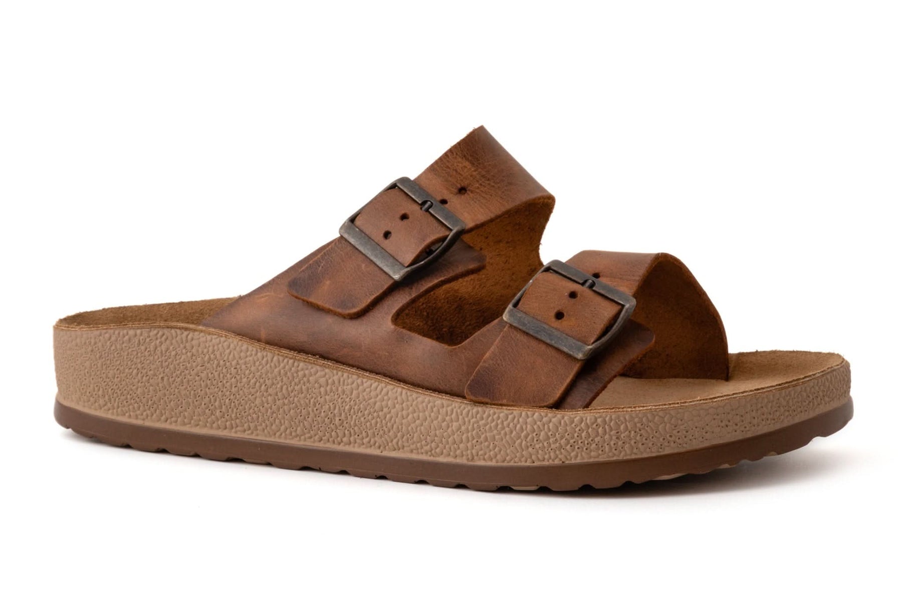 Sandalen er med 2 justerbar rem over foden, så den let kan tilpasses foden.