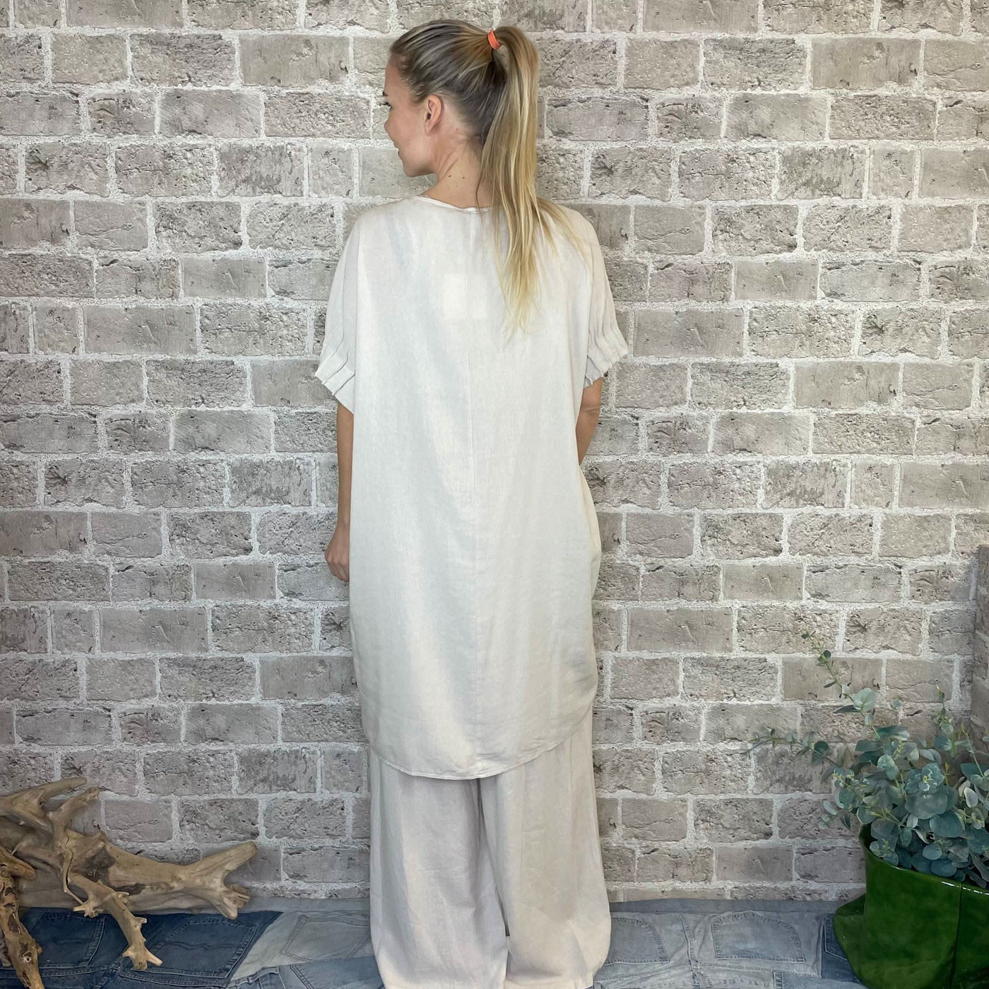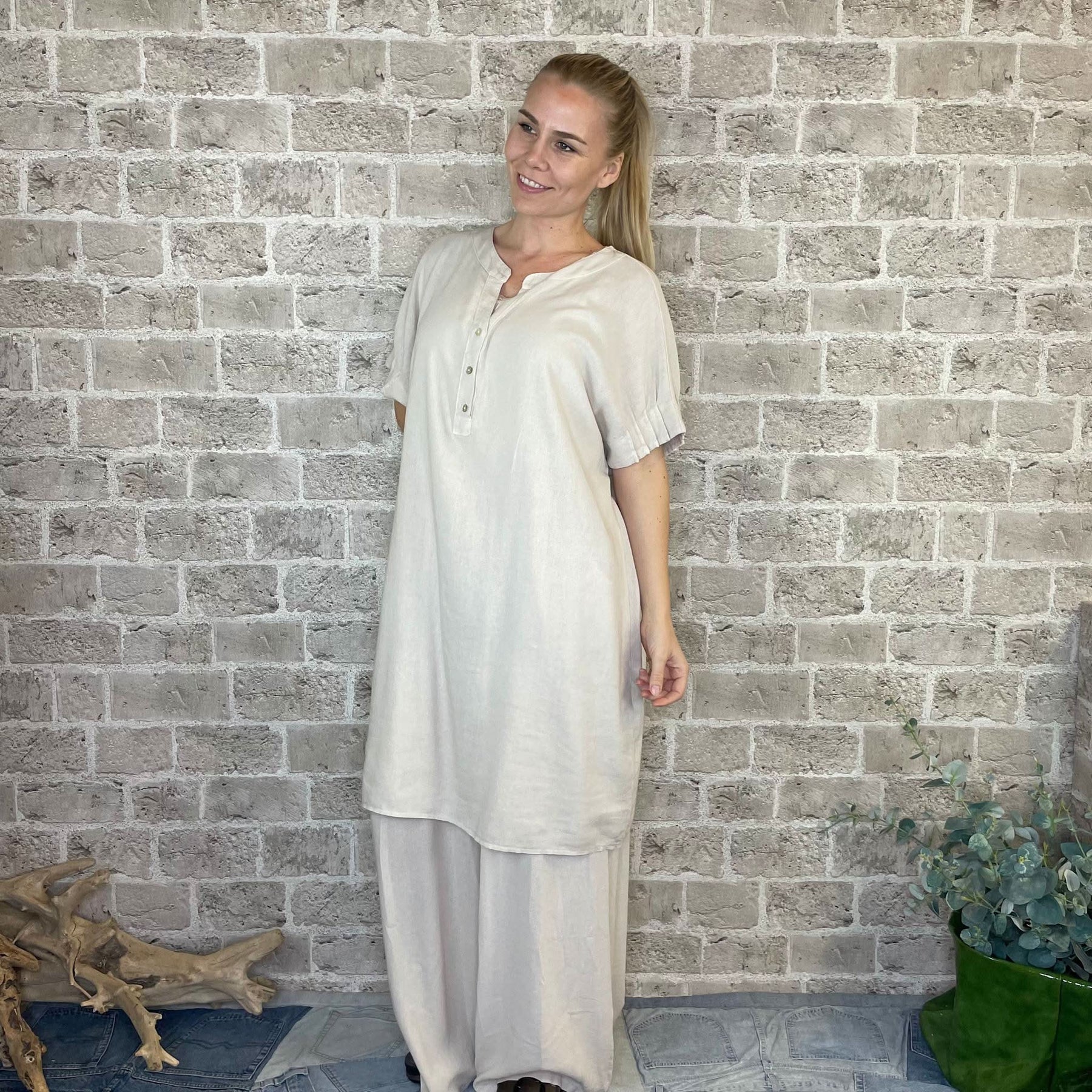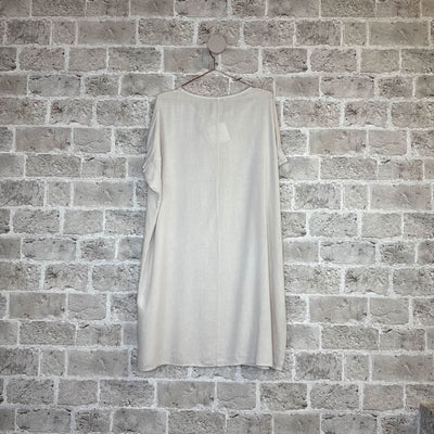 ❥ Mål på størrelse: Onesize - Mål over bryst: 69 cm - Mål i bund: 72 cm - Længde front: 98 cm - Længde Bag: 98 cm - Ærme udvendig: 30 cm