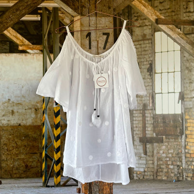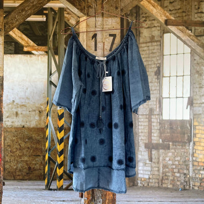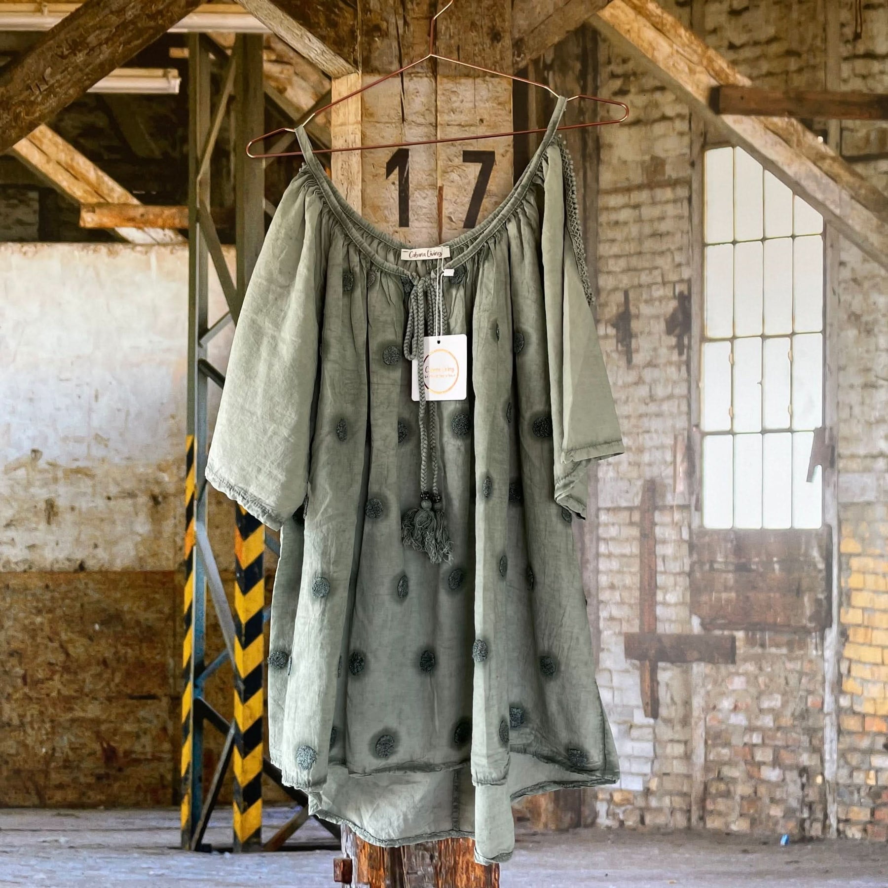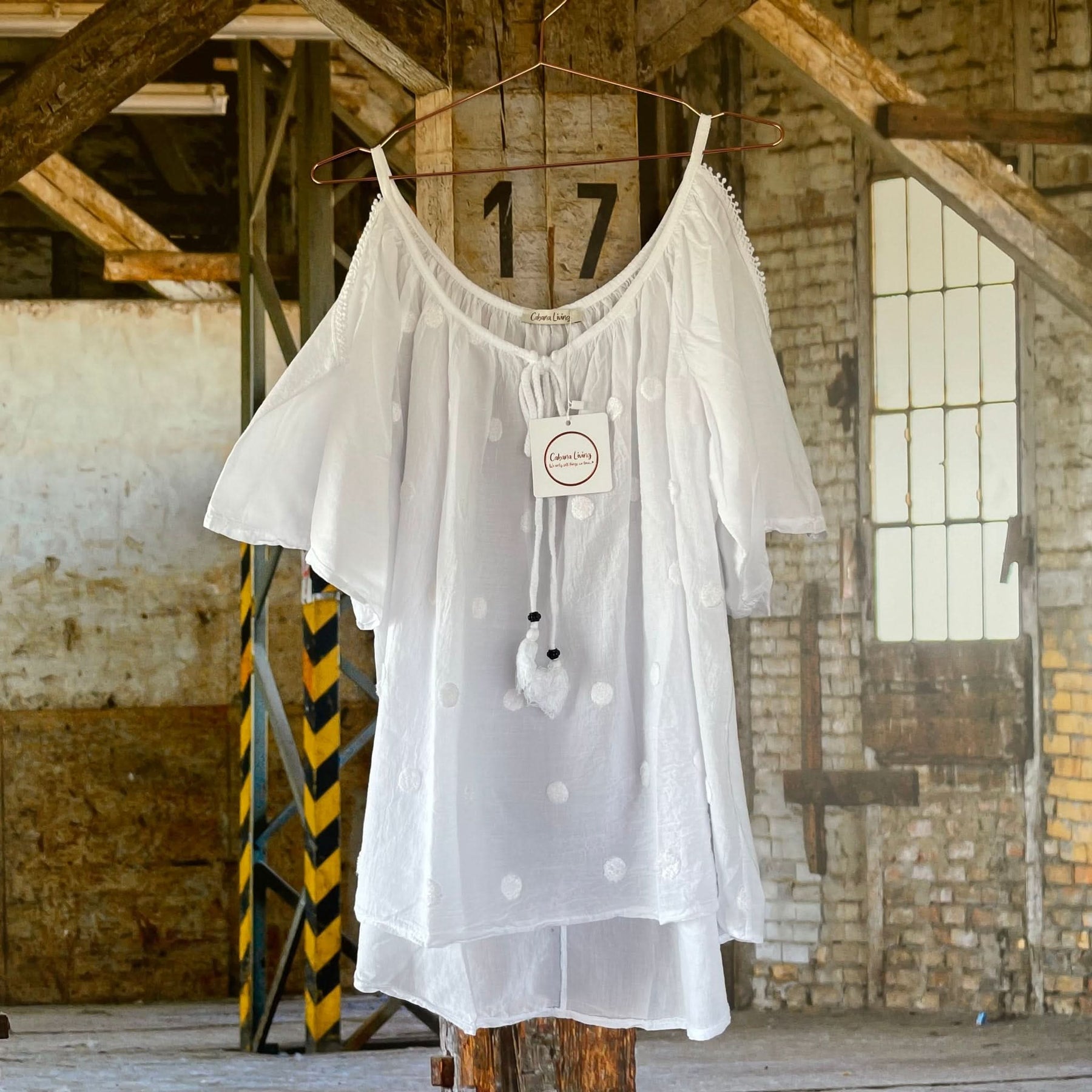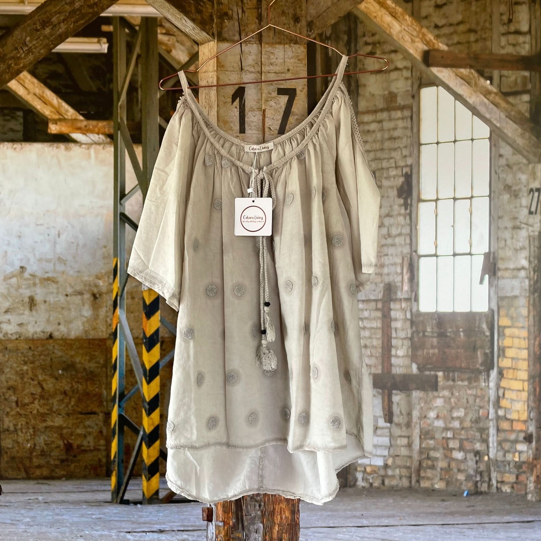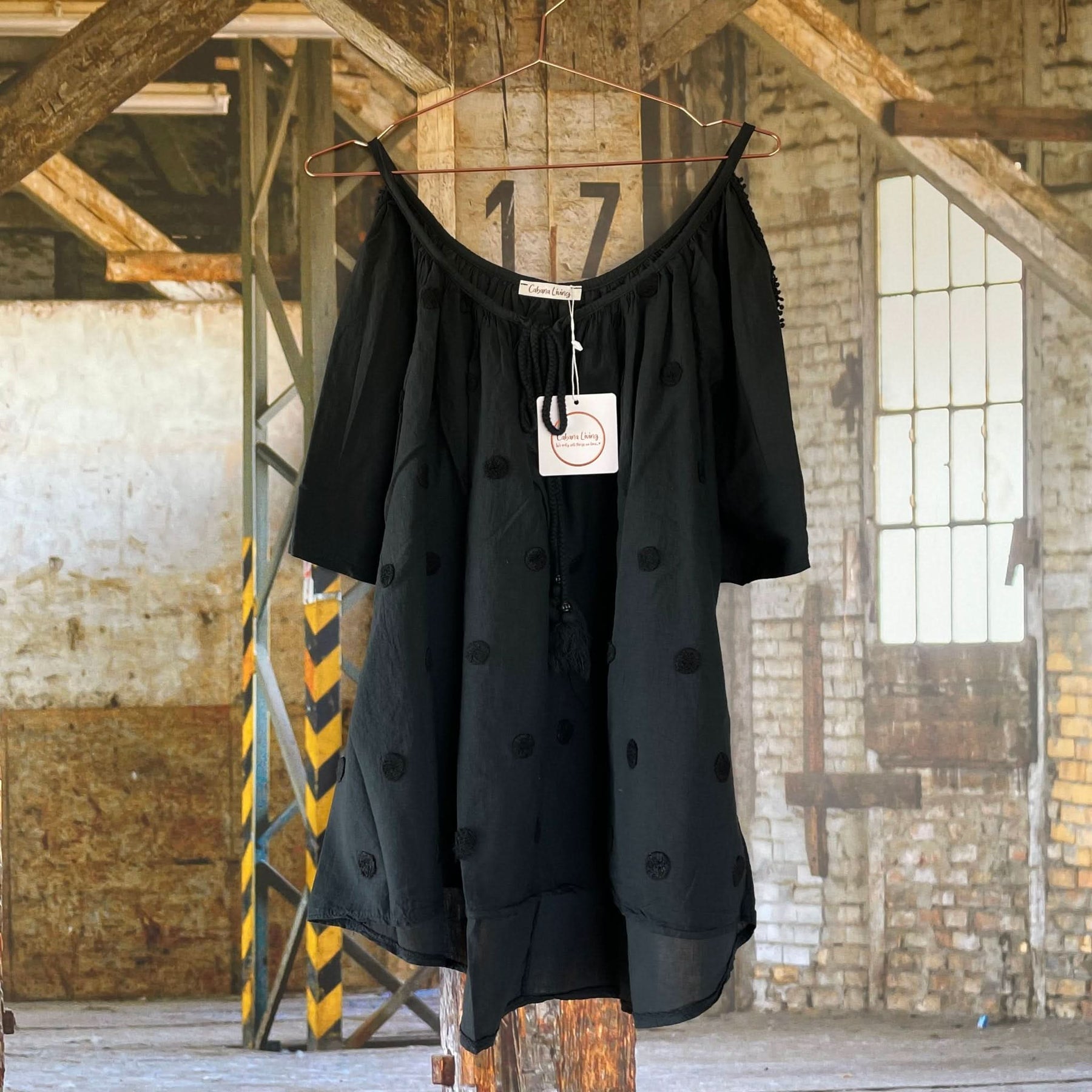 ❥ Mål på størrelse: Onesize - Mål over bryst: 61 cm - Mål i bund: 80 cm - Længde front: 64 cm - Længde Bag: 71 cm - Ærme udvendig: 35 cm - Ærme indvendig: 16 cm