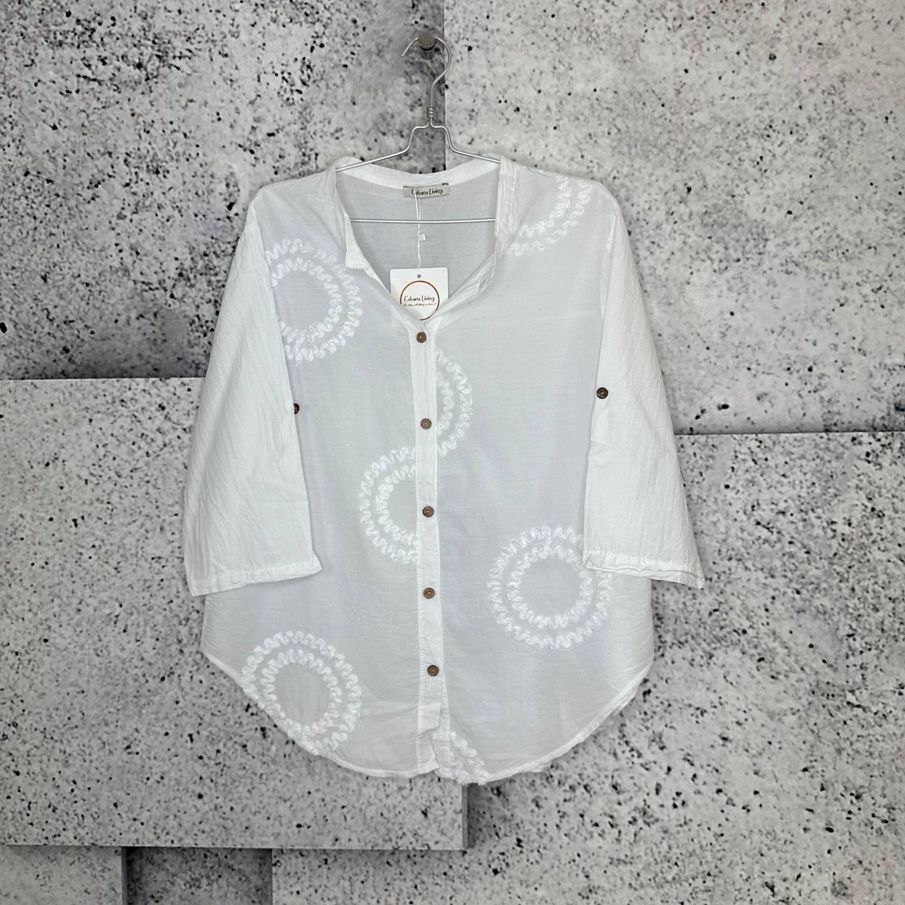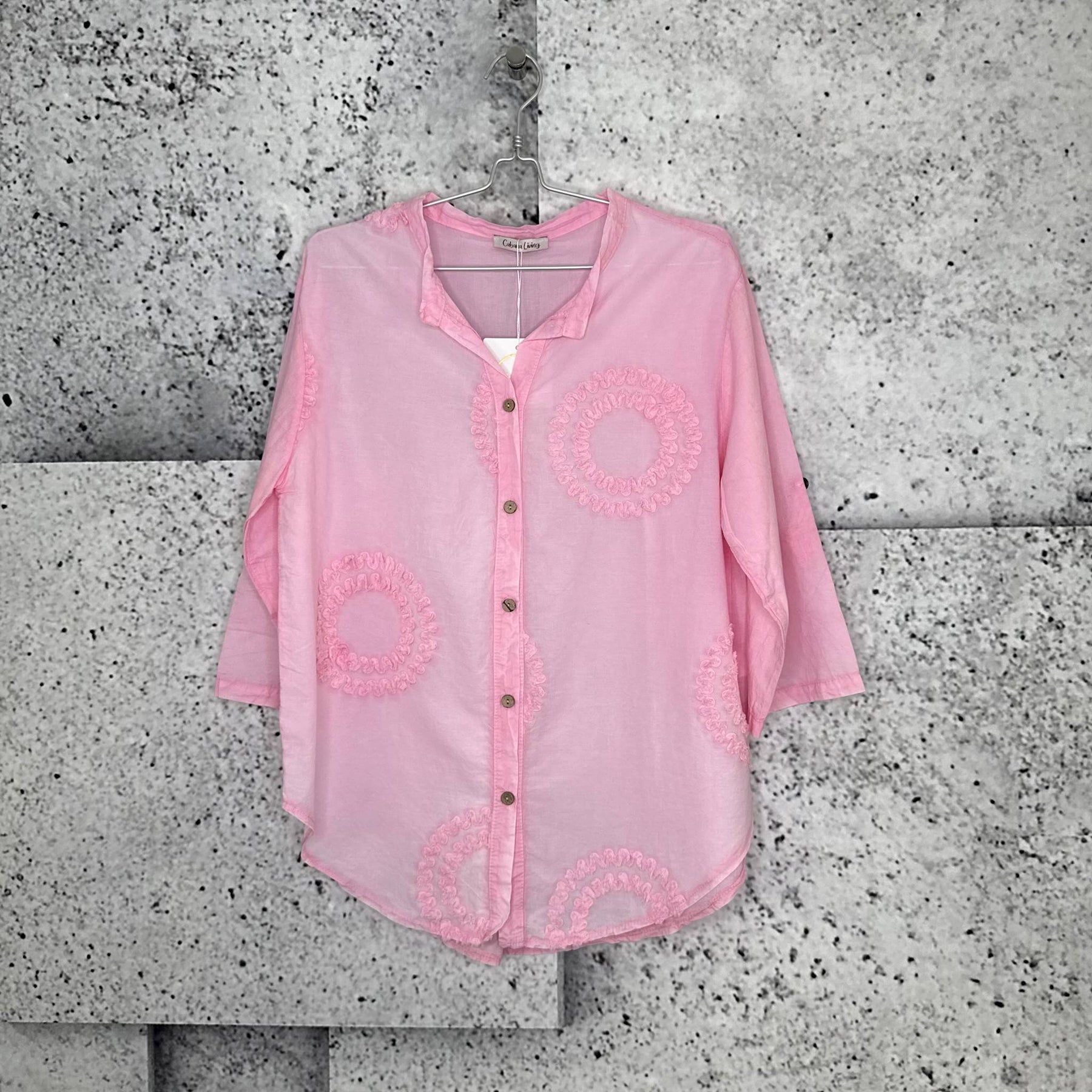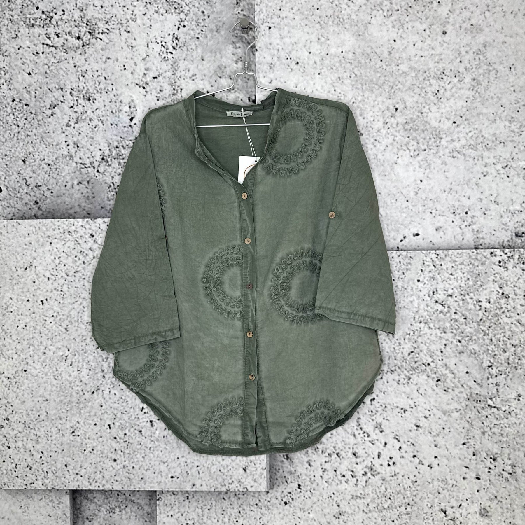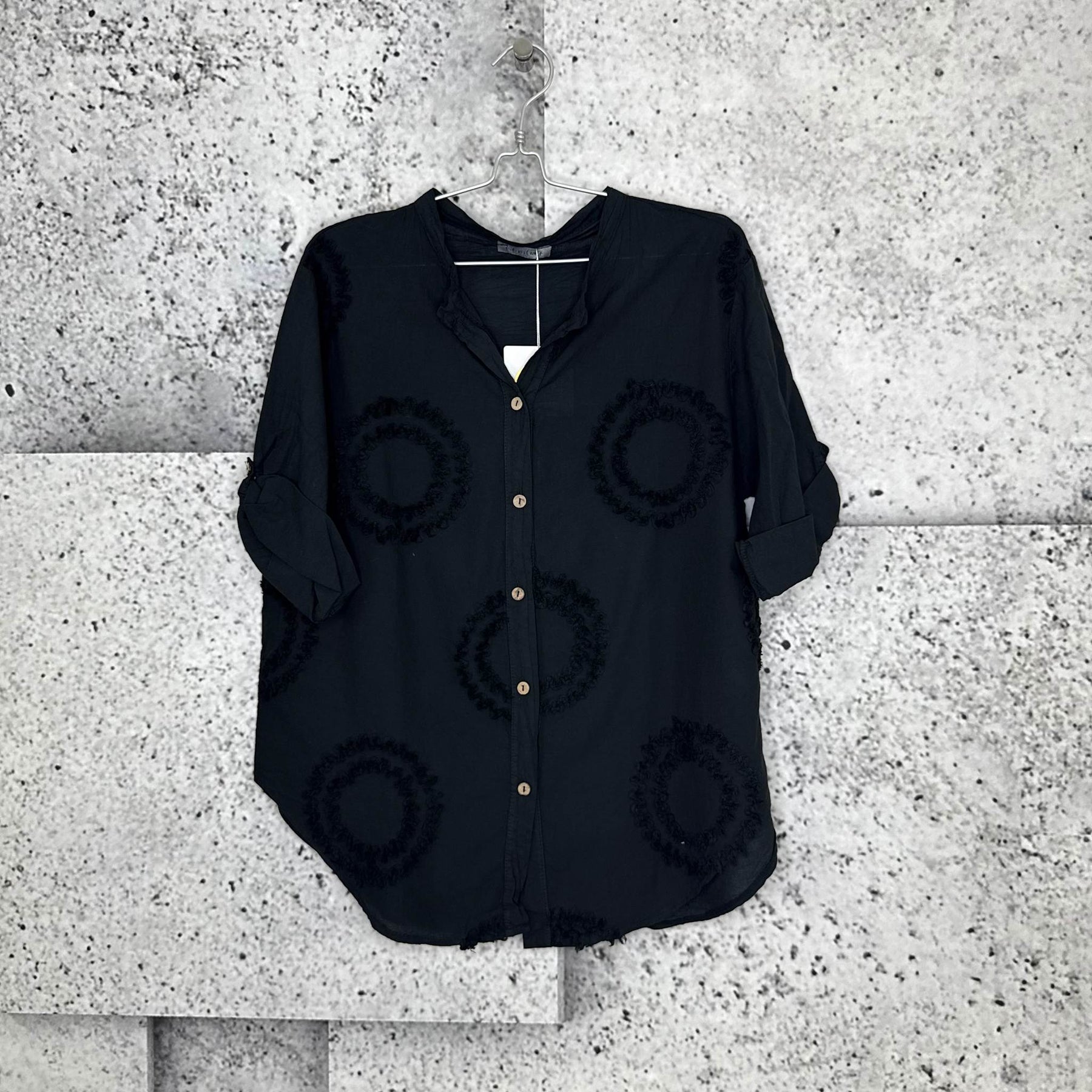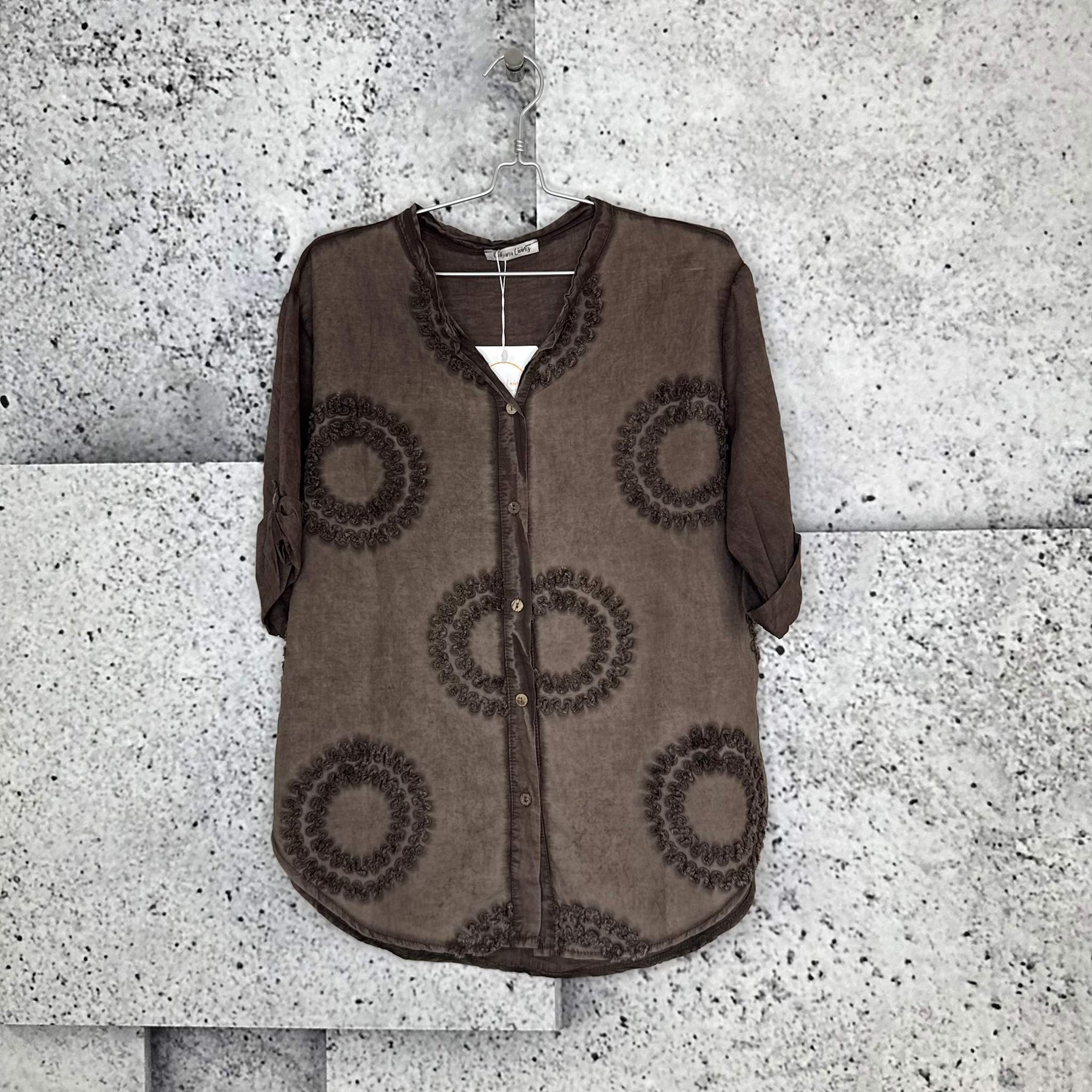 ❥ Mål på størrelse: Onesize - Mål over bryst: 57 cm - Mål i bund: 64 cm - Længde front: 72 cm - Længde Bag: 75 cm - Ærme udvendig: 38 cm - Ærme indvendig: 17 cm