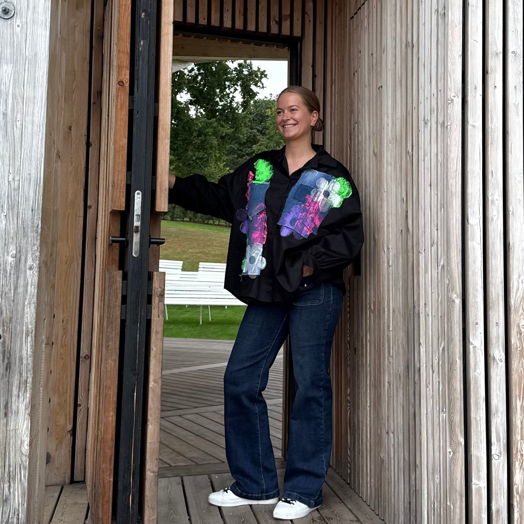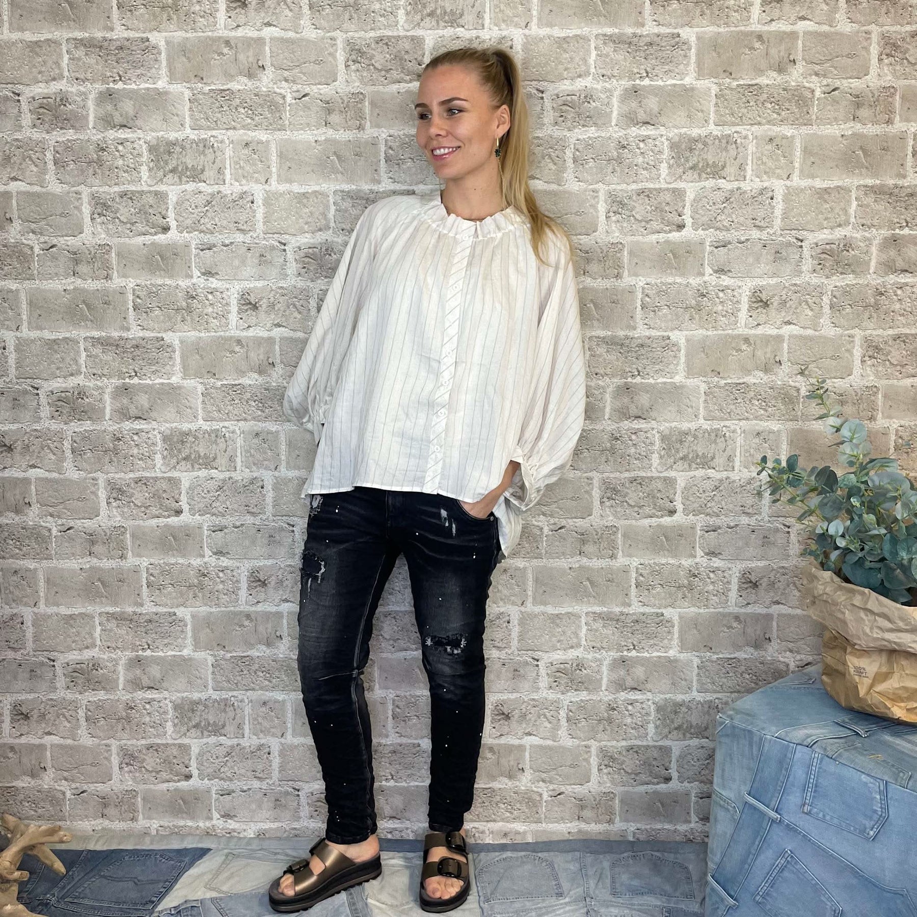 ❥ Mål på størrelse: Onesize - Mål over bryst: 85 cm - Mål i bund: 92 cm - Længde front: 63 cm - Længde Bag: 75 cm - Ærme udvendig: 64 cm - Ærme indvendig: 19 cm