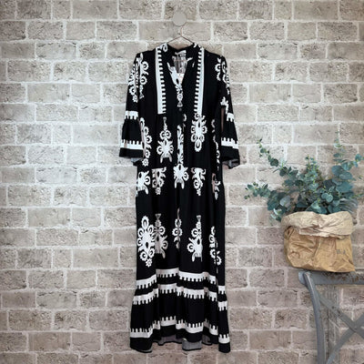 ❥ Mål på størrelse: Onesize - Mål over bryst: 61 cm - Målover bryst udstrakt: 61 cm - Mål i bund: 131 cm - Længde front: 138 cm - Længde Bag: 143 cm - Ærme udvendig: 62 cm - Ærme indvendig: 34 cm