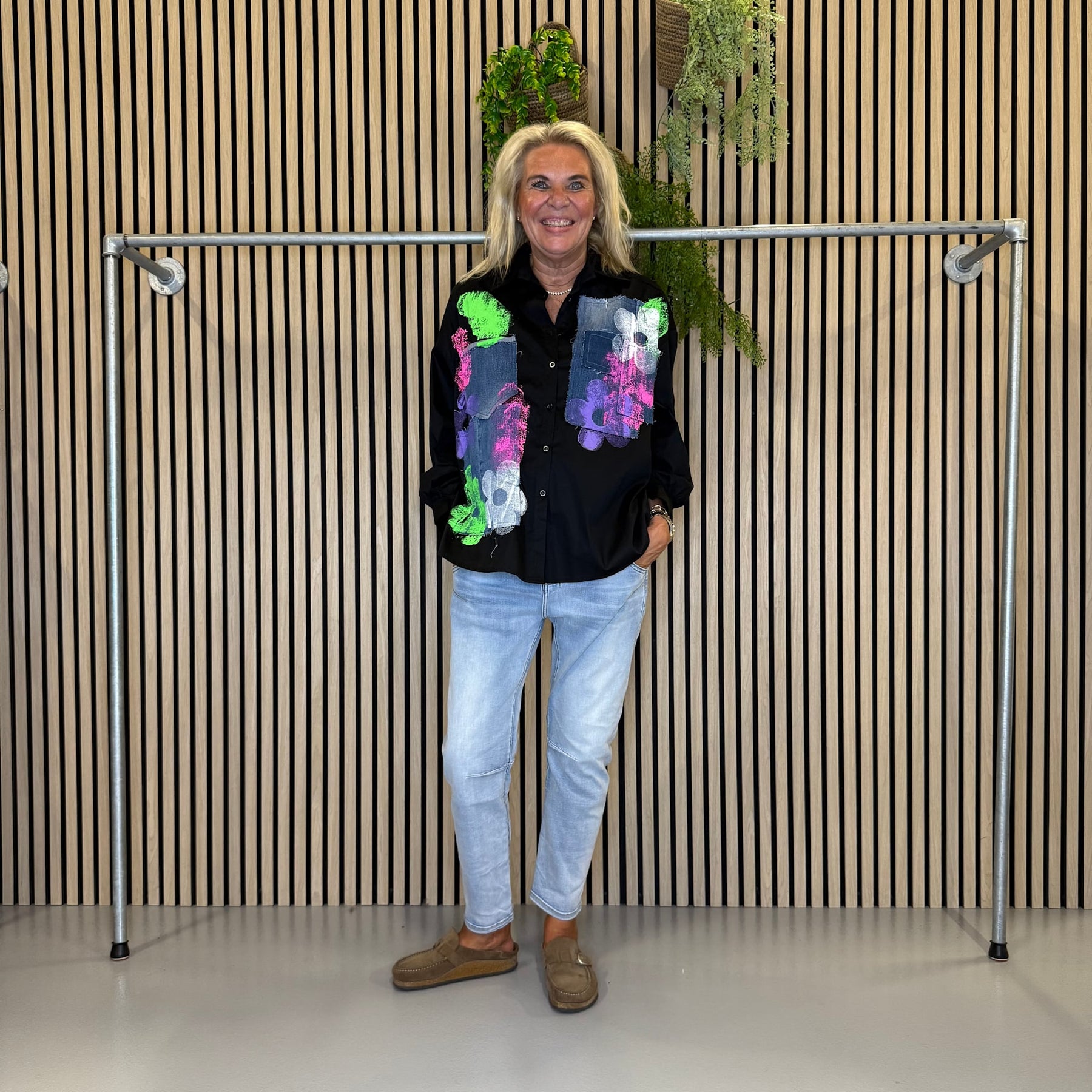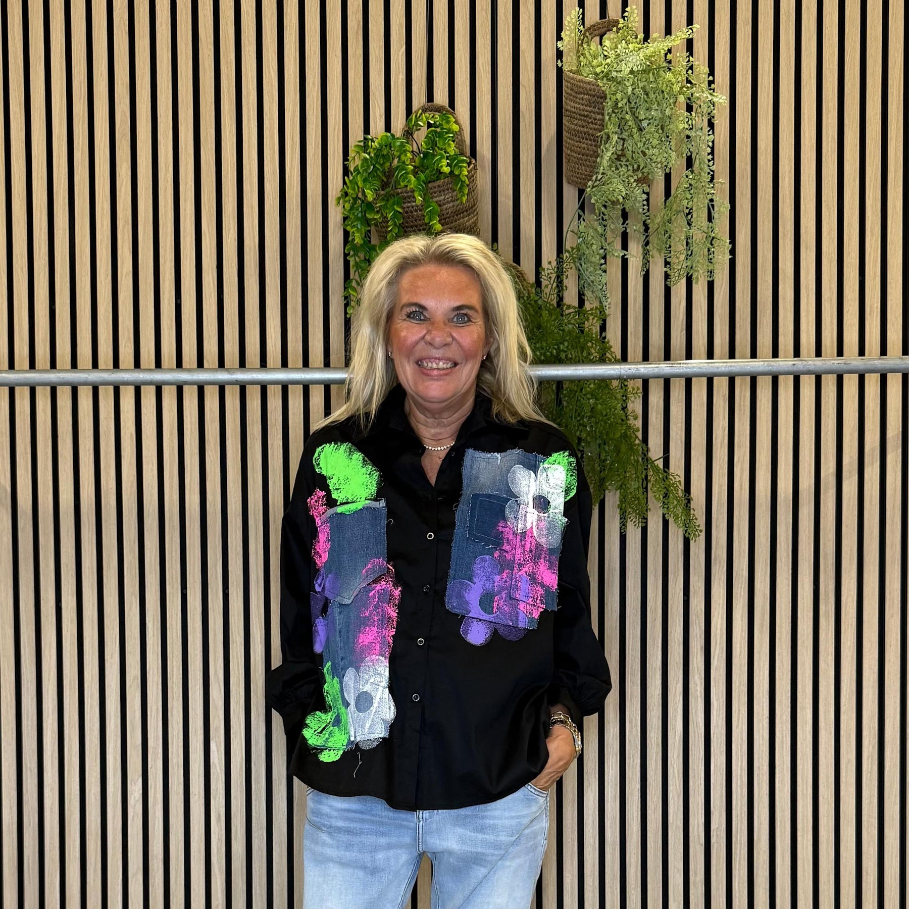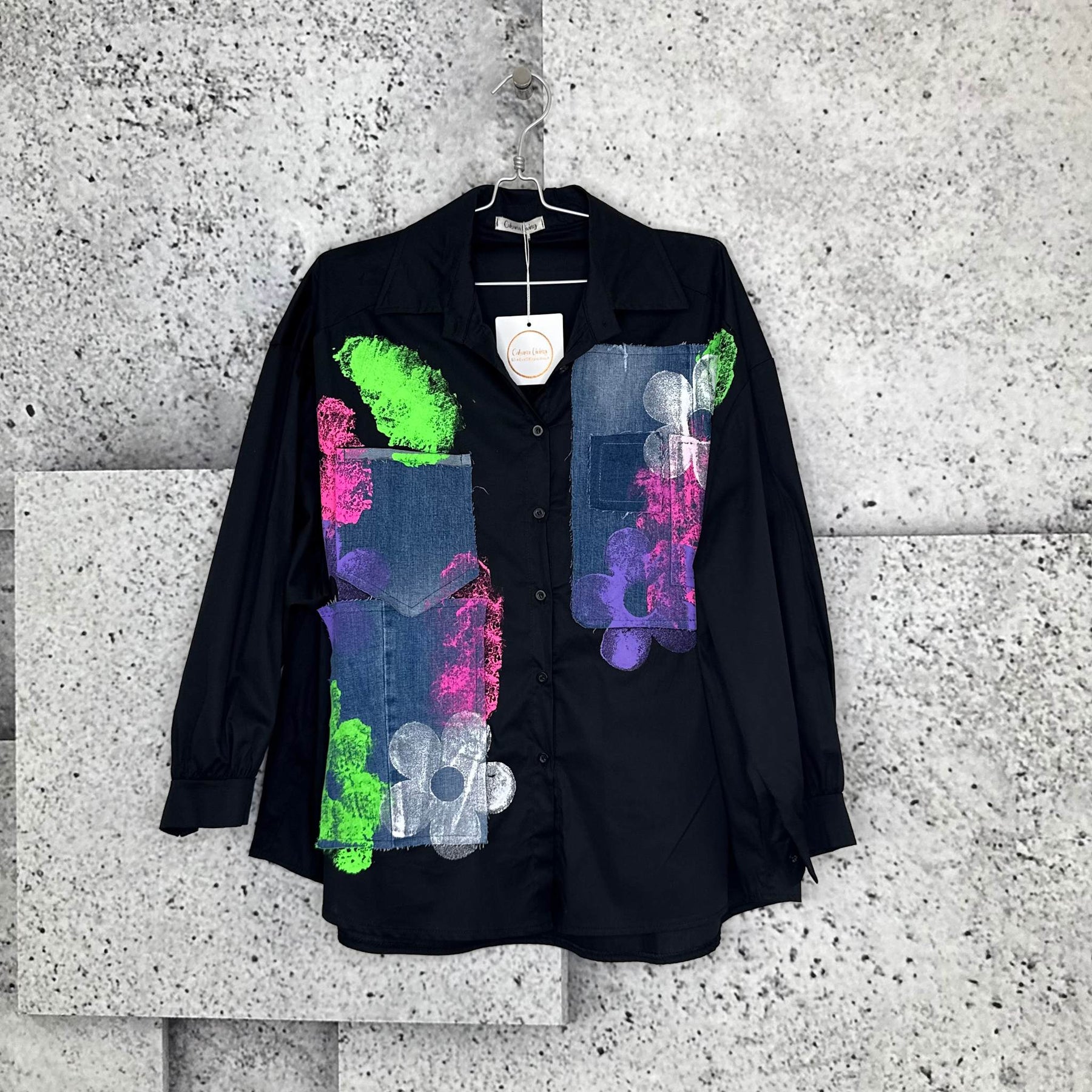 ❥ Mål på størrelse: Onesize - Mål over bryst: 76 cm - Mål i bund: 80 cm - Længde front: 71 cm - Længde Bag: 76 cm - Ærme udvendig: 71 cm - Ærme indvendig: 30 cm