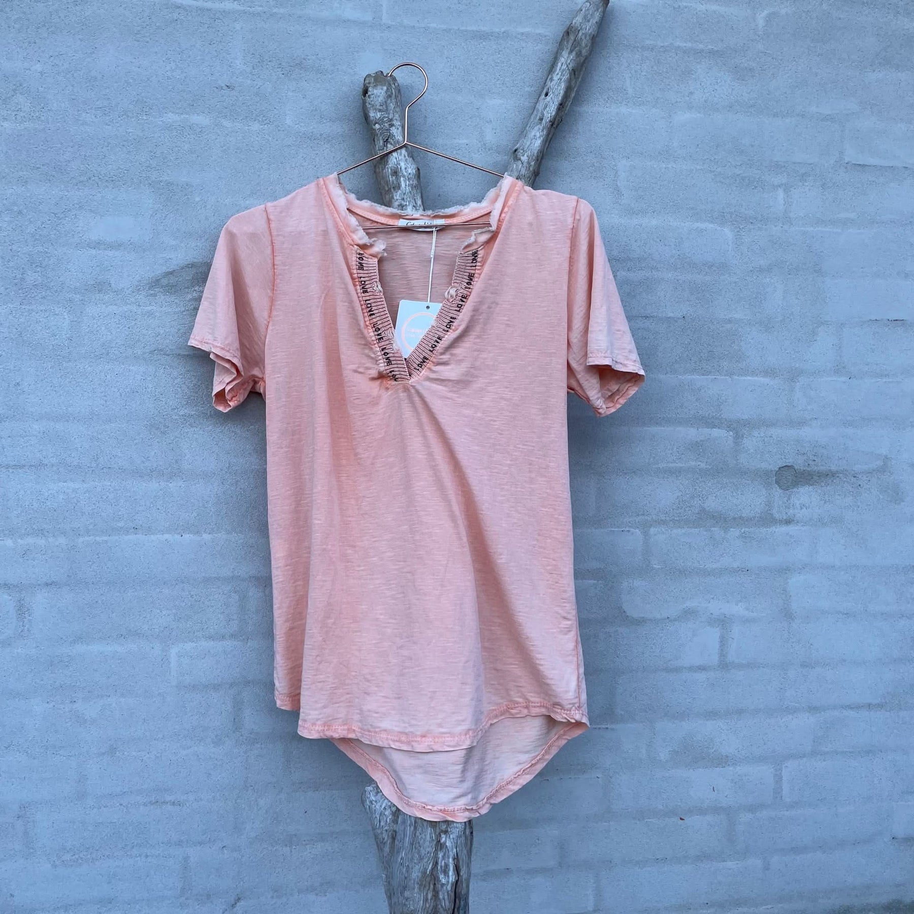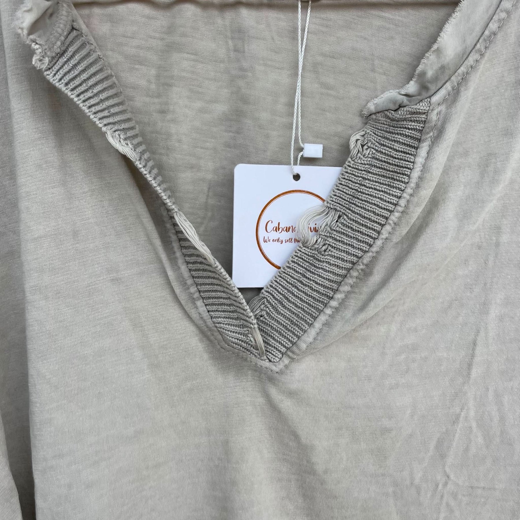 ❥ Mål på størrelse: S/M - Mål over bryst: 50 cm - Målover bryst udstrakt: 58 cm - Mål i bund: 54 cm - Længde front: 66 cm - Længde Bag: 70 cm - Ærme udvendig: 25 cm - Ærme indvendig: 6 cm