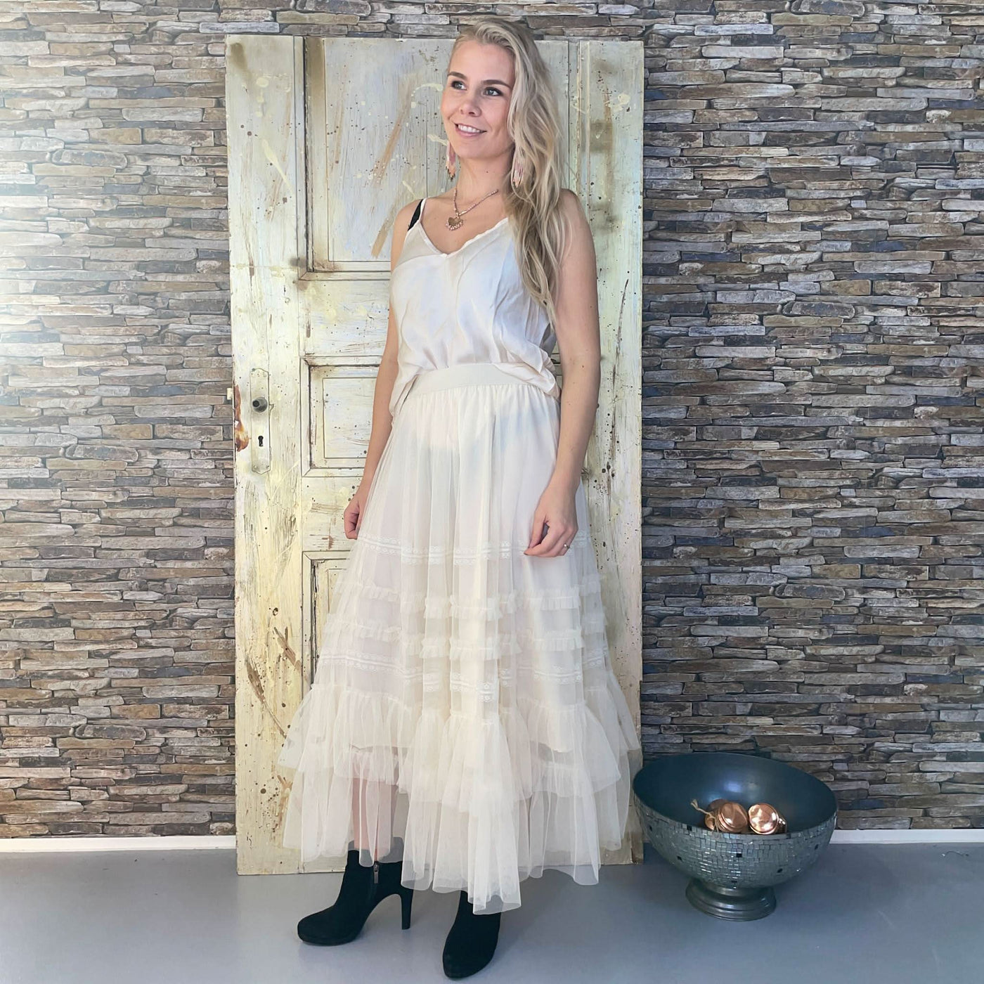 ❥ Mål på størrelse: S/M - Mål over bryst: 57 cm - Mål i bund: 66 cm - Længde front: 71 cm - Længde Bag: 71 cm