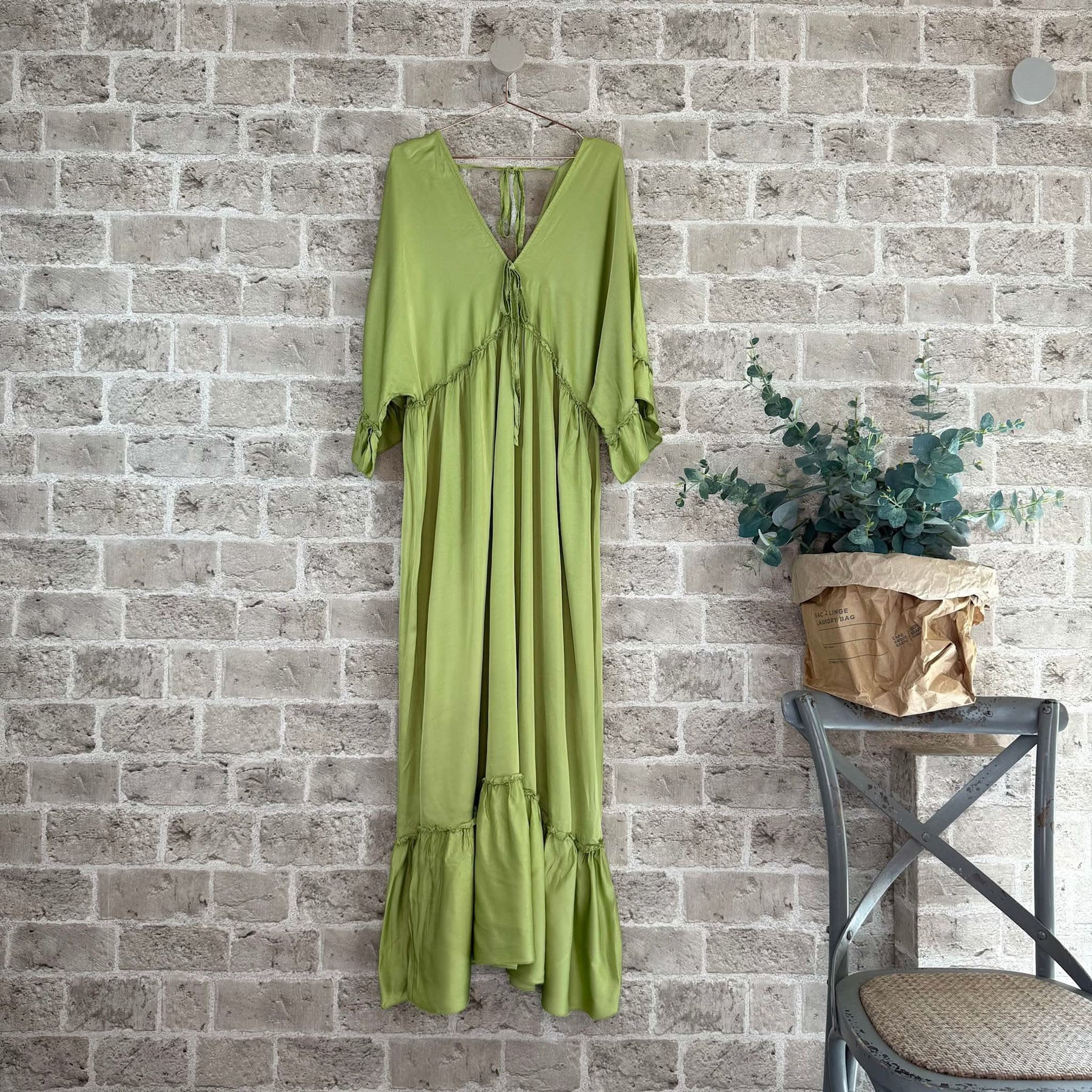 ❥ Mål på størrelse: Onesize - Mål over bryst: 55 cm - Mål over bryst udstrakt: 63 cm - Mål i bund: 150 cm - Længde front: 155 cm - Længde Bag: 155 cm - Ærme udvendig: 52 cm - Ærme indvendig: 25 cm